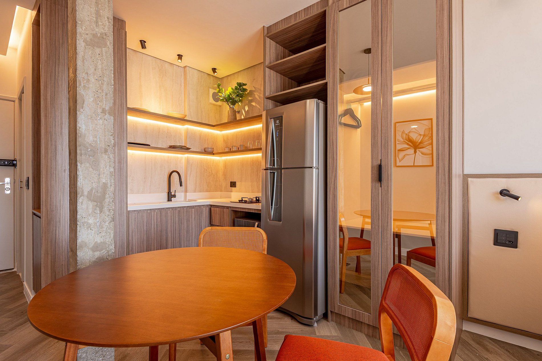 Sophisticated and Modern Décor: The decor blends classic and contemporary elements, creating an elegant and welcoming space. The design respects the original architecture of the Copan building but with a modern touch that provides comfort and functionality.