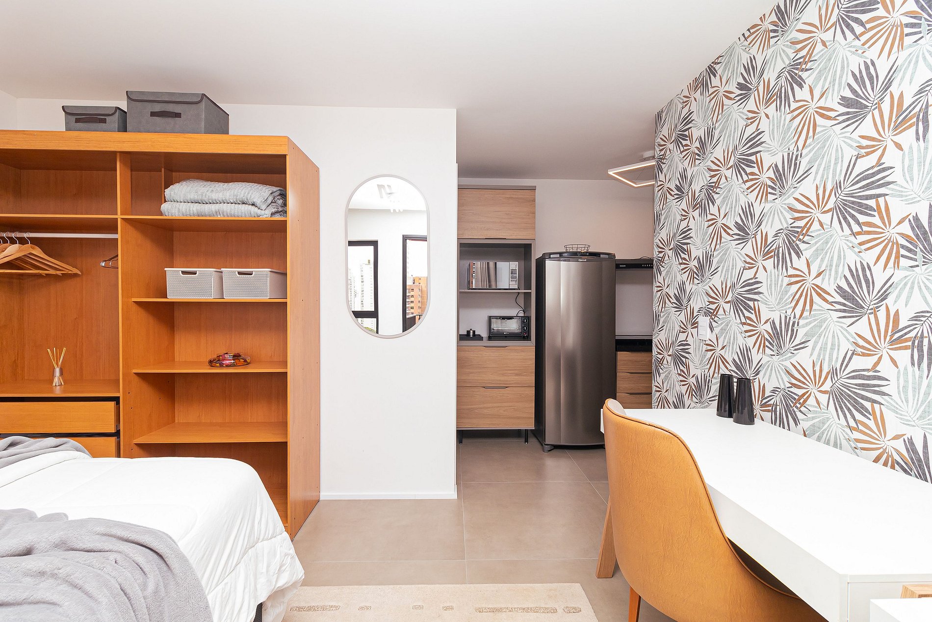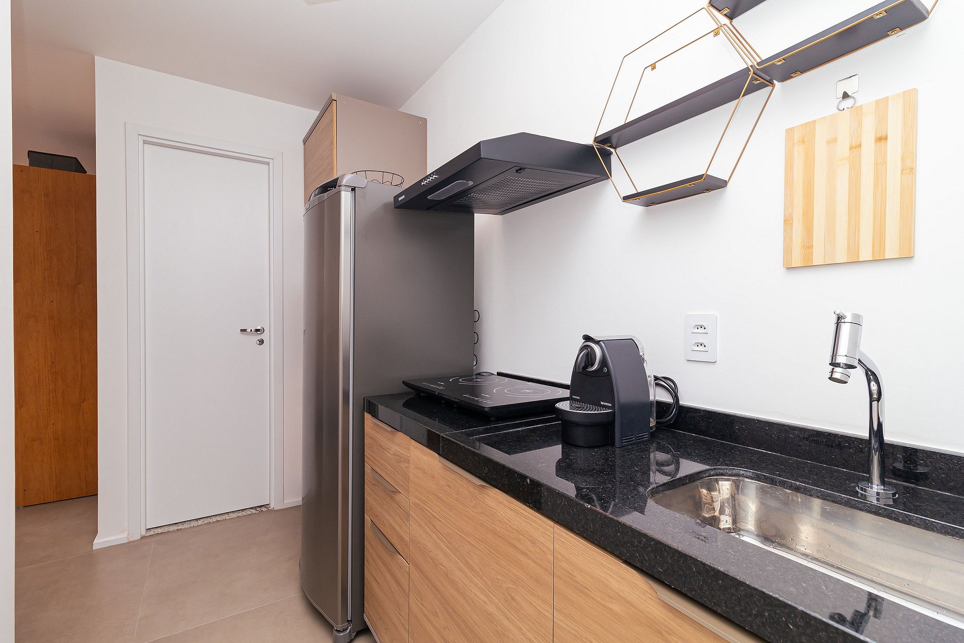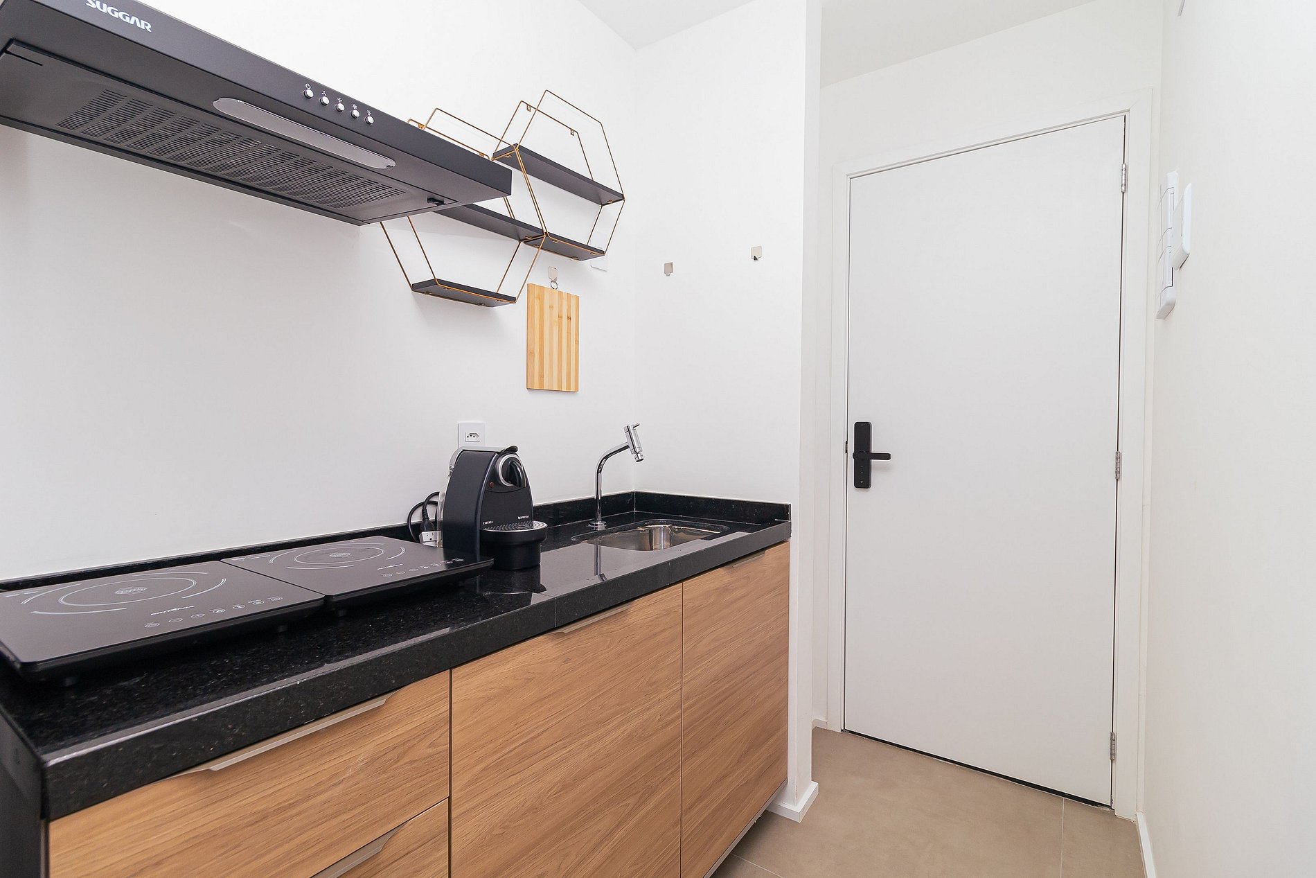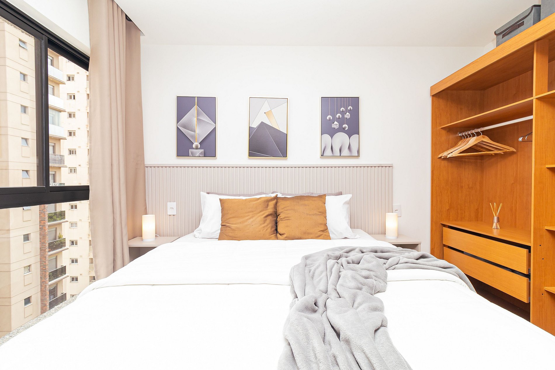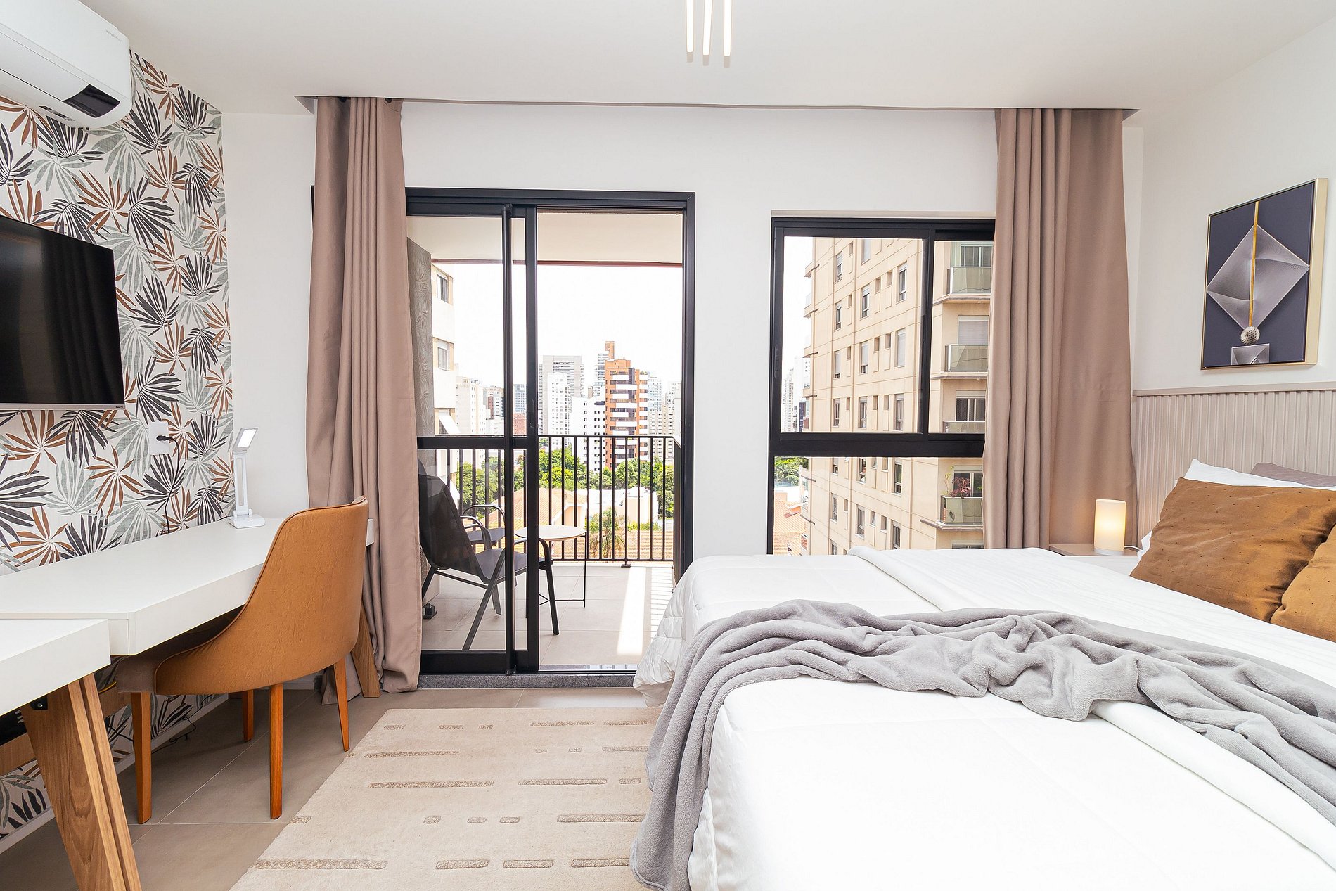 Studio with a super privileged location within the city and the center of Moema, it is close to the airport, park and numerous high-end shopping malls, in addition to having a complete and cozy space, with TV, large balcony, air conditioning, curtain with blackout and kitchen equipped with coffee maker, air fryer and induction stove. Everything you need for a wonderful stay.