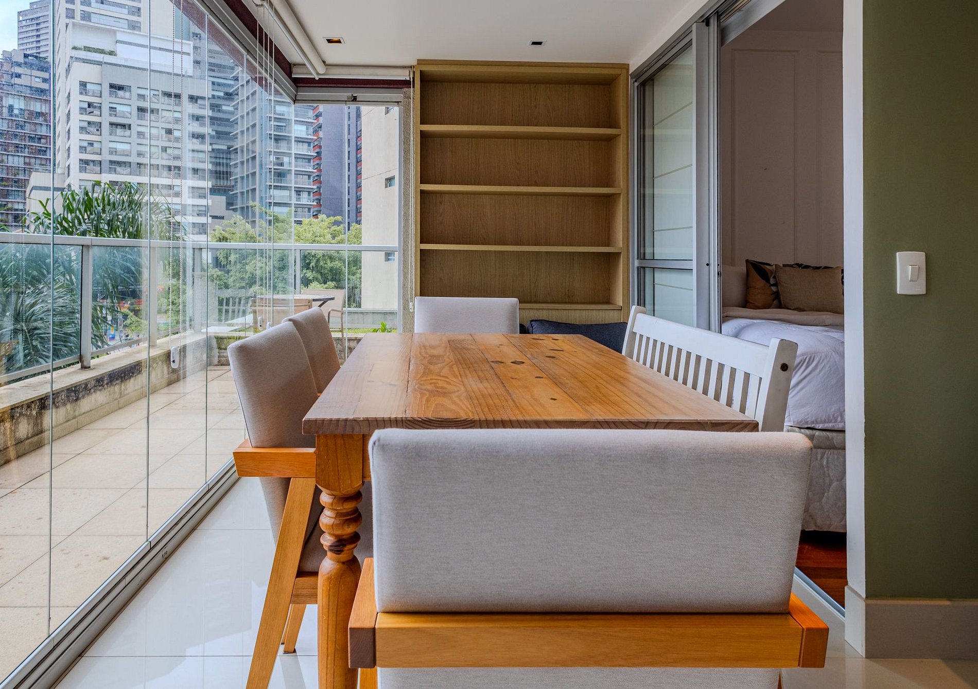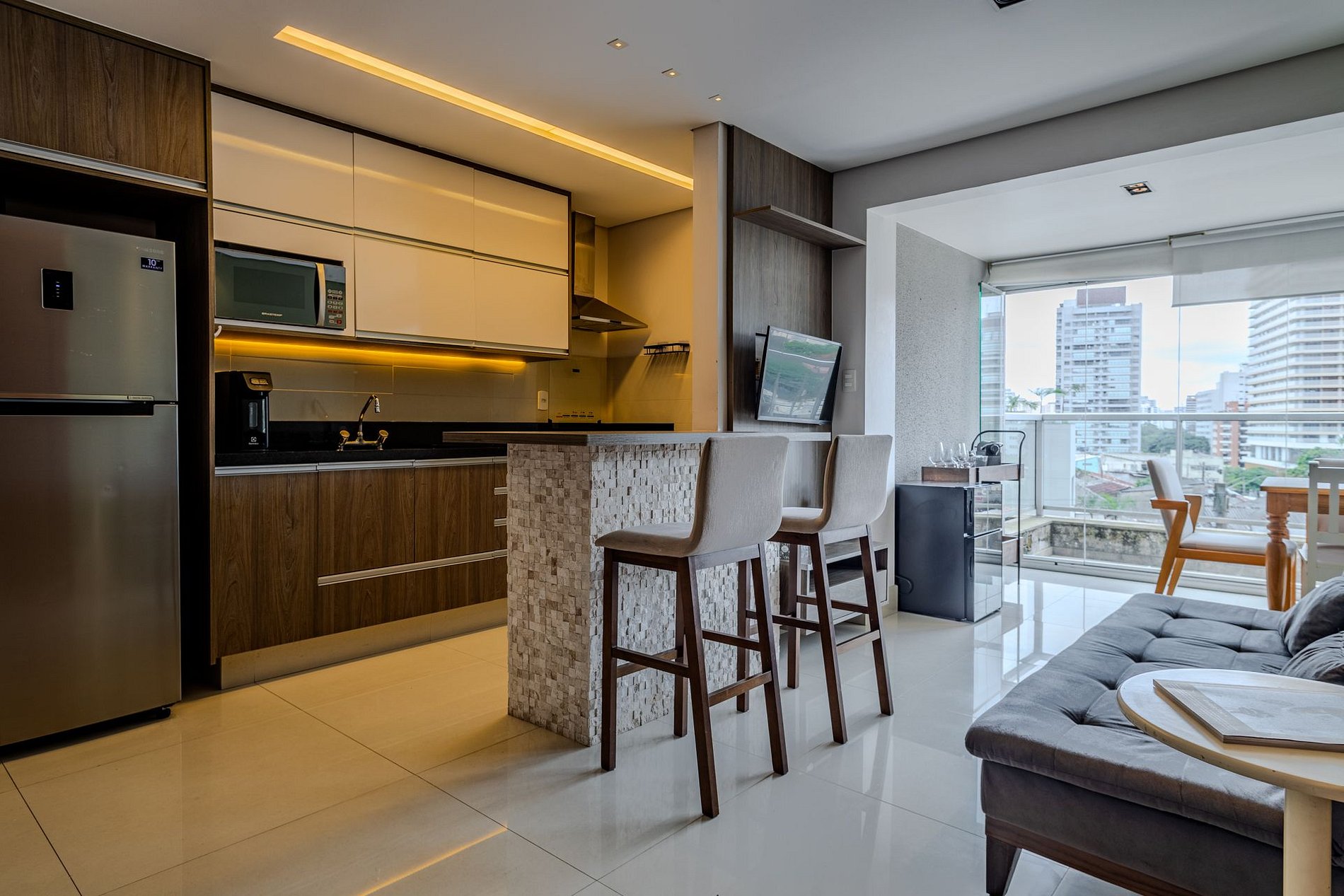 Cozy apartment in Vila Madalena, perfect for enjoying São Paulo with comfort and style. It features 2 bedrooms with double beds (1 en-suite), a comfortable living room, an open kitchen with counter seating, and a lovely balcony with a dining table. Ideal for relaxing, working, or exploring one of the city’s best neighborhoods.