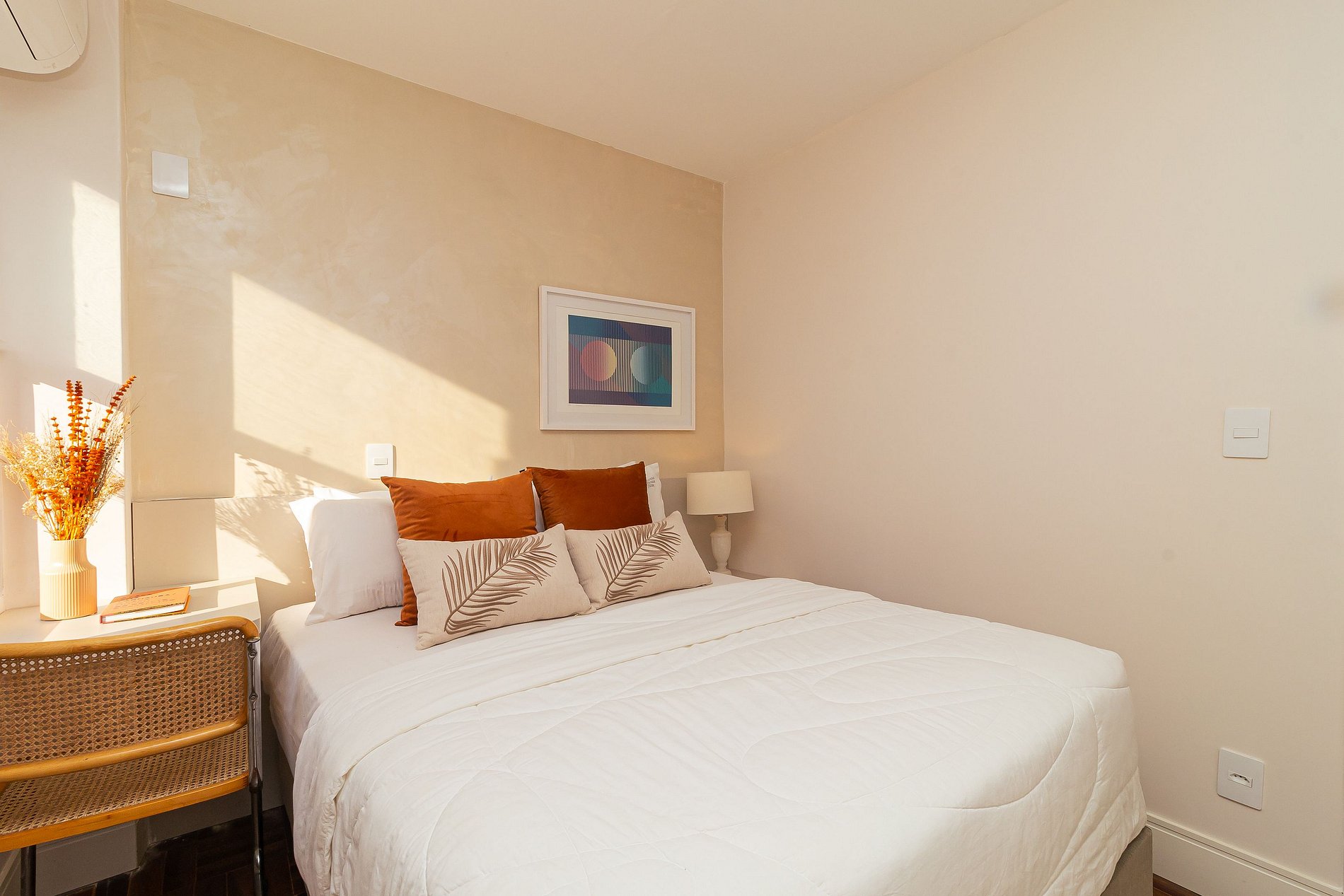 With a neutral color palette and charming details, every corner of this apartment has been carefully planned to provide an unforgettable stay. It has two spacious bedrooms, both equipped with air conditioning with hot and cold functions to guarantee your well-being in all seasons of the year.
