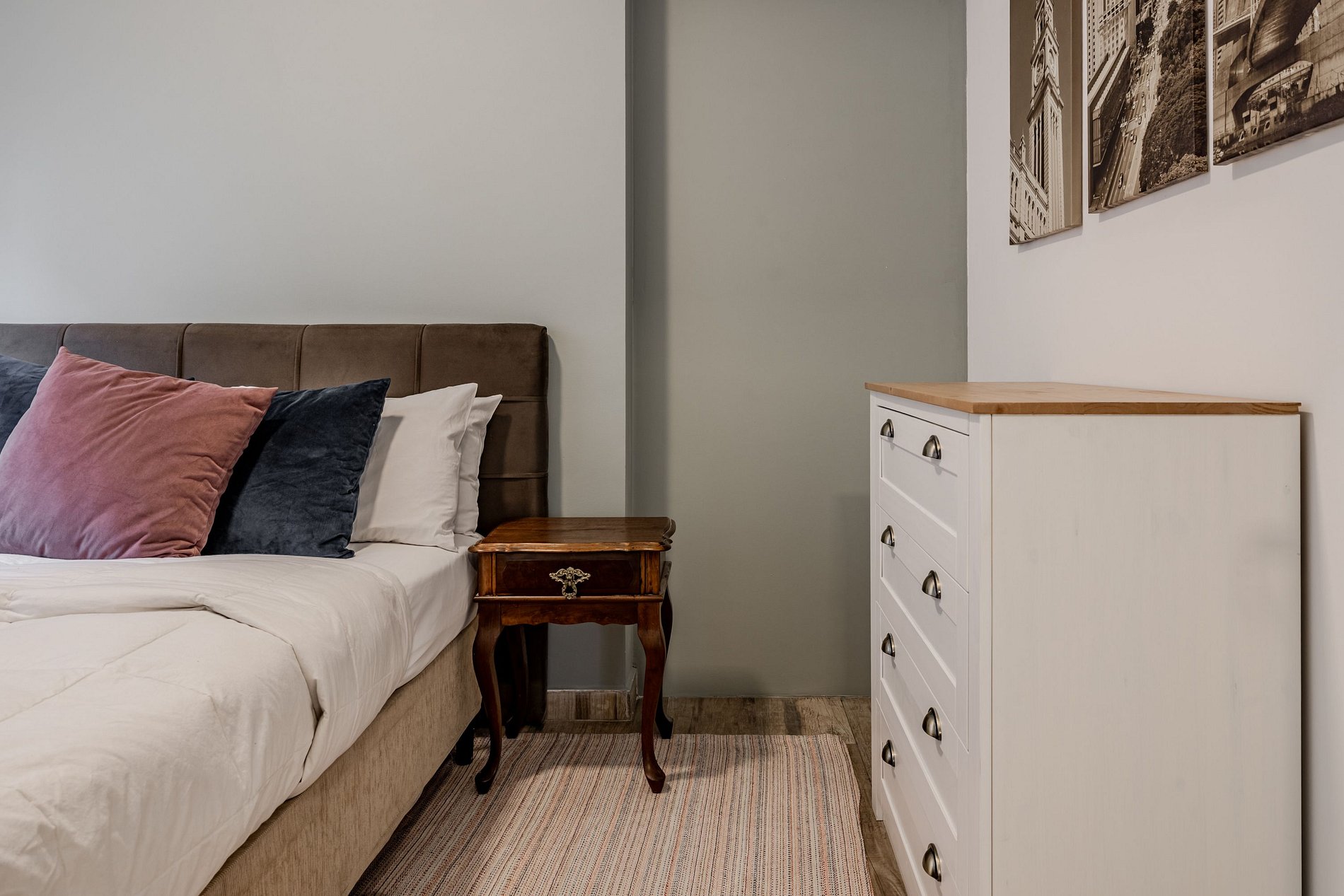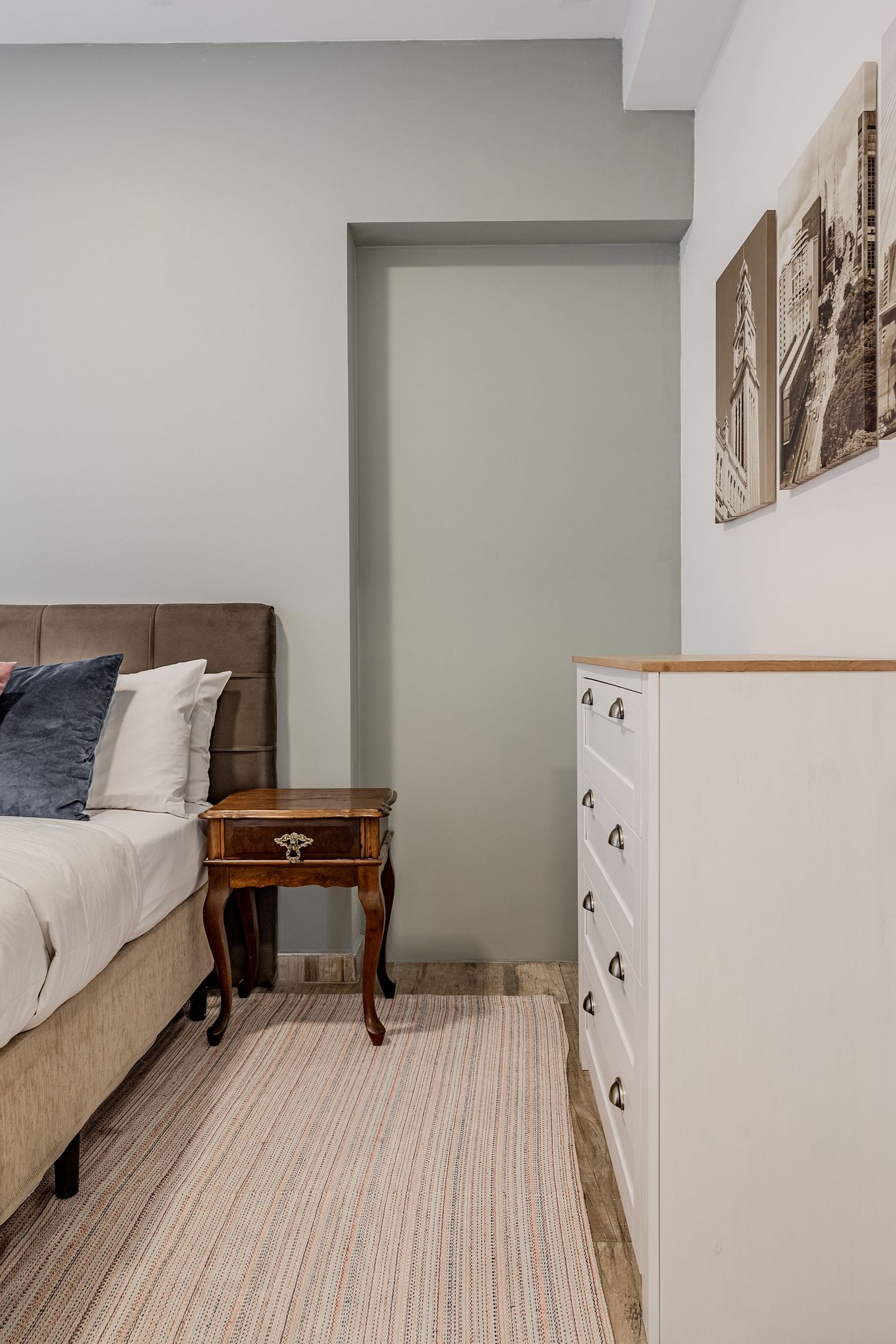 • Second bedroom: includes a double bed and dresser for clothing storage.