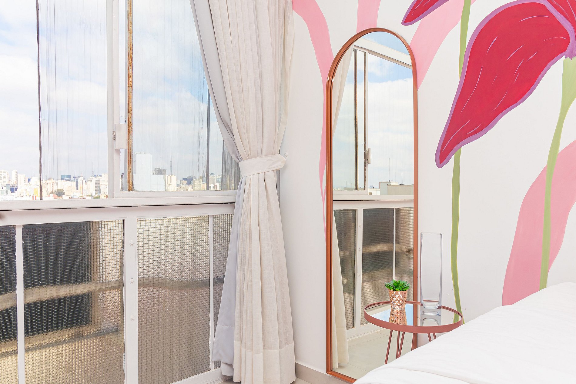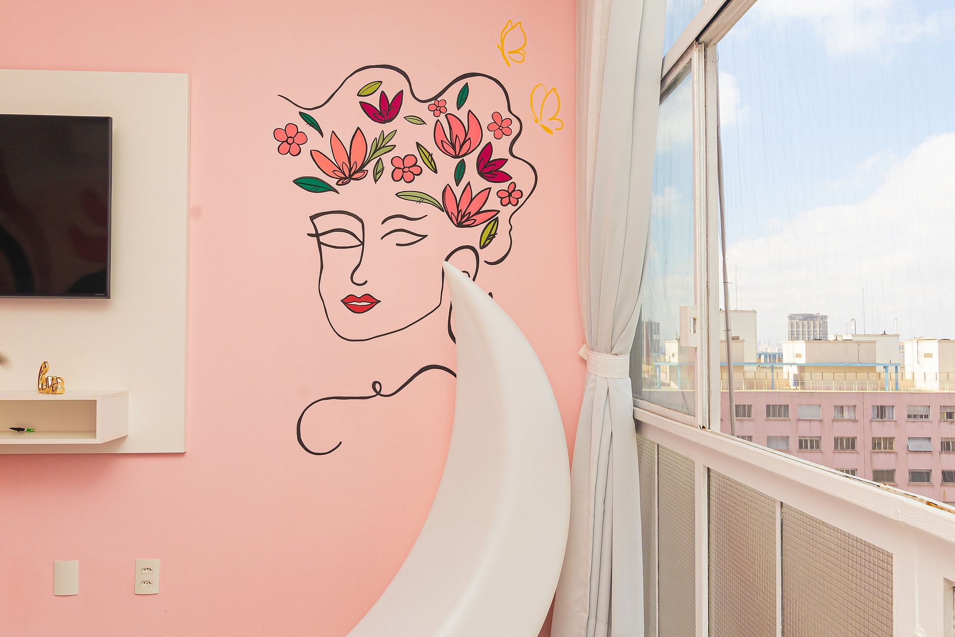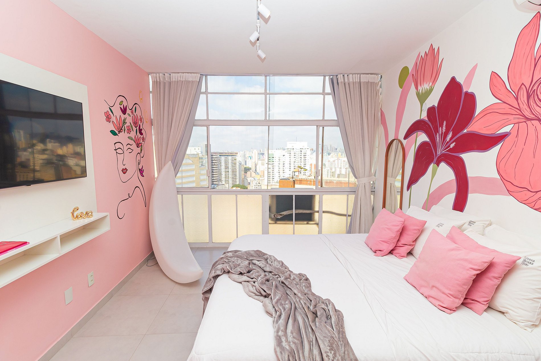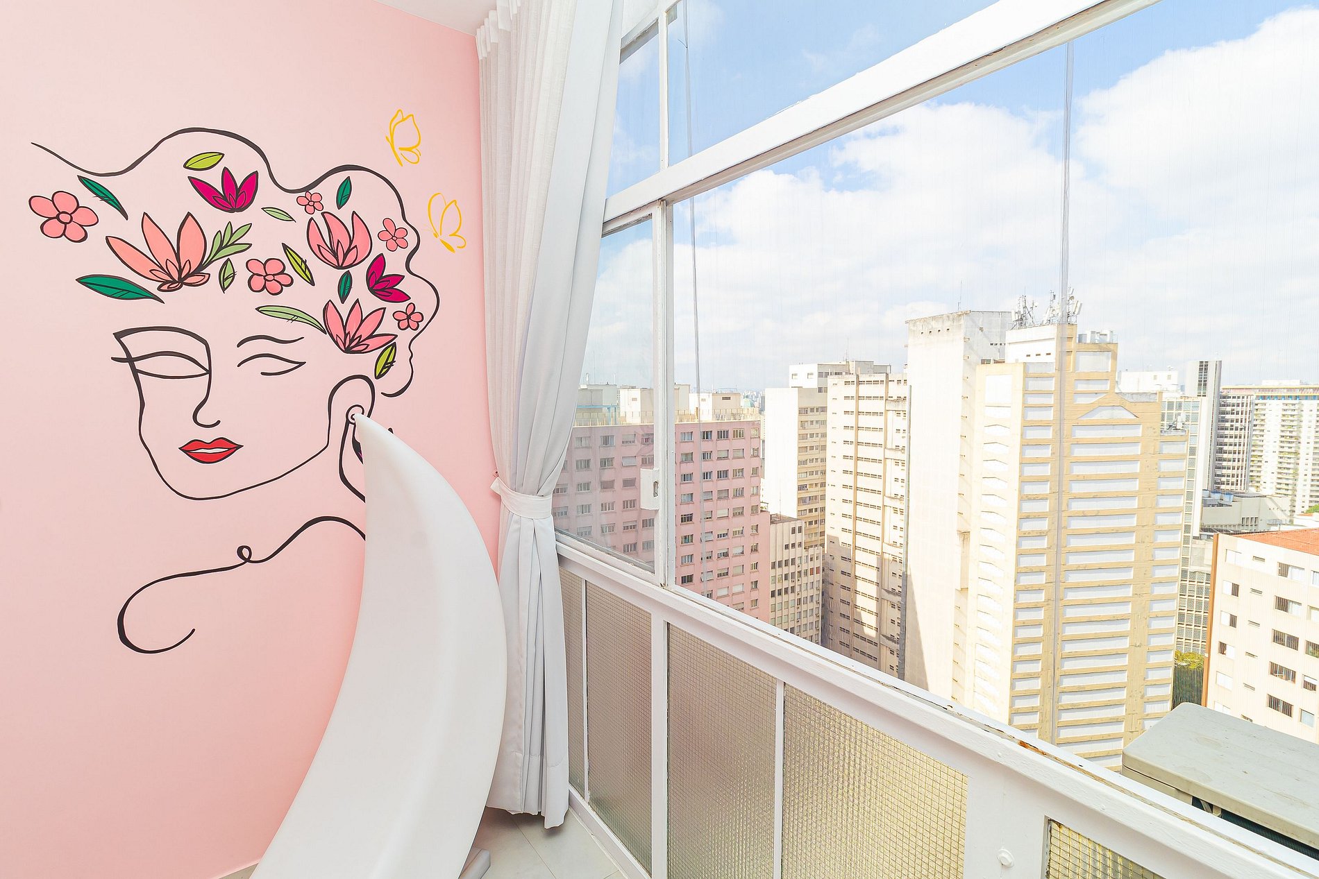 Welcome to our enchanting Flowers studio, where every corner is a dreamy Instagram scene! Situated in the iconic Copan Building, in the beating heart of São Paulo, this all-pink studio is the perfect retreat for lovers of modern aesthetics.