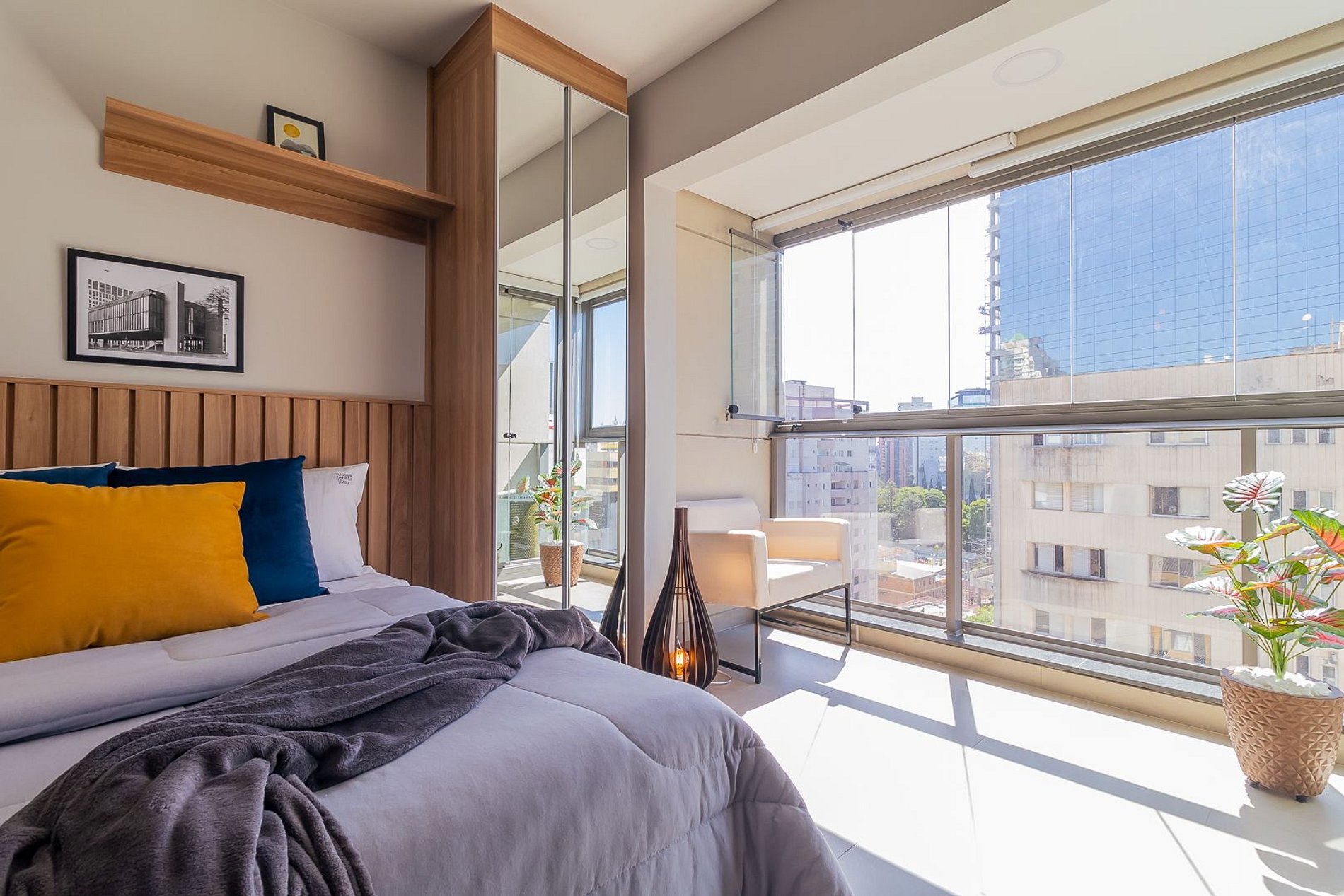 Complete studio in Bela Cintra in the Consolação neighborhood in the heart of São Paulo, close to Paulista and Sírio-Libanês, cozy and modern decor with everything for your stay to be peaceful, such as air conditioning and a queen bed.