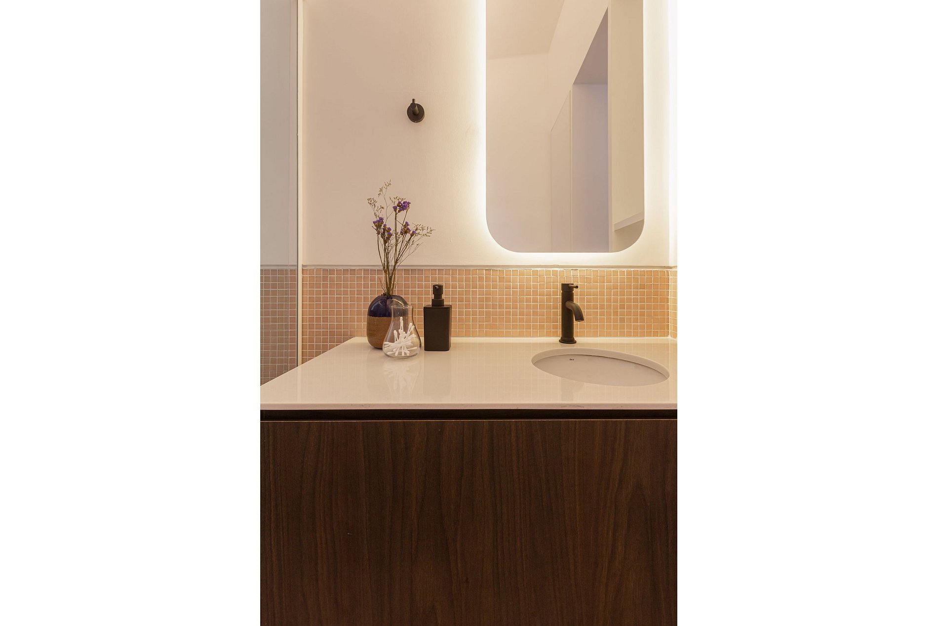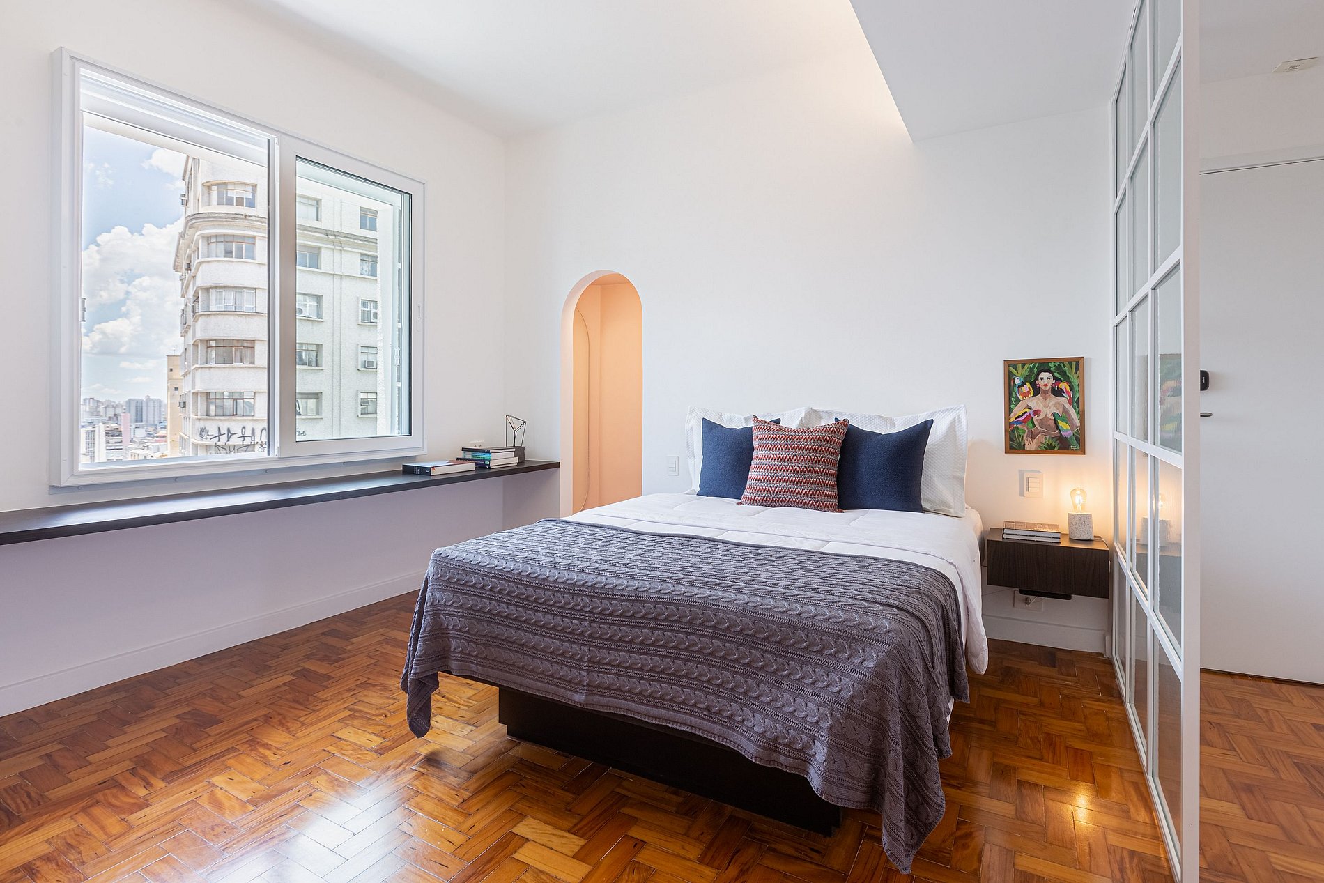 Cores neutras, curvas e luz. Todo o charme e personalidade do icônico Edifício Marian, no centro histórico de São Paulo, foi trazido para cada elemento deste apartamento localizado em seu 12° andar.