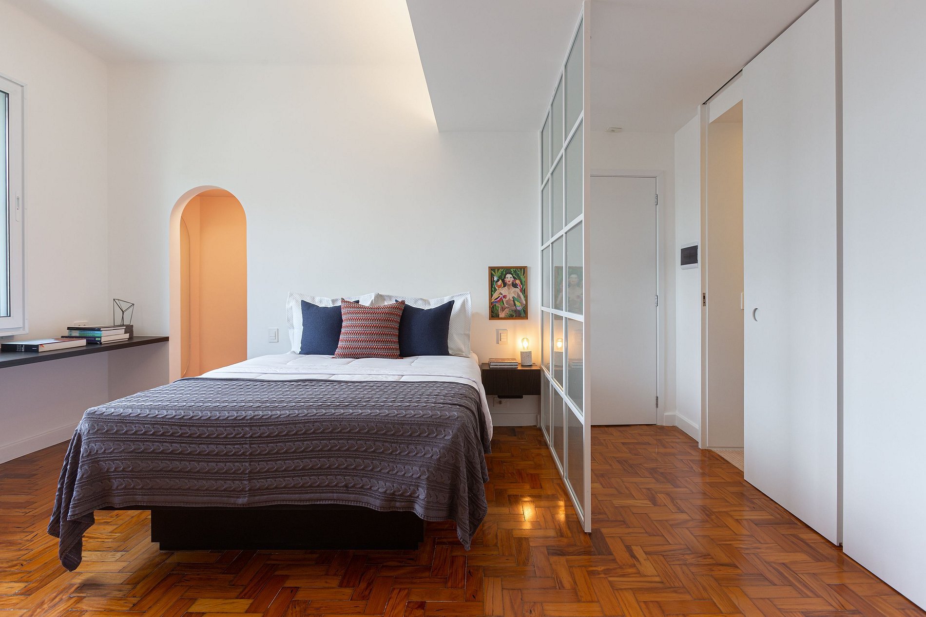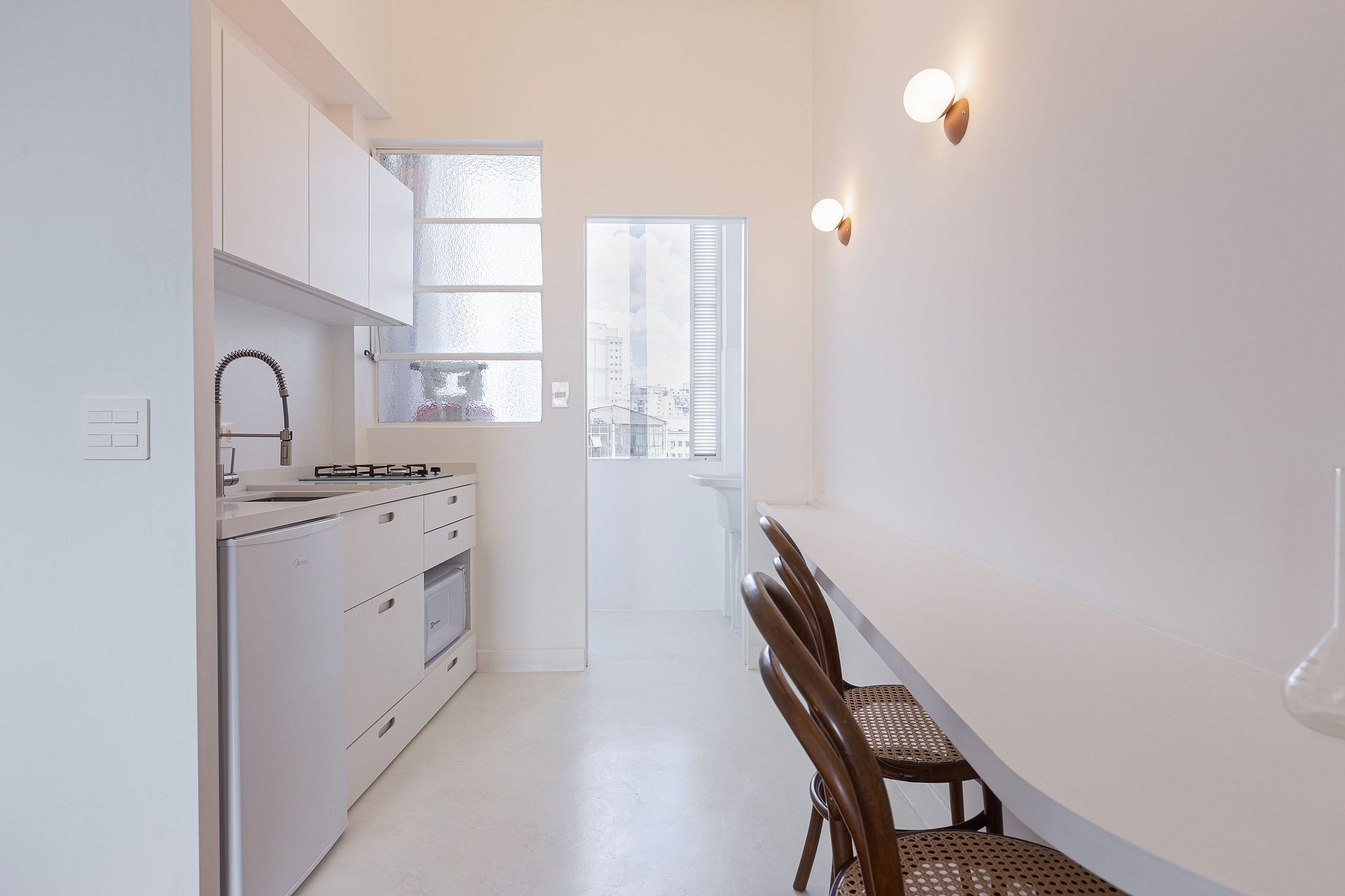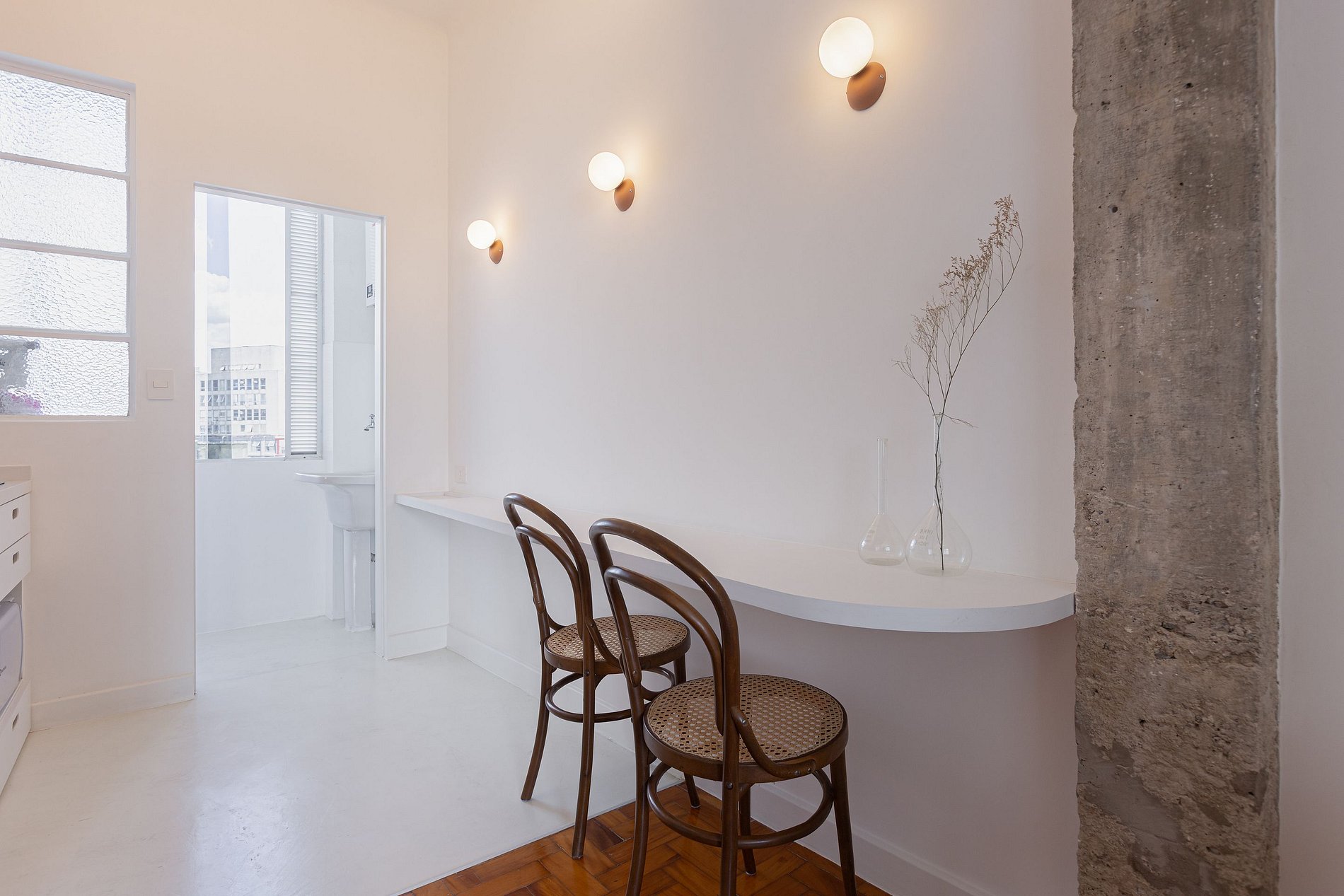 Cores neutras, curvas e luz. Todo o charme e personalidade do icônico Edifício Marian, no centro histórico de São Paulo, foi trazido para cada elemento deste apartamento localizado em seu 12° andar.