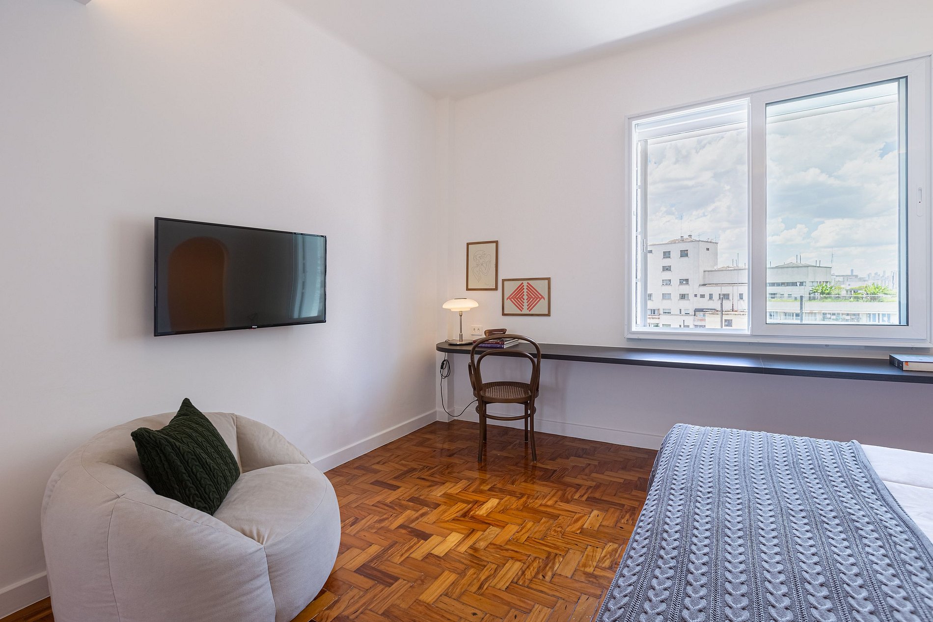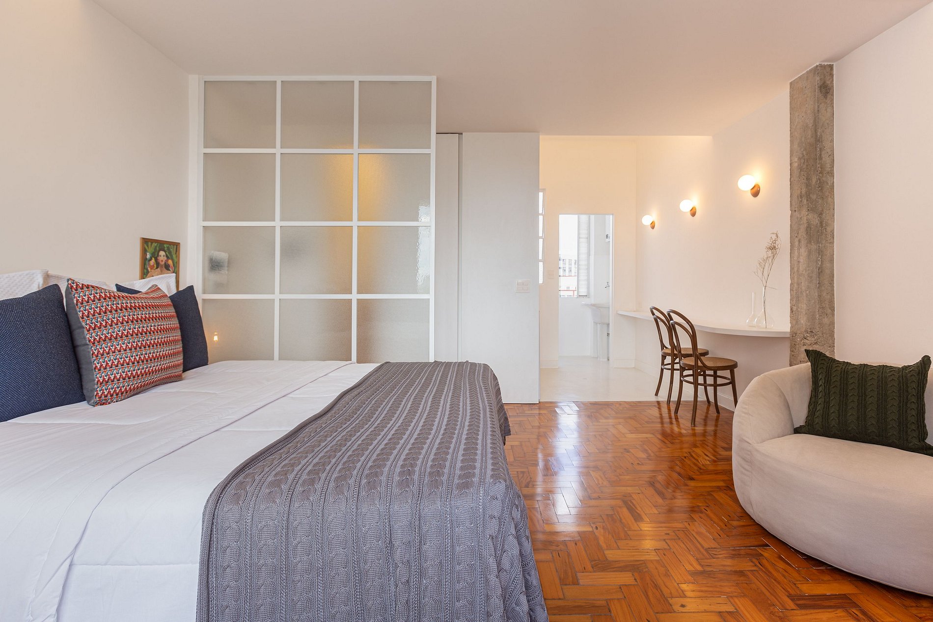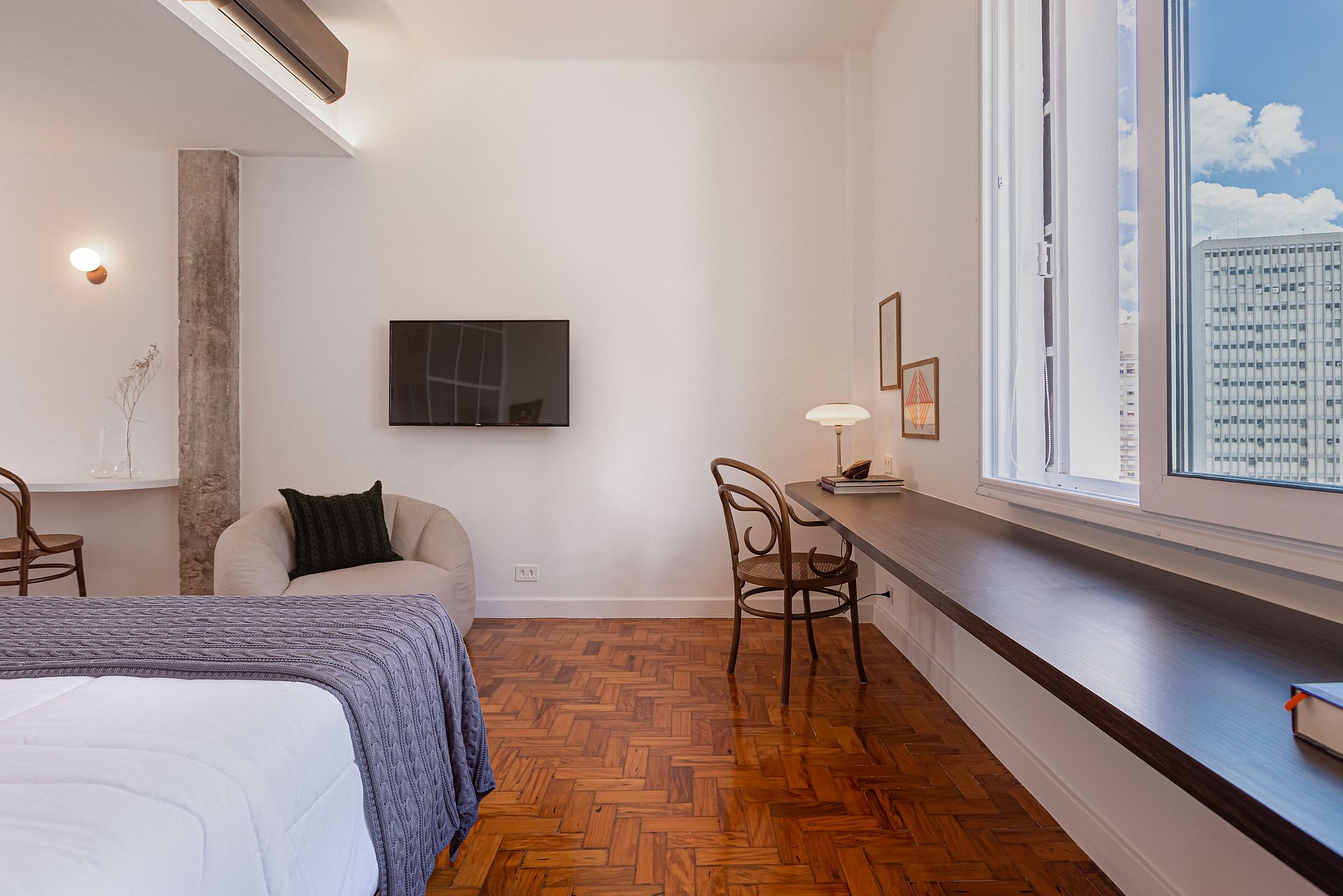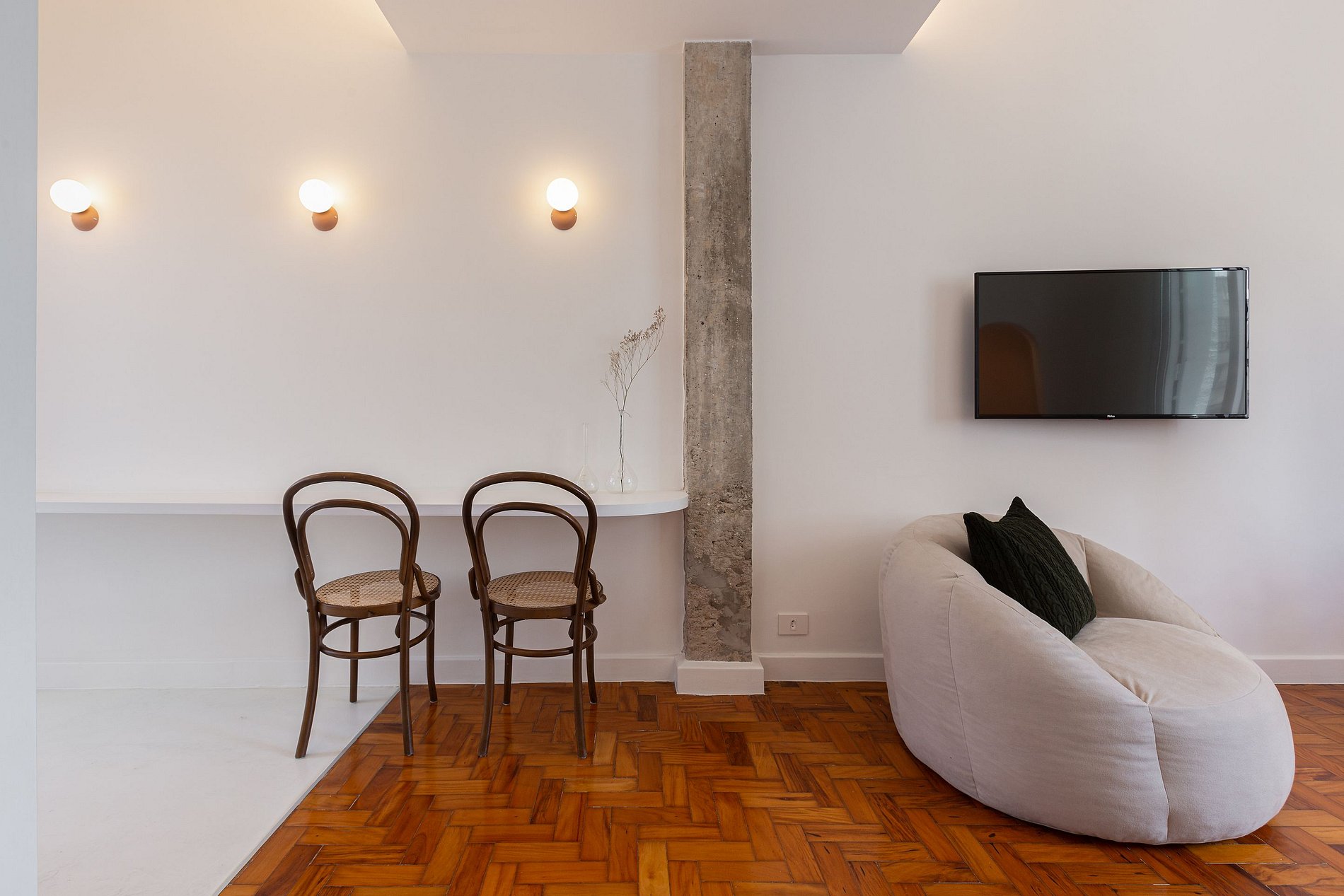 Boa mobília, cadeiras Thonet, ar condicionado, cama de qualidade, espaço para homeoffice, ducha com aquecimento a gás e outros pequenos cuidados oferecem o conforto e a graça que você procura em sua estadia.