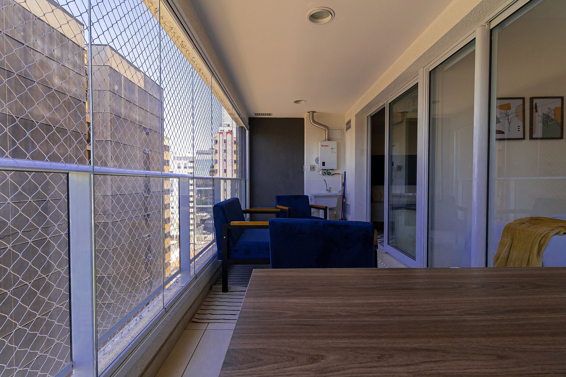 The space is located on the 11th floor, providing a wide view of the city, in addition to having a decor designed to make the space cozy, in addition to having an optimized environment, with a full kitchen.
