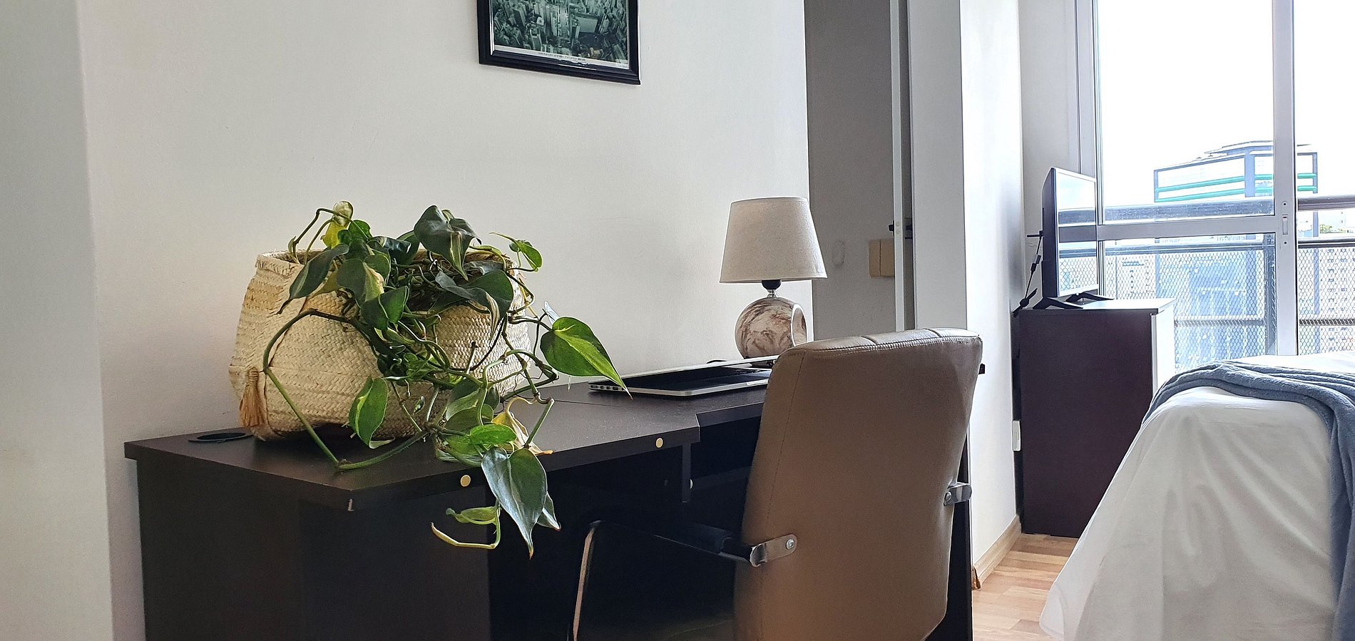 In addition, it is on a high floor and features a balcony with incredible views of the city, great WiFi signal and a flat screen TV.