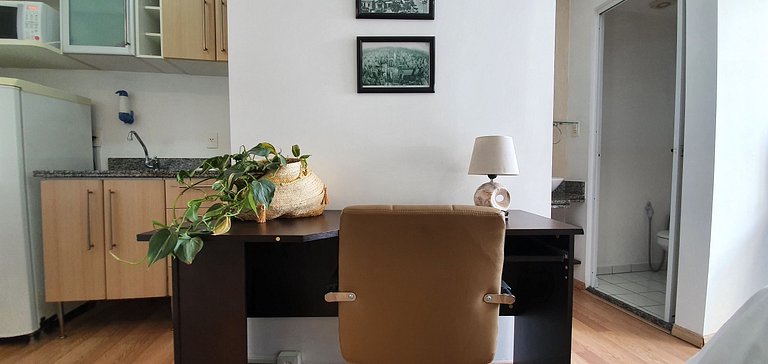 This well decorated open concept studio is strategically located in a residential building near Av. Paulista, subway, Rua Augusta and Consolação and also very close to downtown