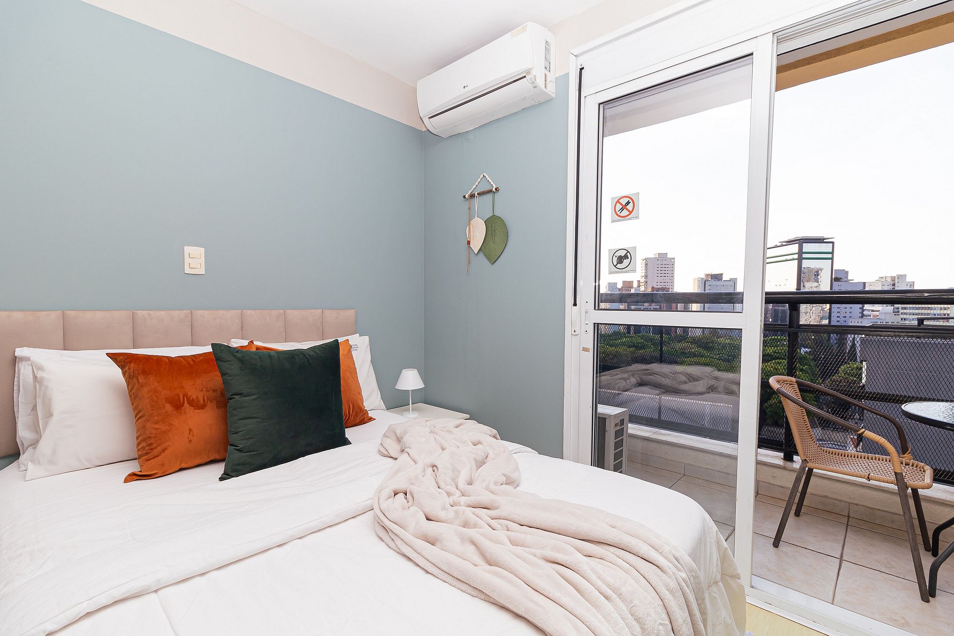 Newly renovated and very comfortable studio. It is 4 blocks from the subway and is very well located, safe neighborhood, close to Av. Paulista has: full kitchen, air conditioning, balcony with view, swimming pool, sauna, gym, study and meeting room, garage and 24-hour concierge