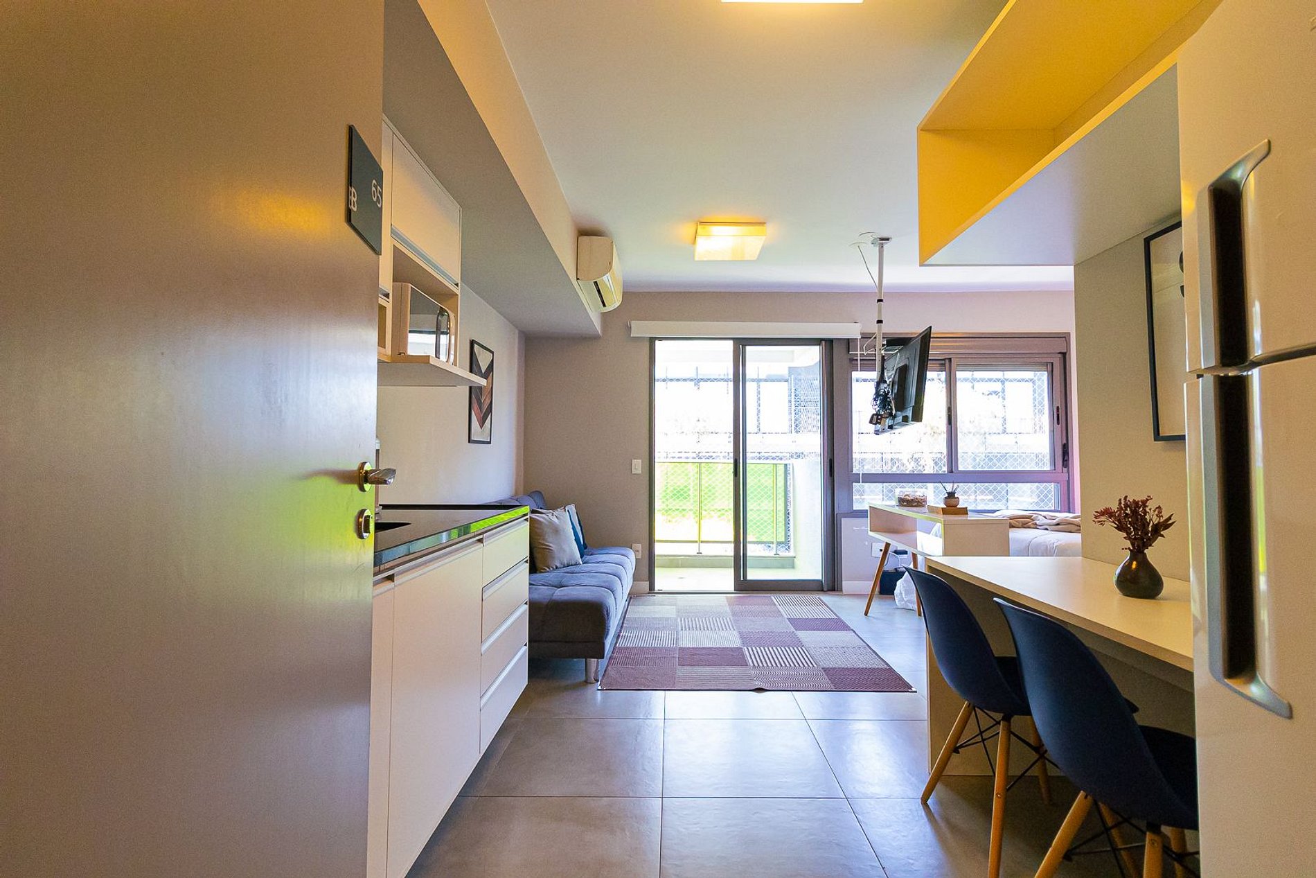 Located in the heart of the most vibrant, bohemian, artistic and architectural neighborhood in São Paulo, this minimalist studio has everything you need for a perfect and cozy stay. The studio has a balcony overlooking the full kitchen with basic utensils for everyday cooking, air conditioning, wi-fi, swimming pool, gym, garage and 24-hour concierge.