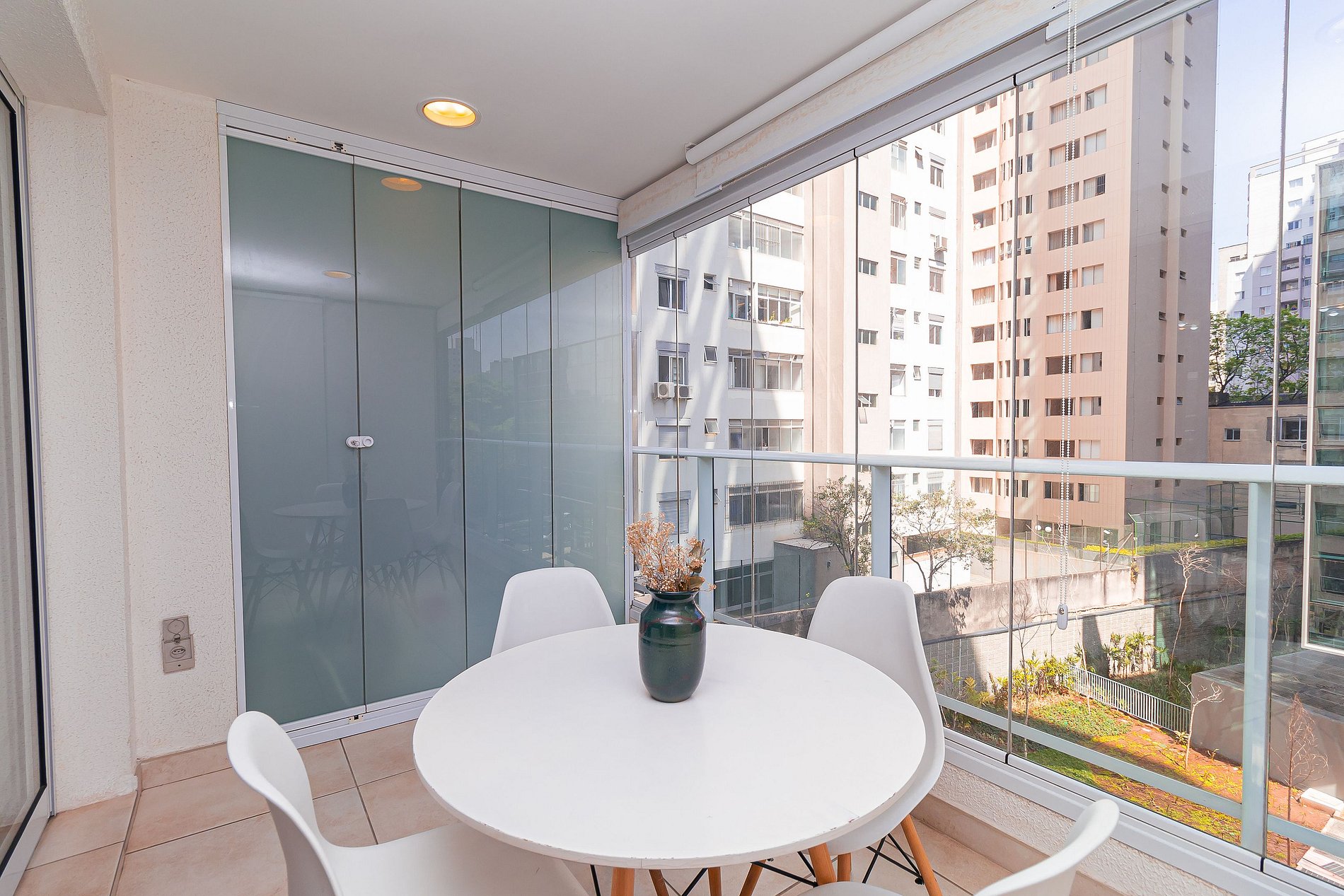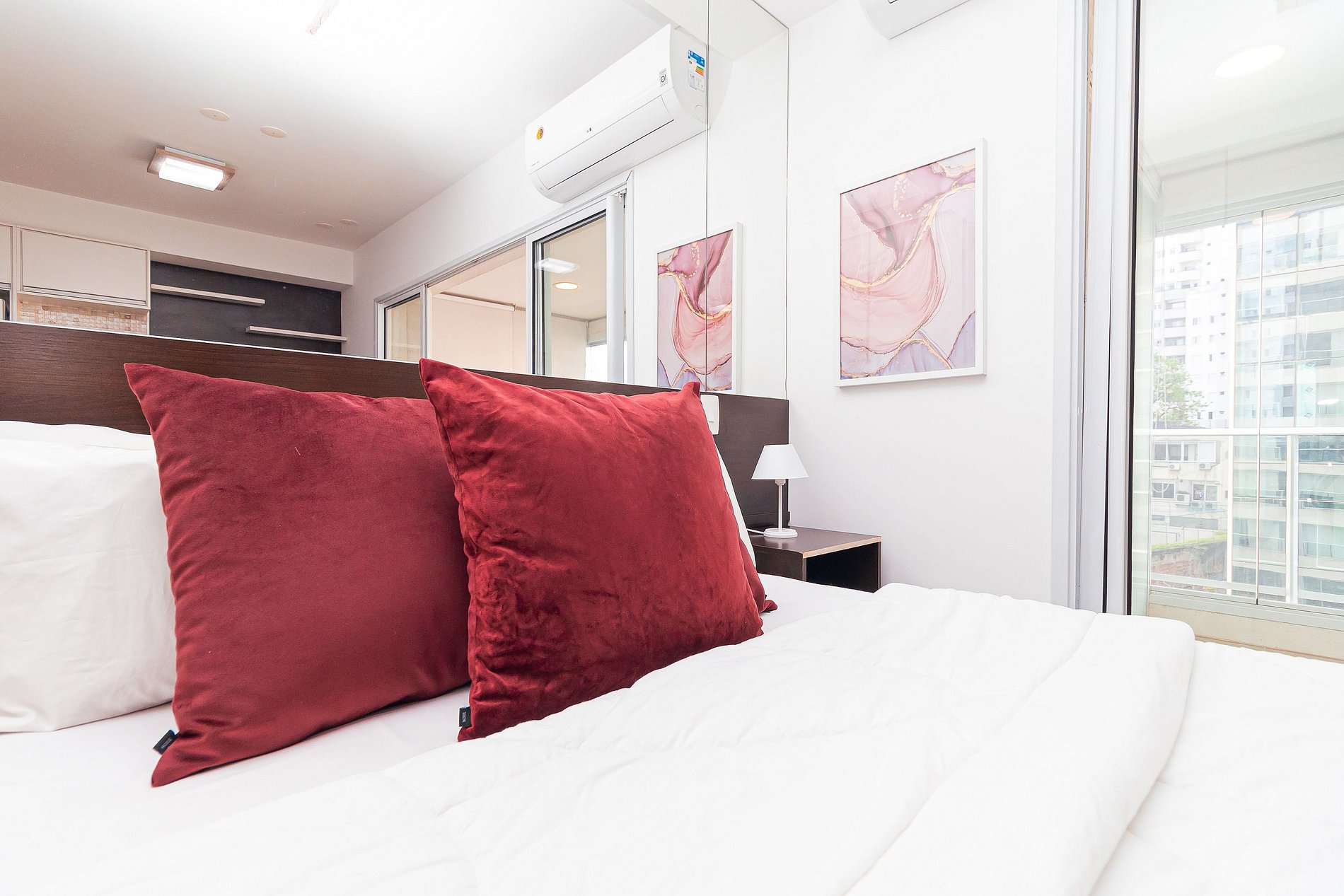 The studio is located on the 5th floor, offering a wonderful view of the city, in addition to having a decor designed to bring warmth to the space.