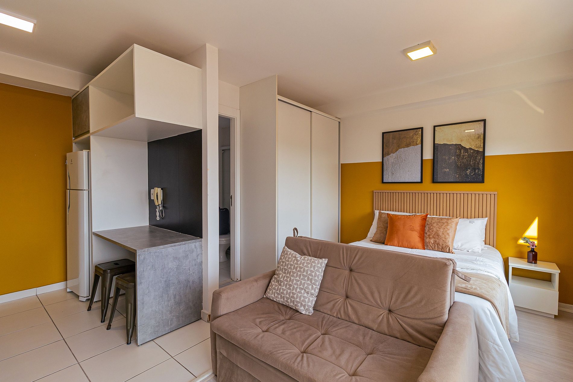 The building offers laundry facilities for a fee in its common areas, outside the apartment. The apartment is spacious and bright, with large windows and frames, which allow natural light to enter the entire space, making it ventilated and bright during the day and night. It is an environment that combines comfort and modernity, with vibrant and cheerful colors, contrasting between warm and nude tones. Its location is privileged, being in a neighborhood full of independent fashion stores, casual cafes, contemporary art galleries, bistros, relaxed bars, and live music spaces that host soul, funk and samba performances, in other words, a Eclectic neighborhood full of diversity, catering to all styles and preferences.
