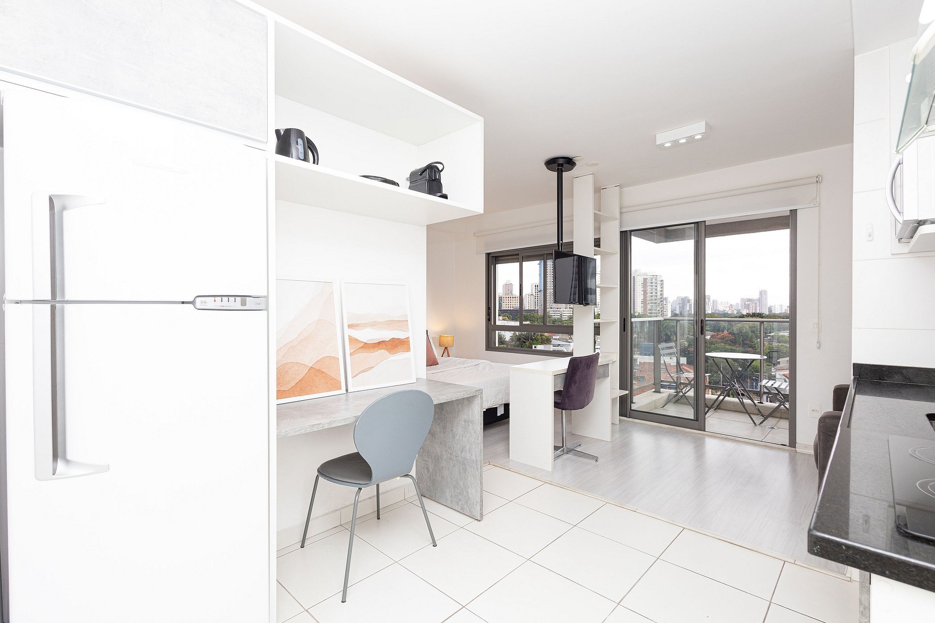 Every detail of the studio was thought of to provide the best experience possible. The layout is functional, with smart spaces to make you feel at home from the moment you arrive.