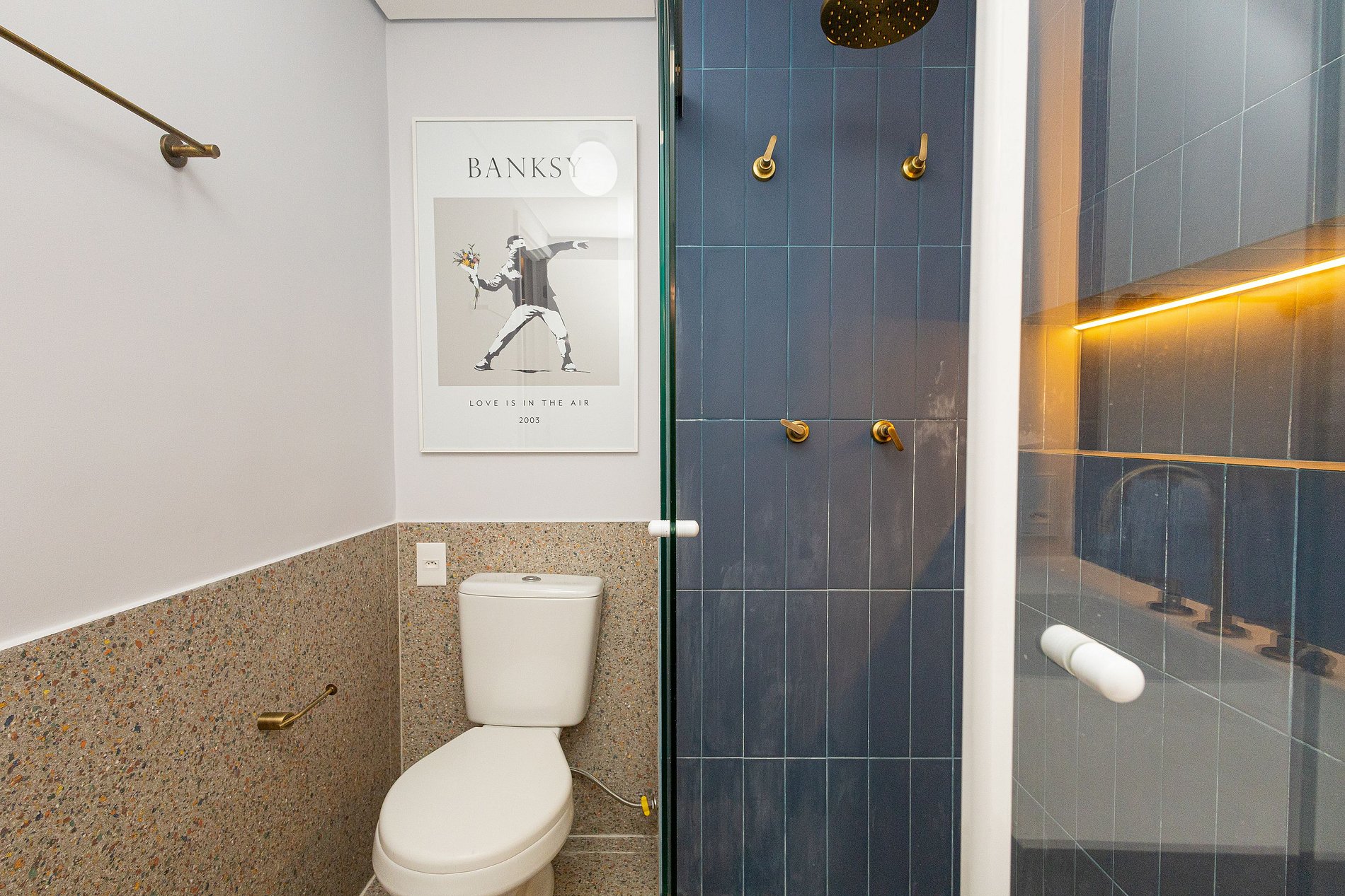 With a contemporary and welcoming atmosphere, this studio in Pinheiros combines good taste, functionality and a strategic location. The space was carefully decorated with elements that give it personality, such as exposed brick walls and vibrant shades of blue and green. The soft and well-distributed lighting creates an inviting environment, perfect for both moments of relaxation and daily activities.