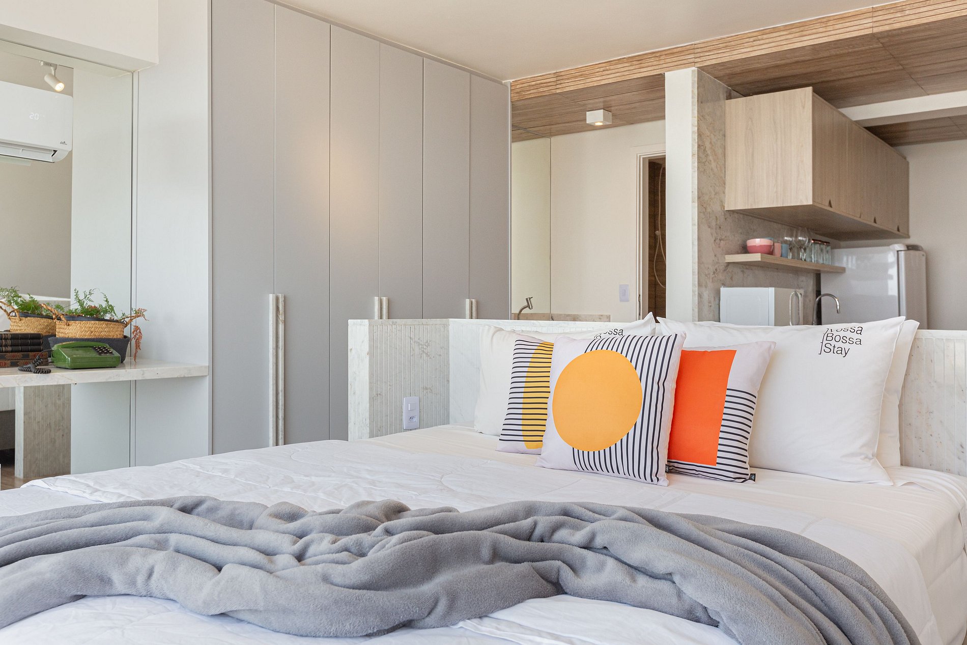 Nossos apartamentos são projetados para receber hóspedes com todo o conforto e possuem vistas lindas da cidade. Eles são entregues com enxoval completo e higienizado, toalhas, xampu e condicionador etc.