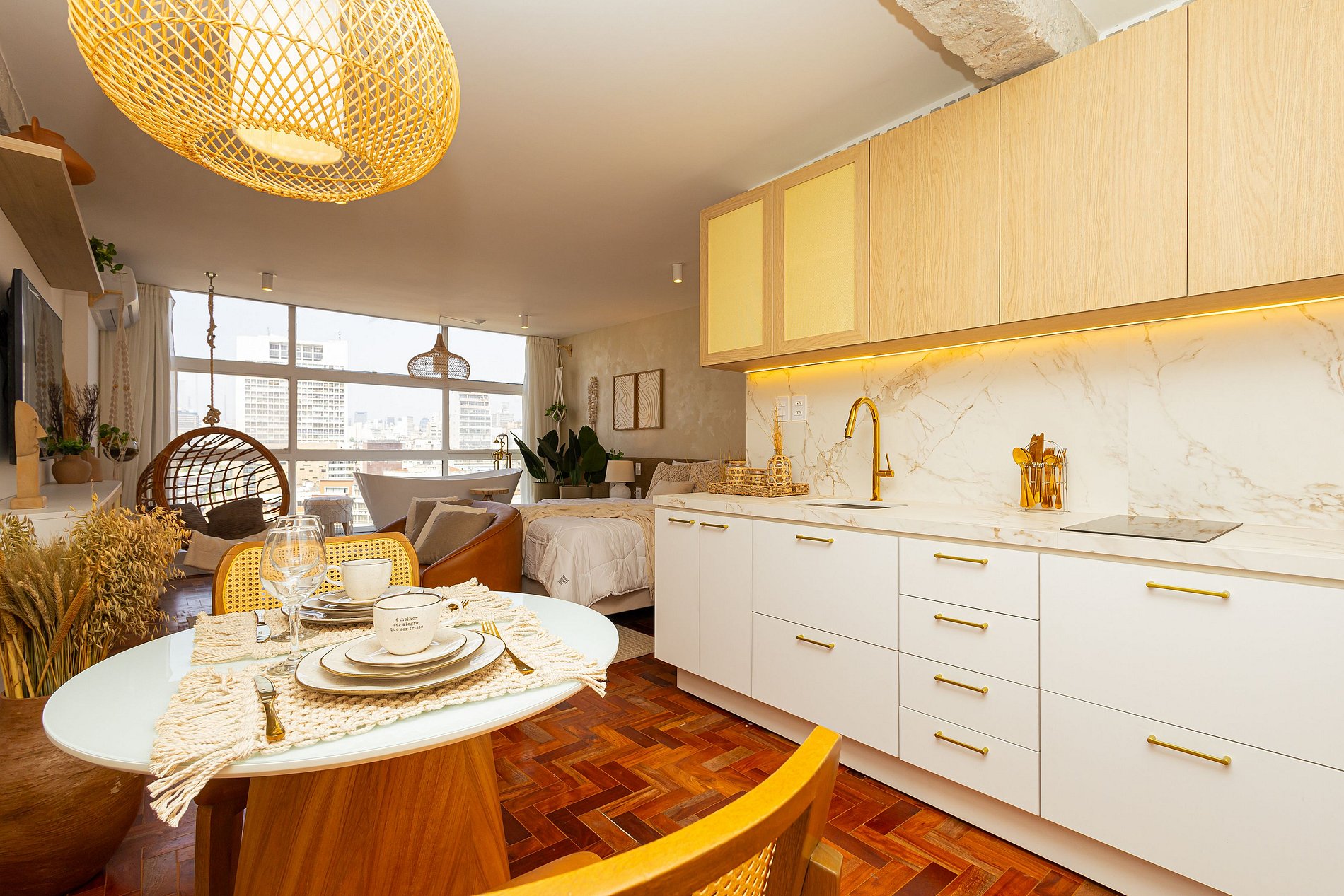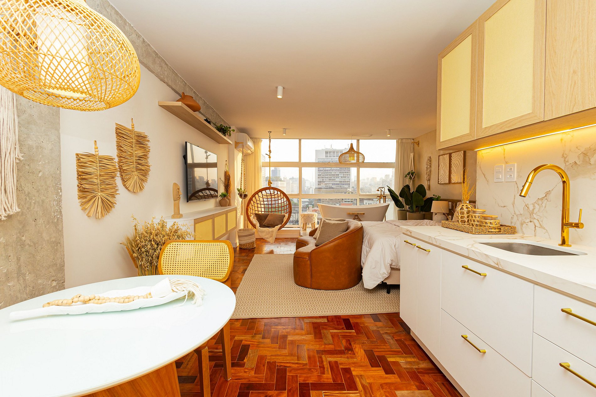 Located in the vibrant heart of São Paulo, opposite the recently revitalized Vale do Anhangabaú, this studio is the ideal base for exploring the city or simply losing yourself in the company of those you love. The apartment comes complete with impeccable linen and hygiene products, so that every detail of your stay is perfect.
