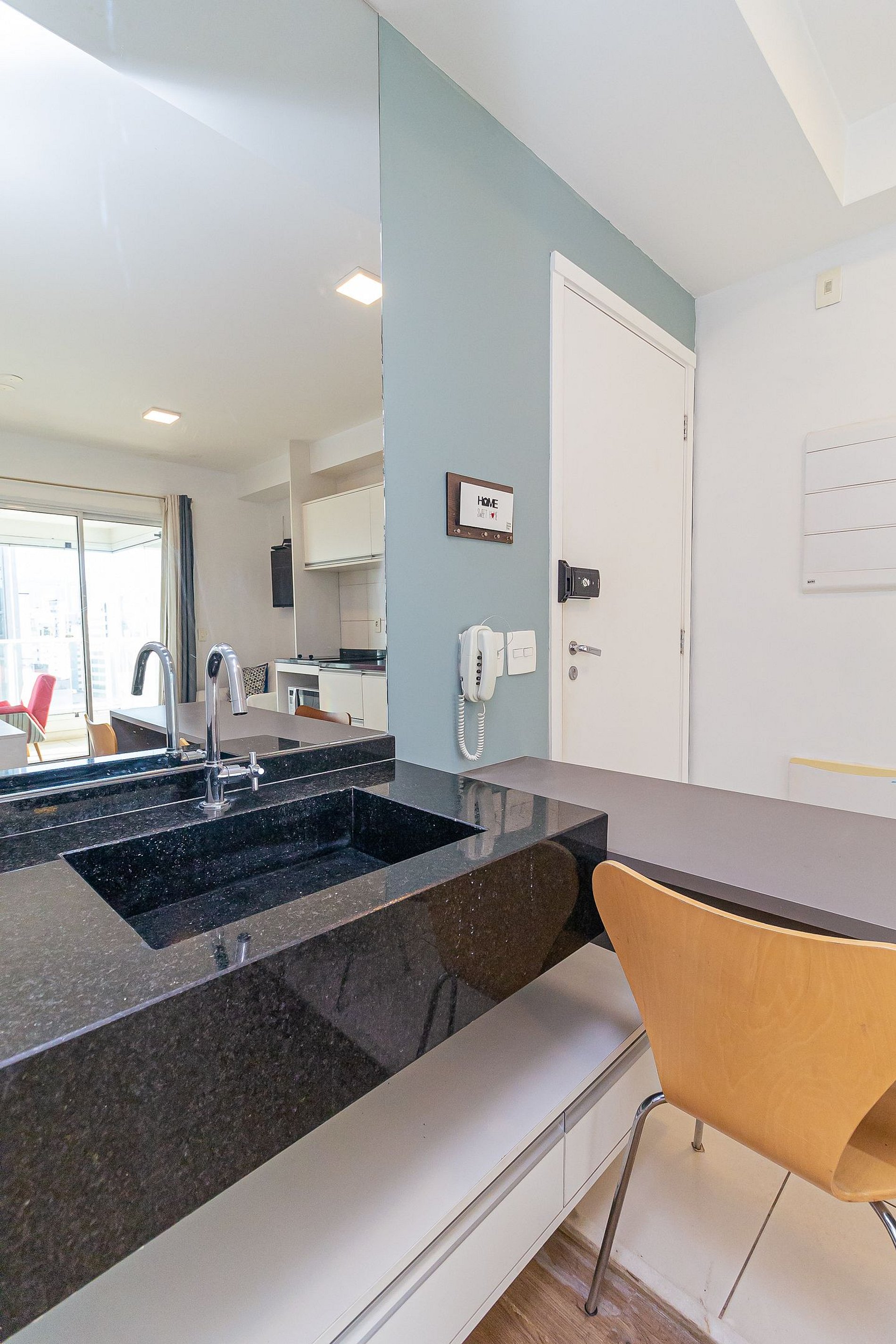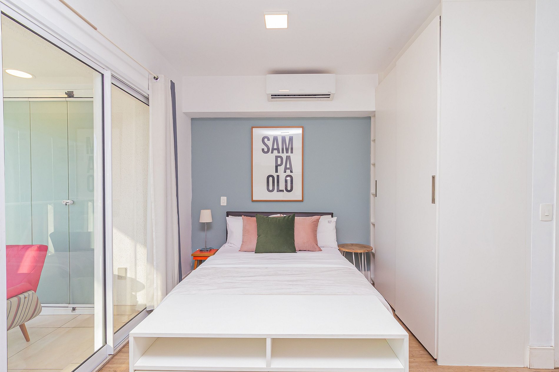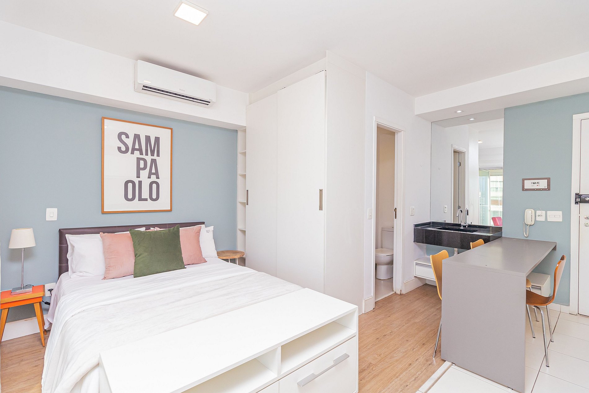 The studio was recently renovated and is located on the 20th floor, offering a wide view of the city, in addition to having a decoration all thought out to make the space cozy, in addition to having an optimized environment, with a complete kitchen, balcony with dining area, a super comfortable sofa. The Building has an excellent structure: having the largest suspended swimming pool in Latin America, gym, garage, laundry (paid separately) and is just 10 minutes walking from Avenida Paulista.