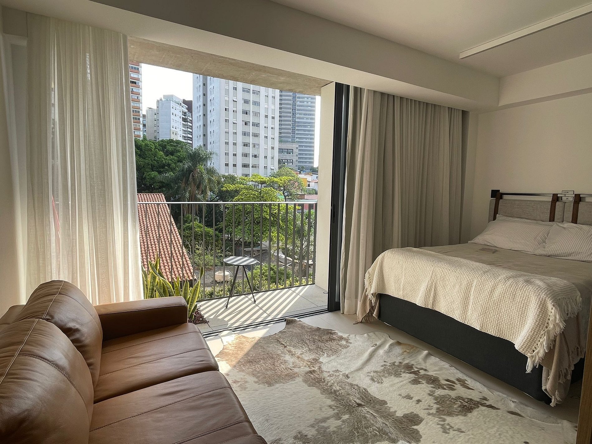 The studio is functional, with an optimized layout for comfort, enhanced by natural lighting and cross ventilation. One of its highlights is the view, bringing the vibrant atmosphere of São Paulo’s most creative neighborhood right into your space.