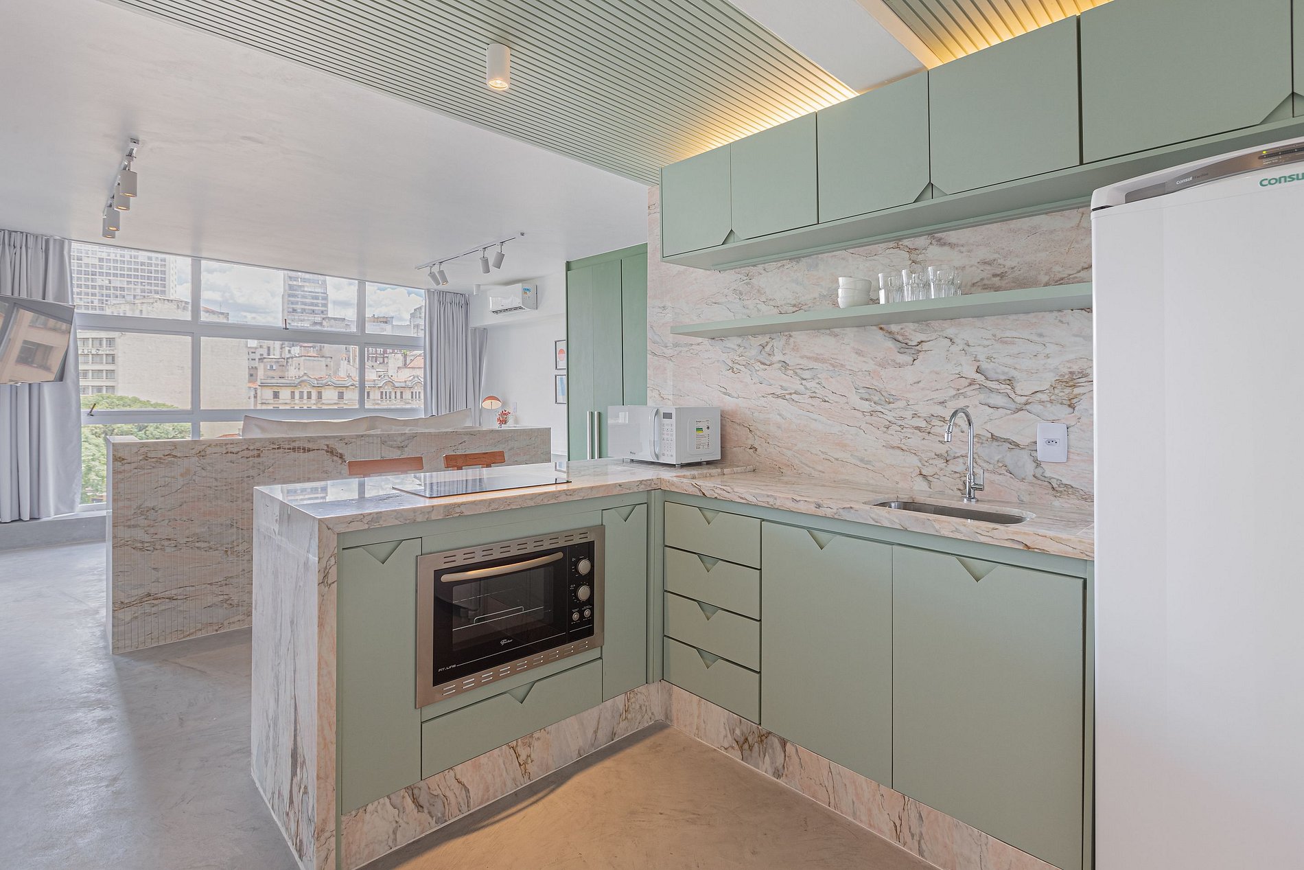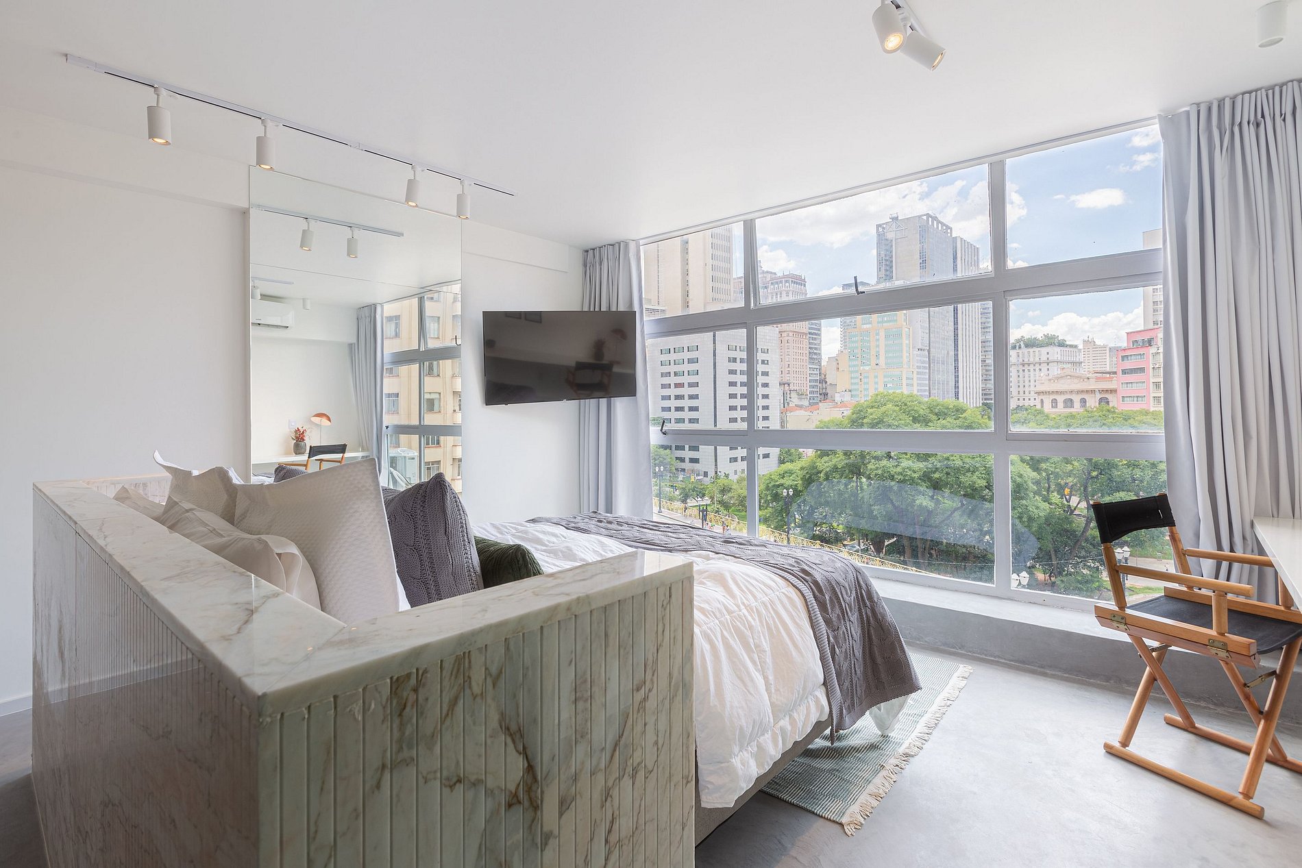 Recém reformado e com uma incrível vista do janelão icônico do 10º andar de um dos Edifícios mais altos da cidade, o estúdio localizado no Mirante do Vale, é palco pro lindo viaduto Santa Ifigênia.