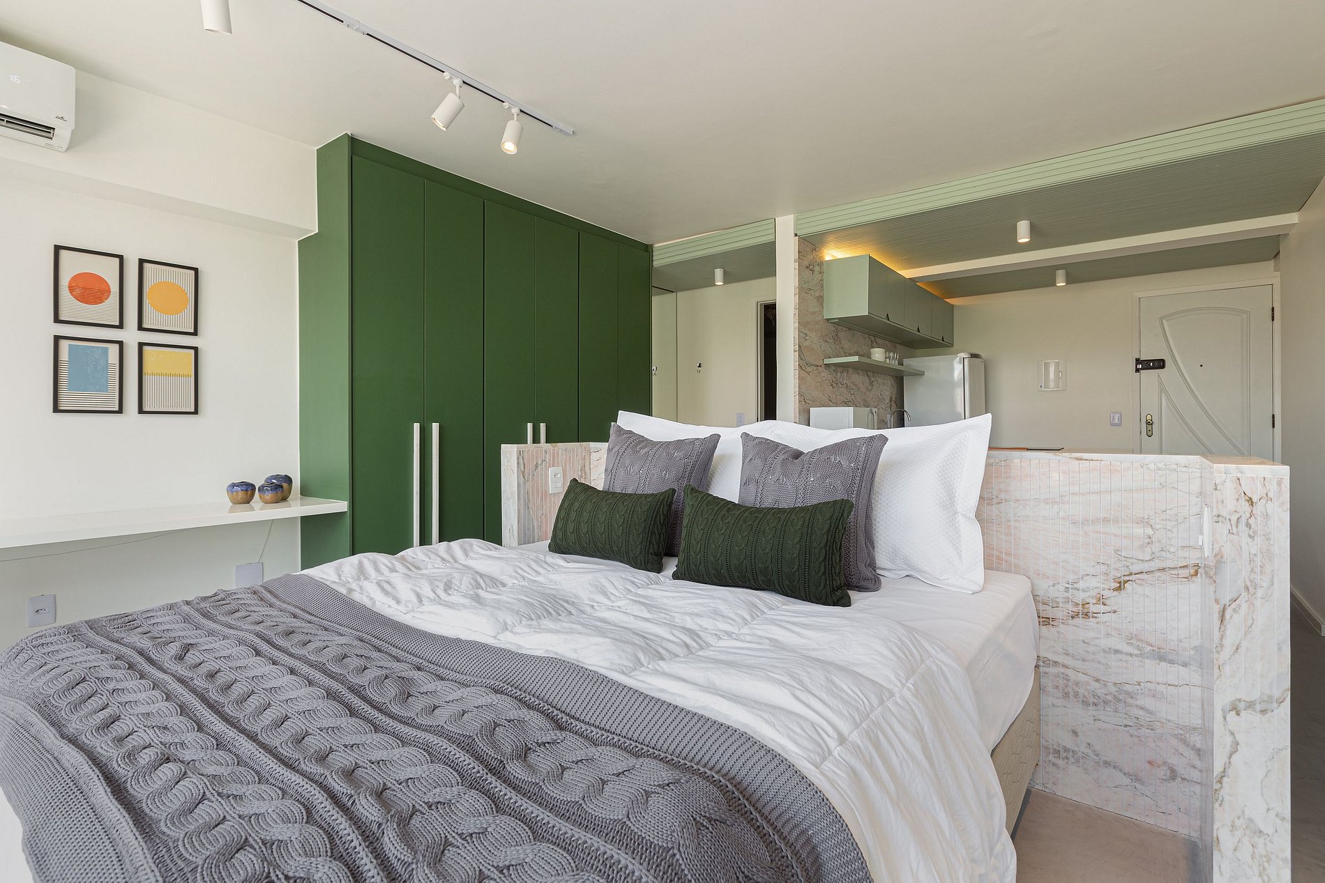 Nossos apartamentos são projetados para receber hóspedes com todo o conforto e possuem vistas lindas da cidade. Eles são entregues com enxoval completo e higienizado, toalhas, xampu e condicionador etc.