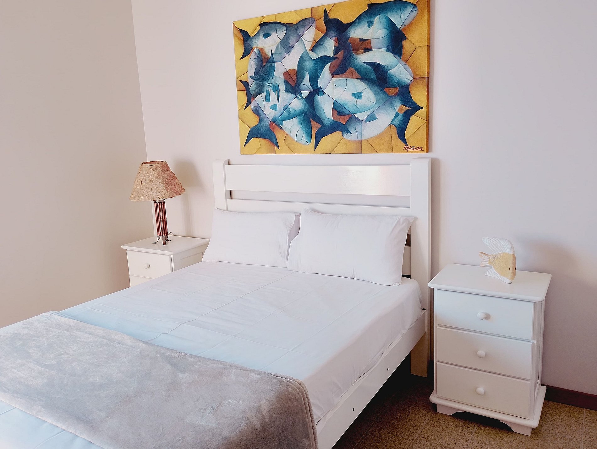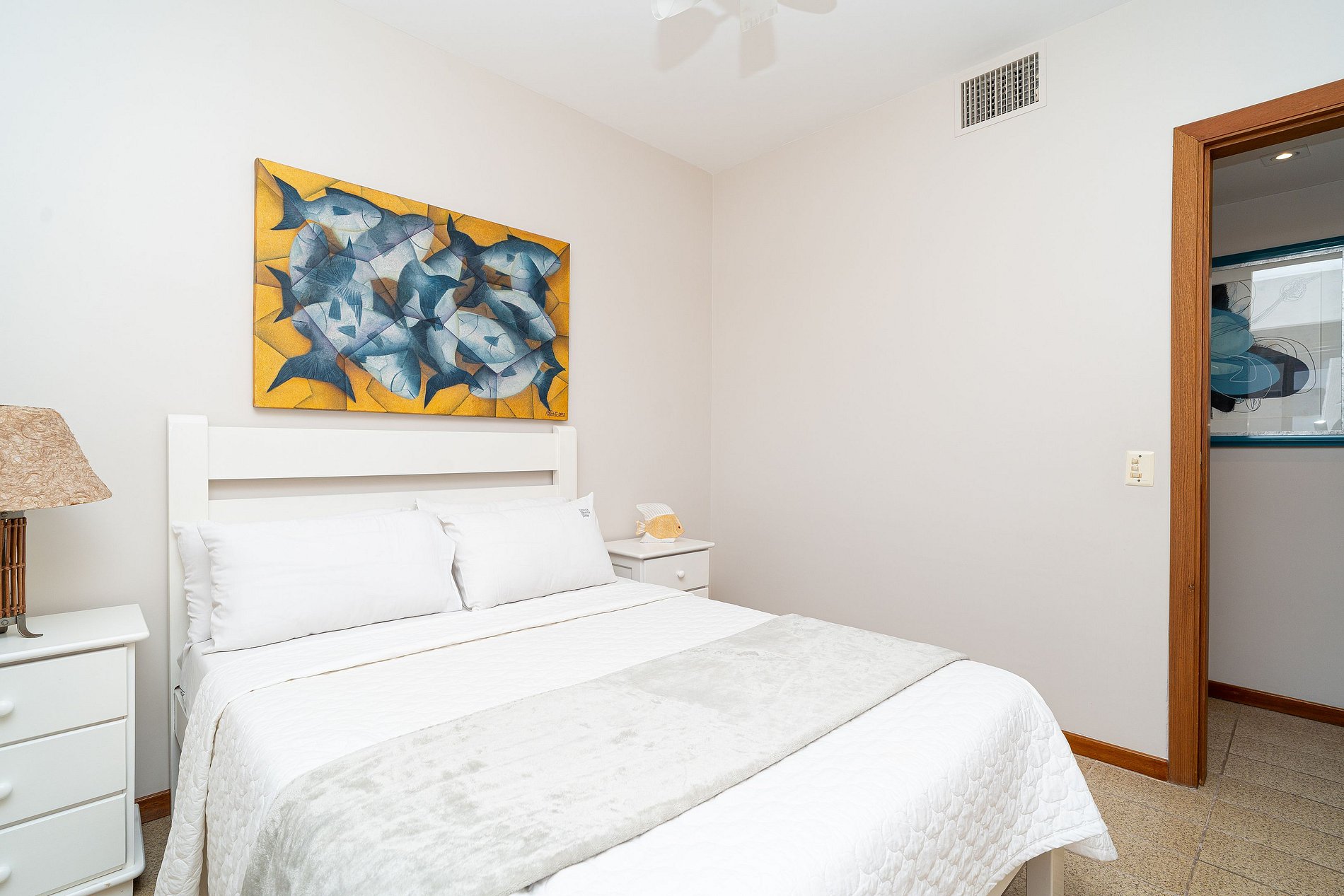 O apartamento conta com três quartos confortáveis: