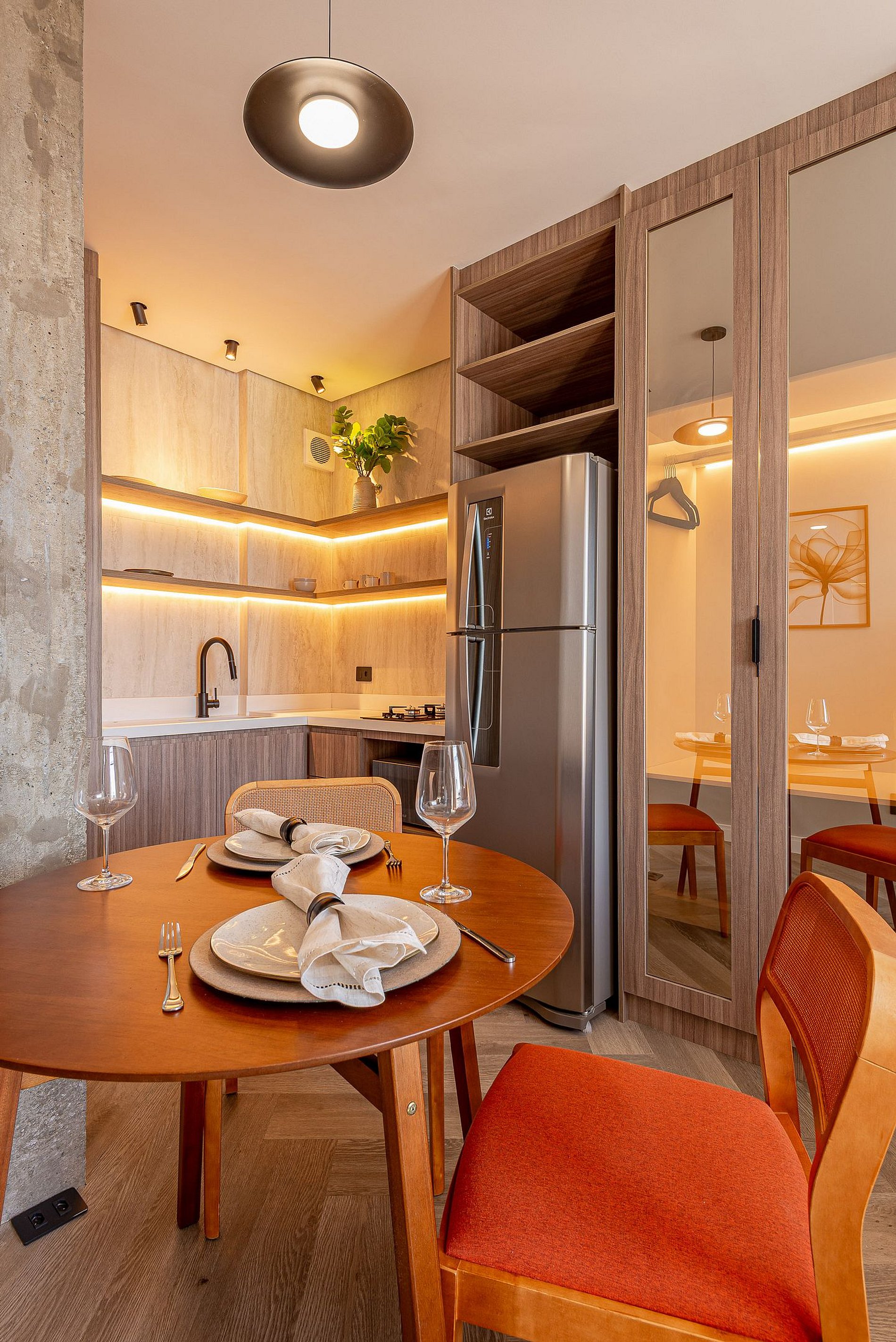 Ambientes Amplos e Aconchegantes: O apartamento conta com um espaço bem iluminado e arejado, com sala de estar integrada à cozinha, ideal para momentos de descontração ou para receber amigos e familiares.