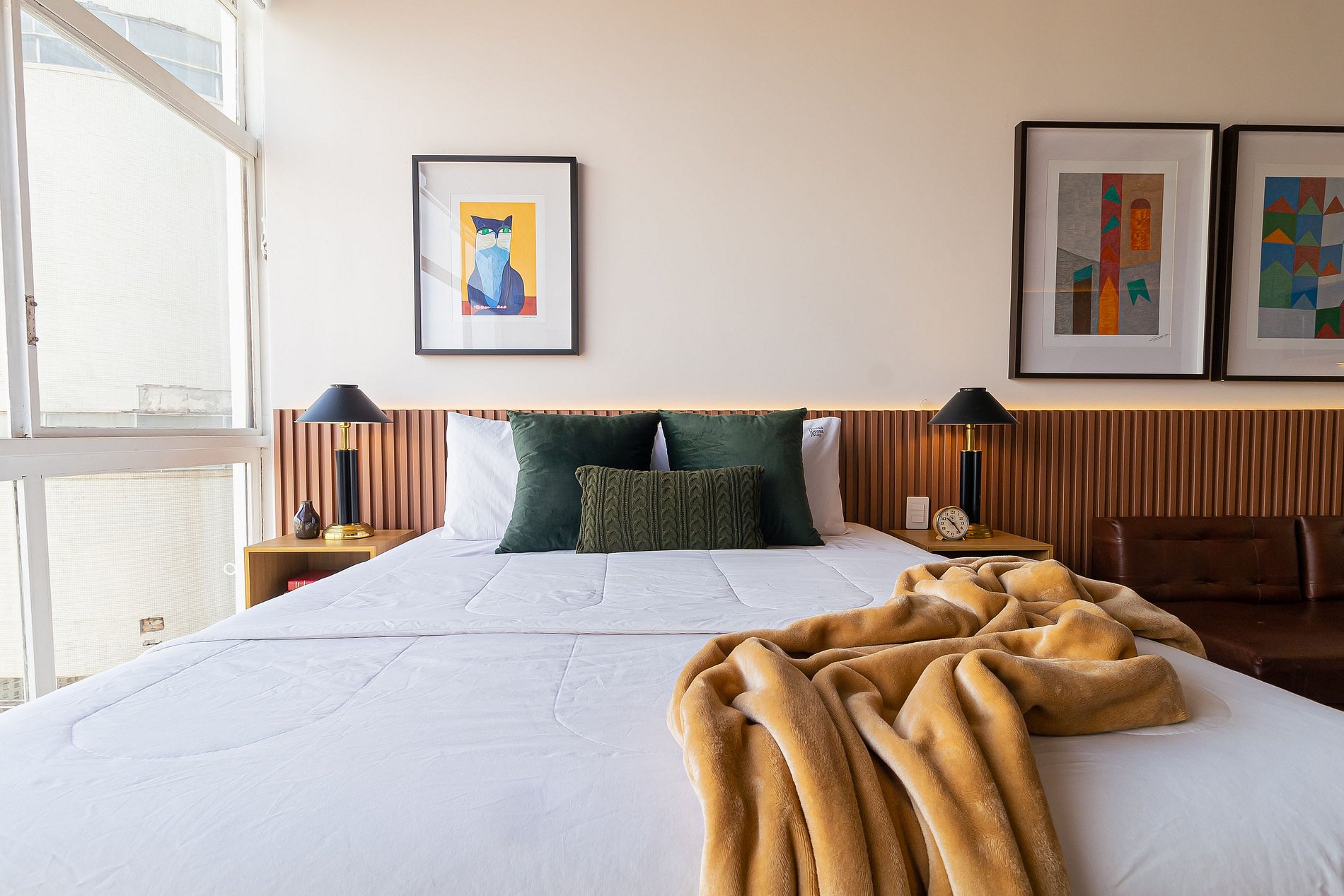Apartamento de conceito aberto, com todo o conforto que você precisa: cama Queen, Smart TV em uma decoração acolhedora e funcional.