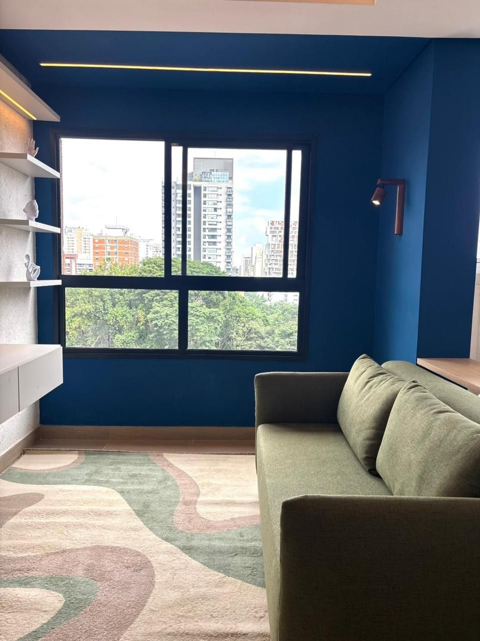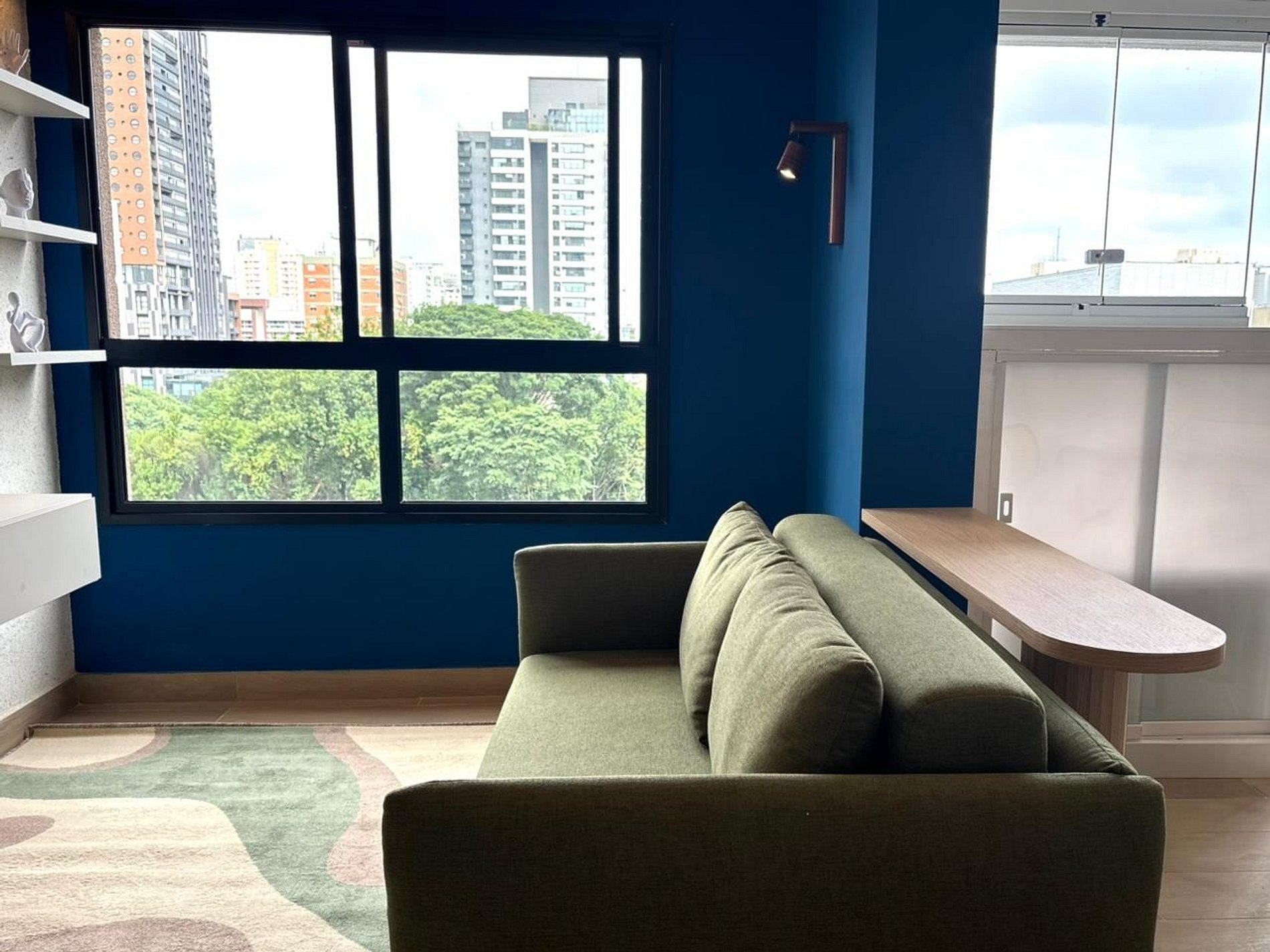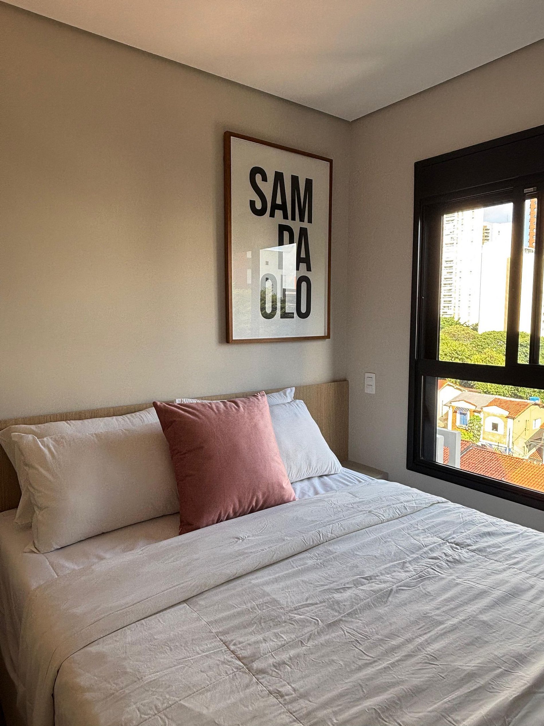 O grande diferencial está na distribuição dos ambientes. Diferente de um studio, aqui você conta com espaços bem definidos: