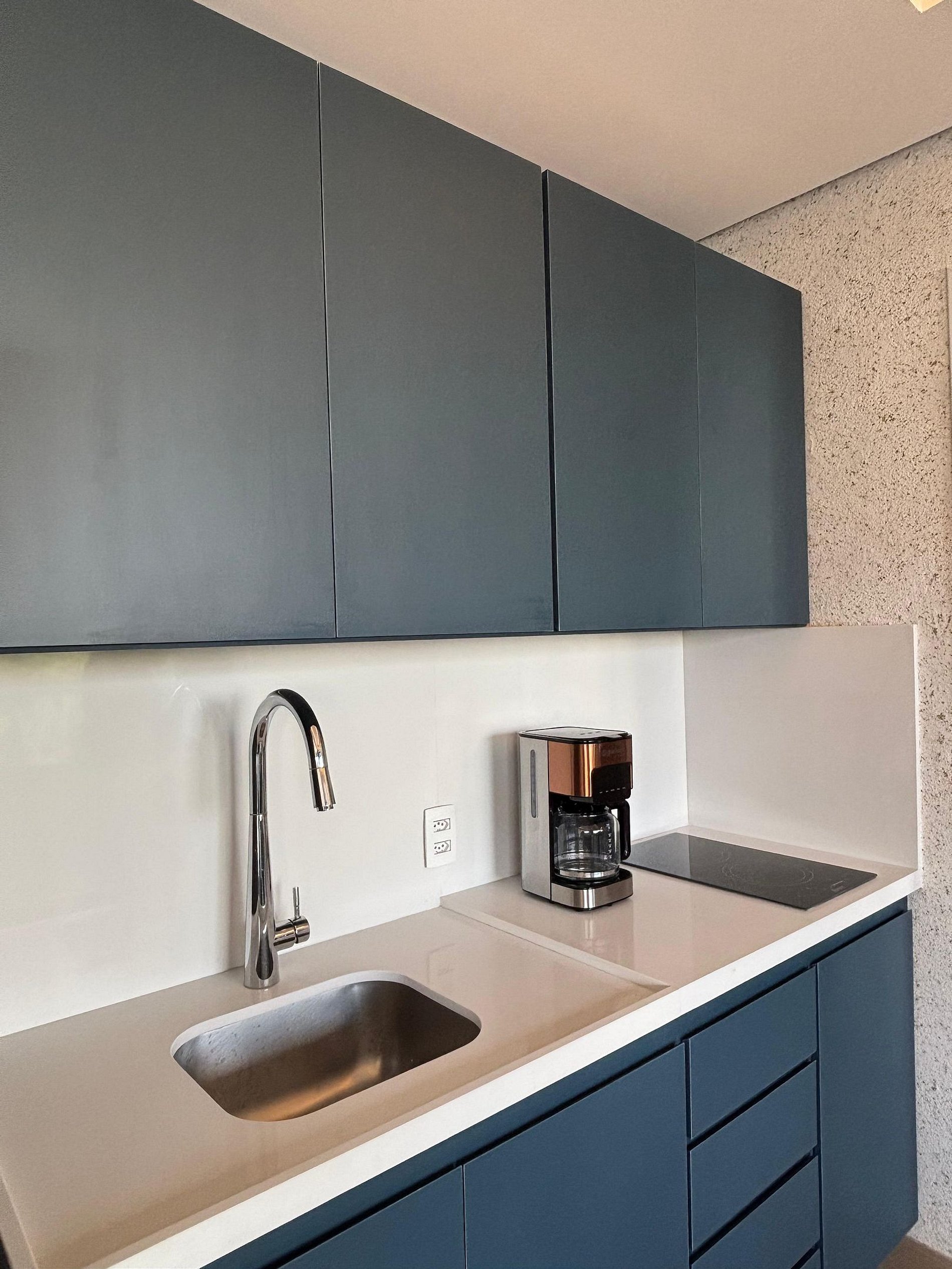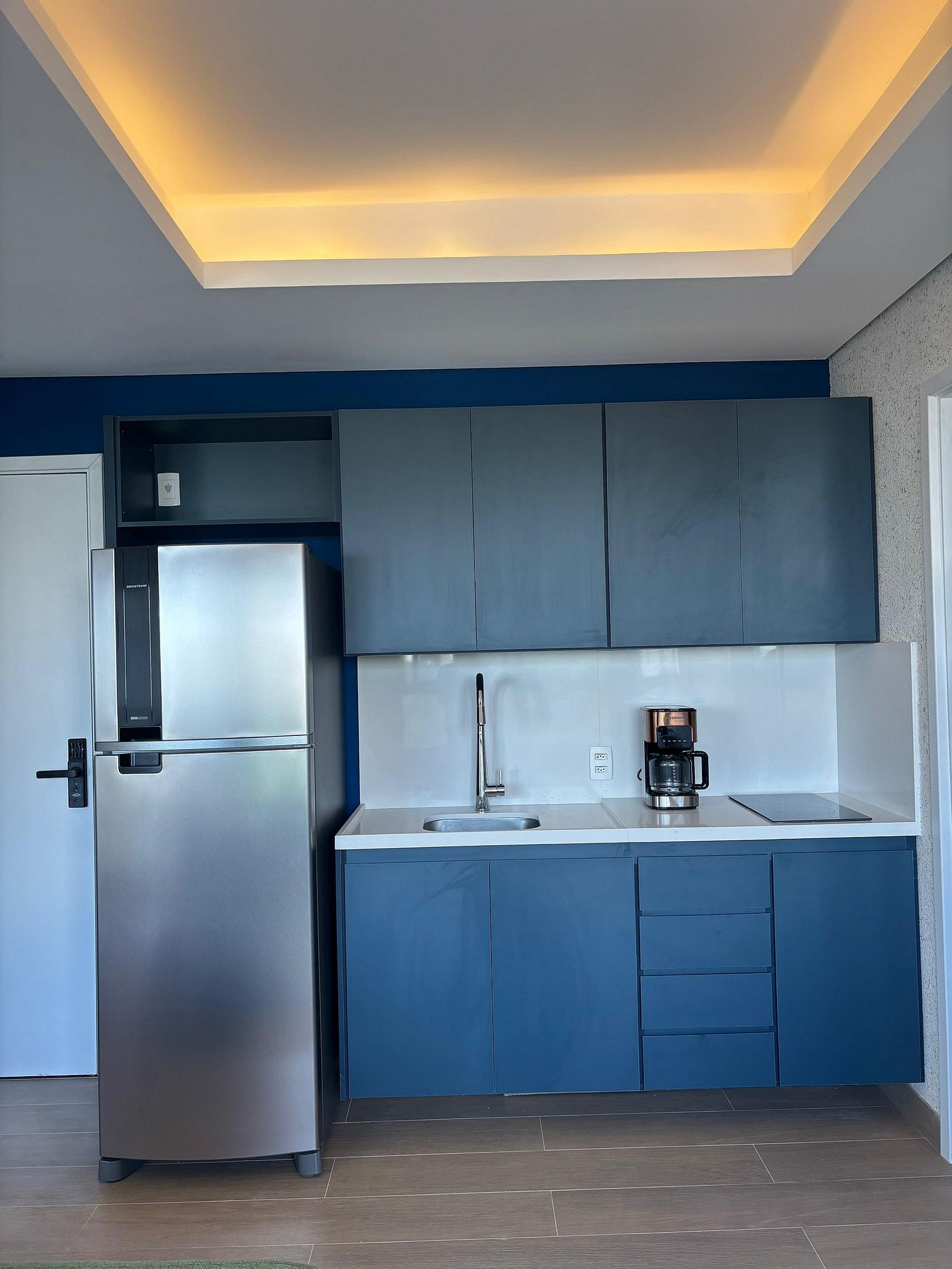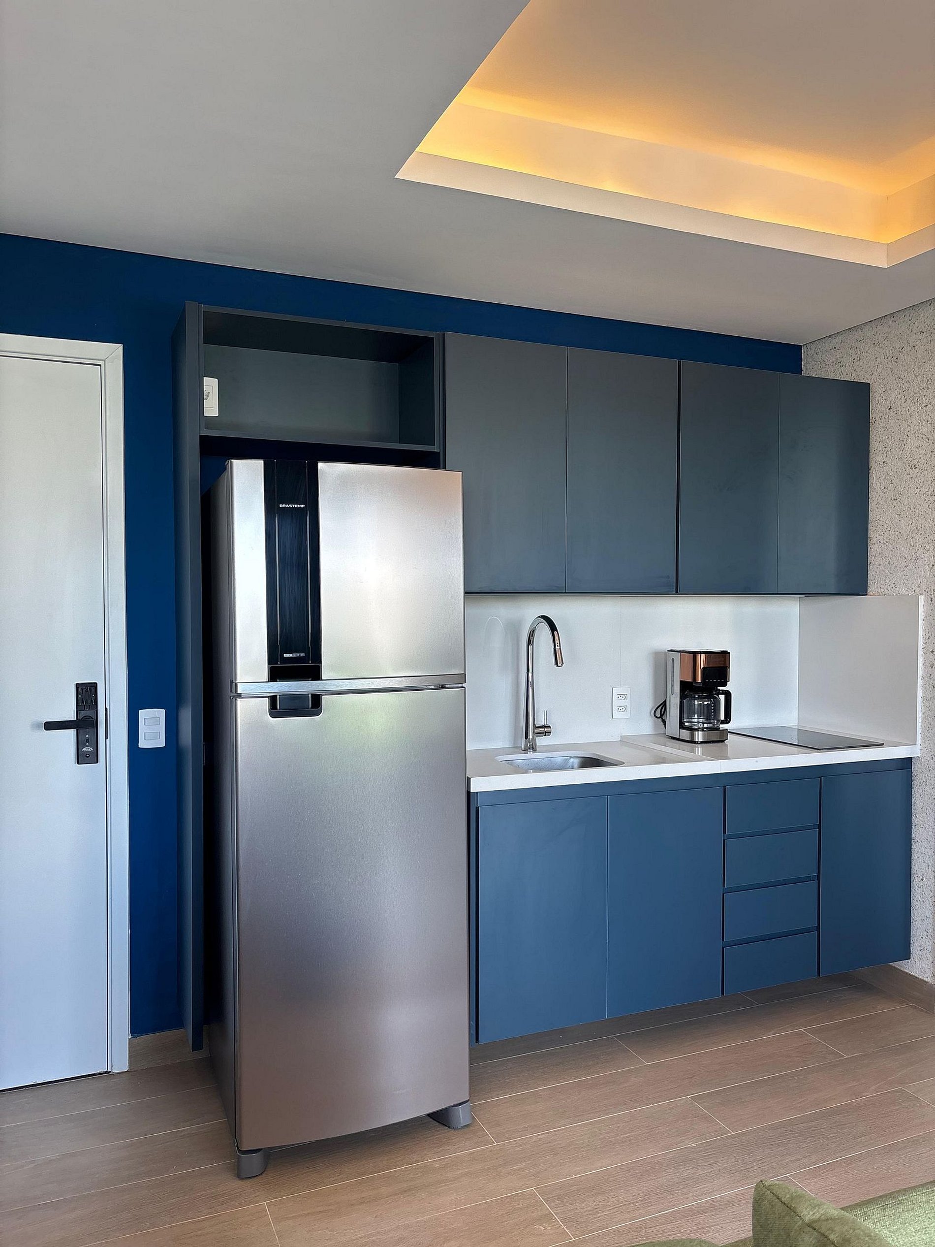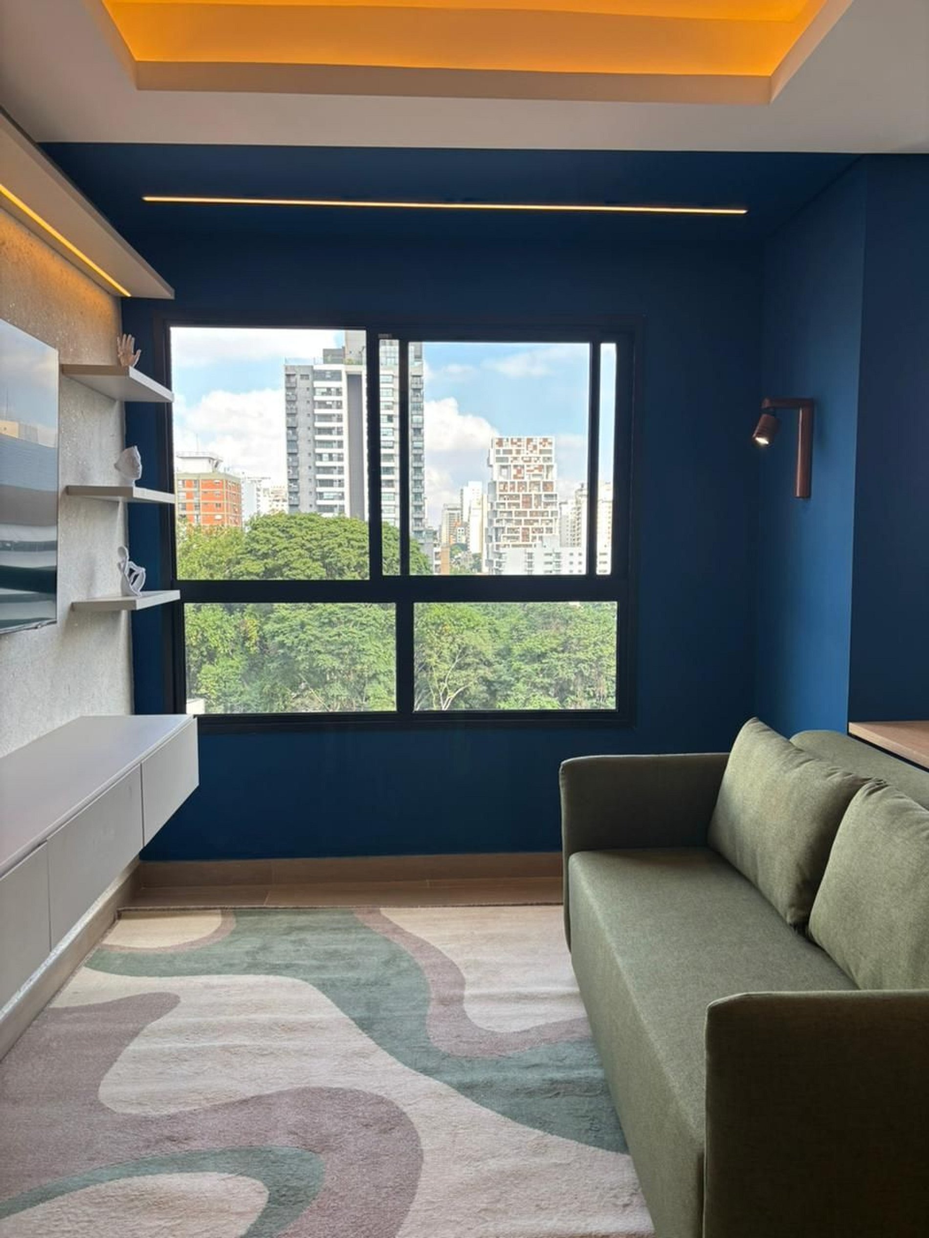 O grande diferencial está na distribuição dos ambientes. Diferente de um studio, aqui você conta com espaços bem definidos:
