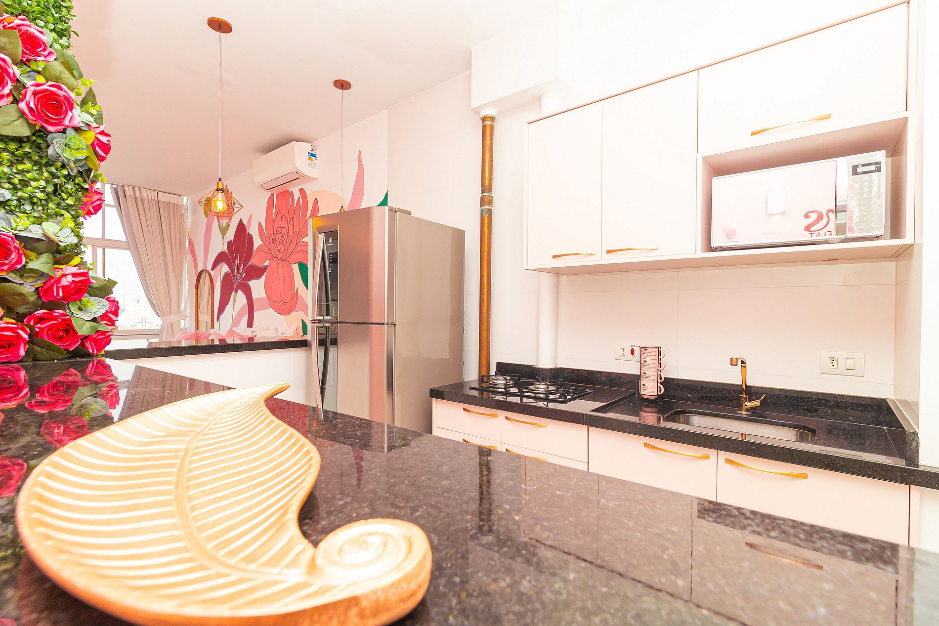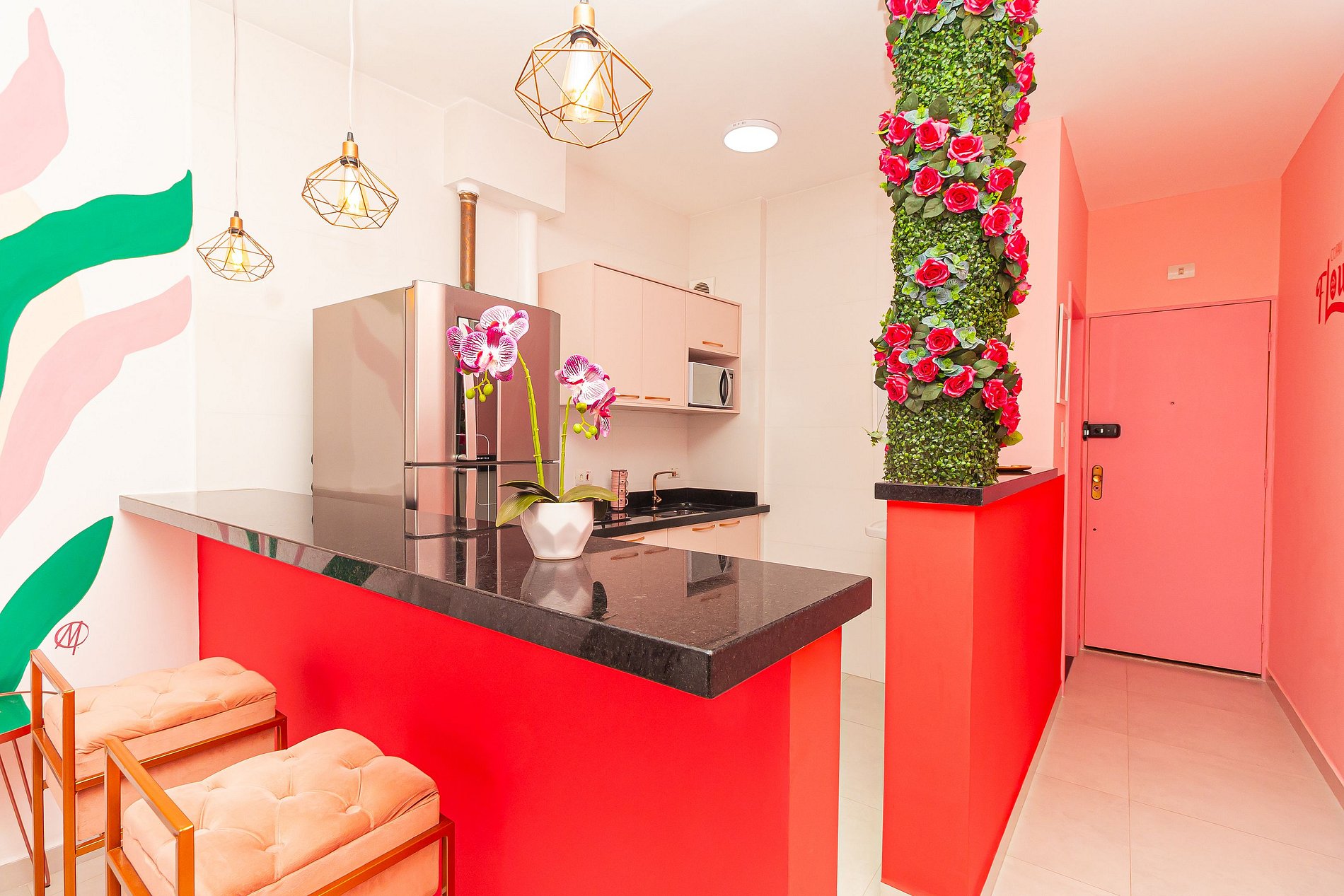 Bem-vindo ao nosso estúdio Flowers encantador, onde cada canto é uma cena de um sonho! Situado no icônico Edifício Copan, no coração pulsante de São Paulo, este estúdio totalmente rosa é o refúgio perfeito para os amantes da estética moderna.