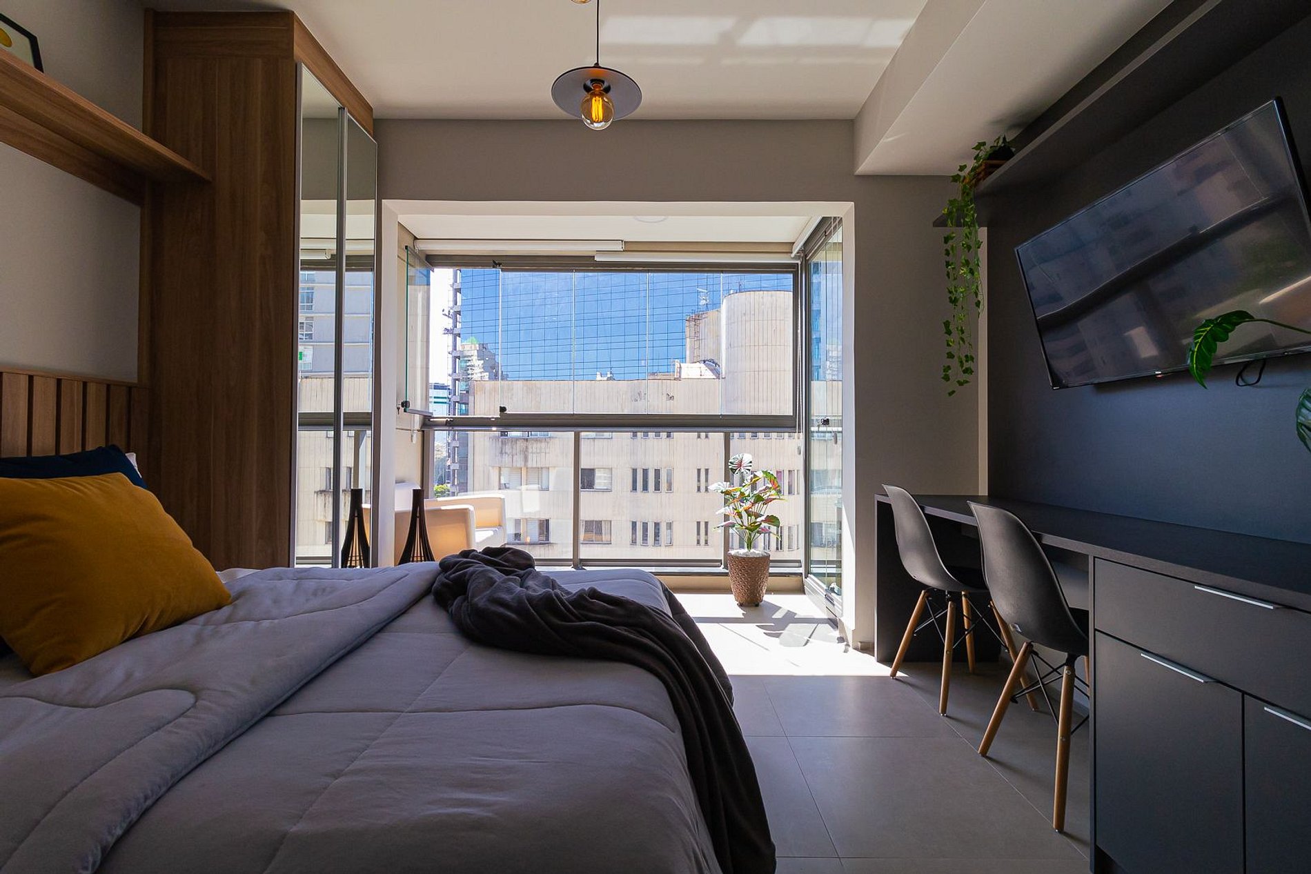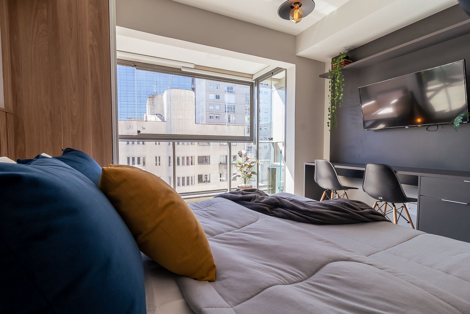 Studio completo na Bela Cintra no bairro da Consolação no coração de São Paulo, próximo a Paulista e ao Sírio-Libanês, decoração aconchegante e moderna com tudo para sua estadia ser tranquila como ar-condicionado e cama queen.