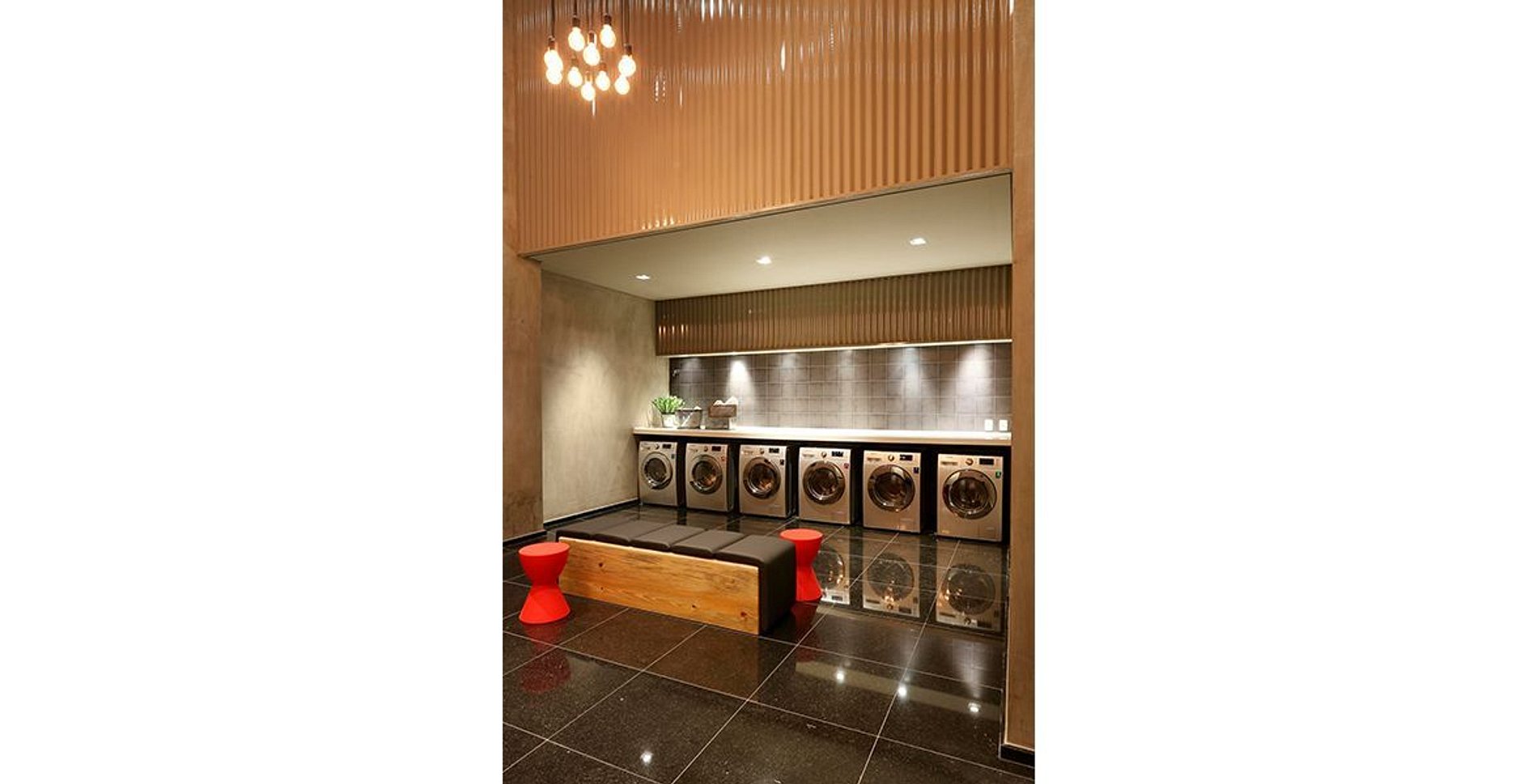 O prédio oferece lavanderia paga a parte nas suas áreas comuns, fora do apartamento.