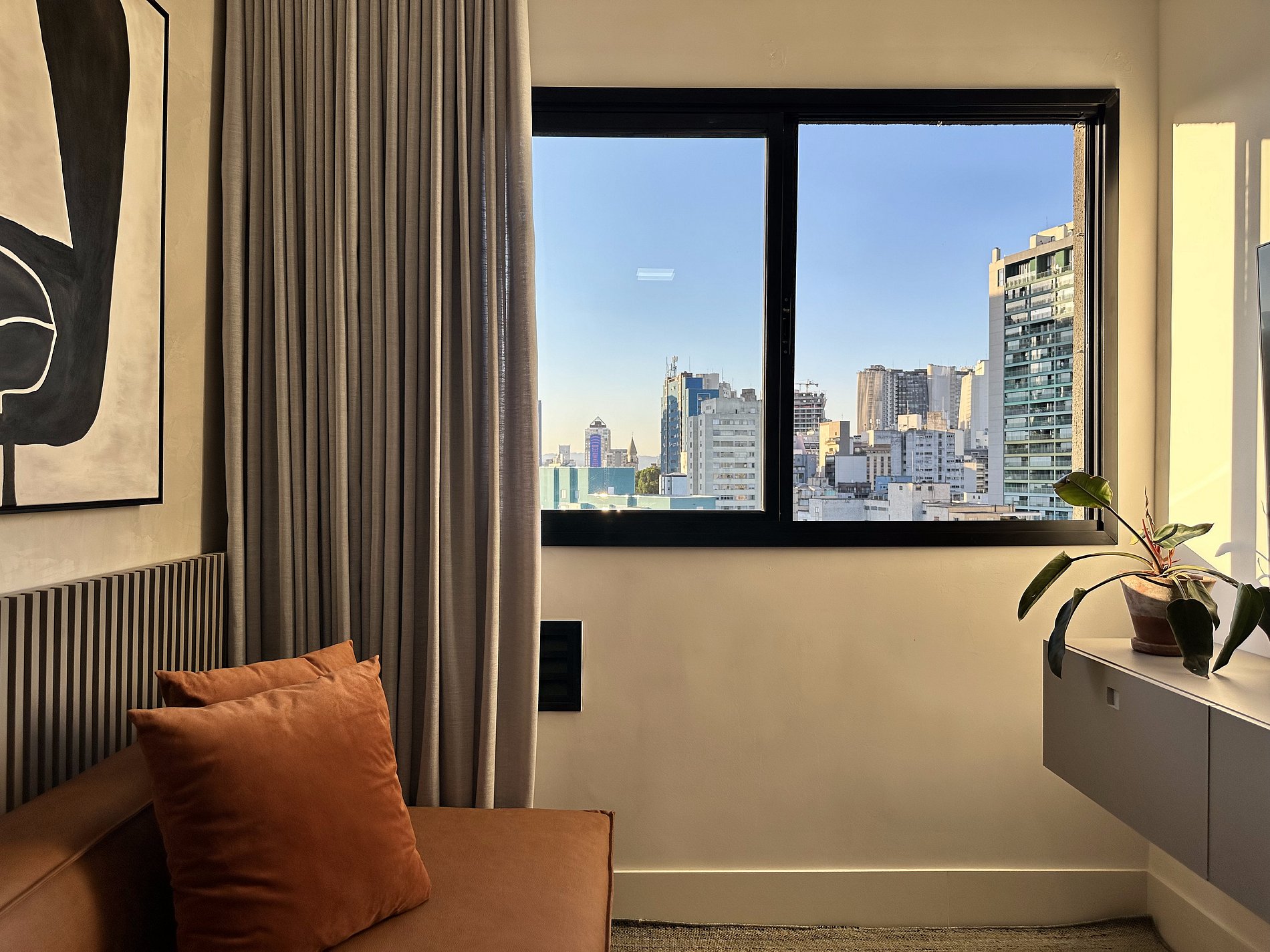 Apartamento recém-reformado em uma região central da cidade. No 12º andar, este espaço de 37m² oferece dois dormitórios otimizados, uma cozinha completa integrada à sala de estar e um banheiro. Sua localização é estratégica, próximo ao Hospital Sírio Libanês e com fácil acesso a diversas comodidades para uma estadia confortável. O edifício conta com portaria 24 horas e academia gratuita para os hóspedes, além de lavanderia paga para praticidade adicional.