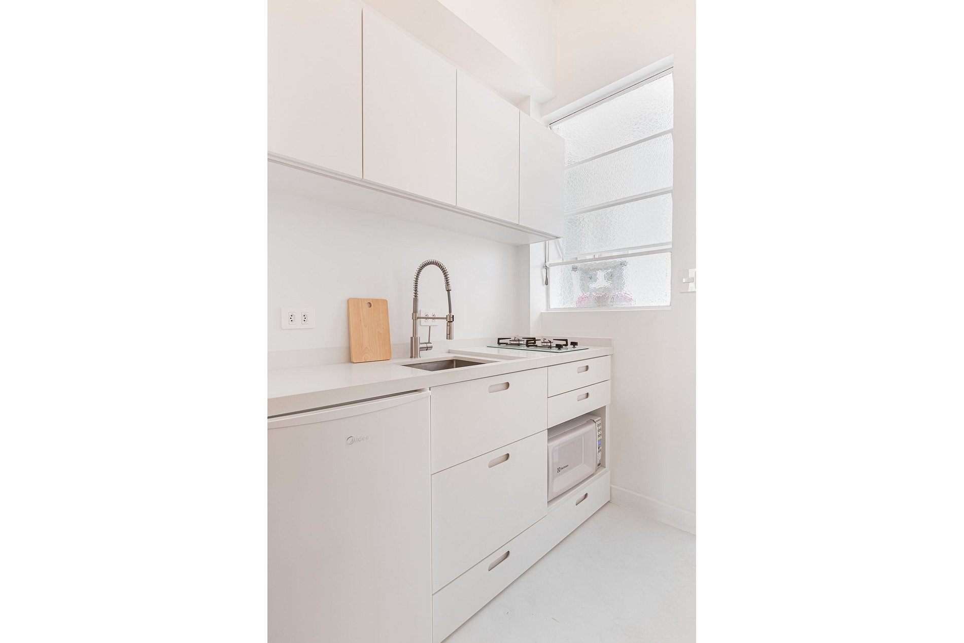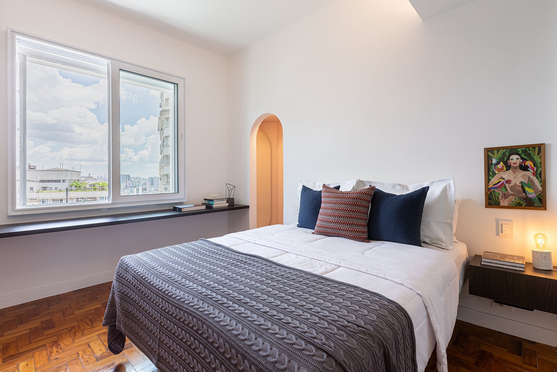 Cores neutras, curvas e luz. Todo o charme e personalidade do icônico Edifício Marian, no centro histórico de São Paulo, foi trazido para cada elemento deste apartamento localizado em seu 12° andar.