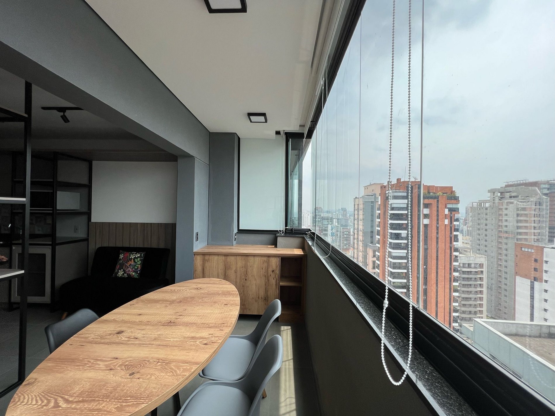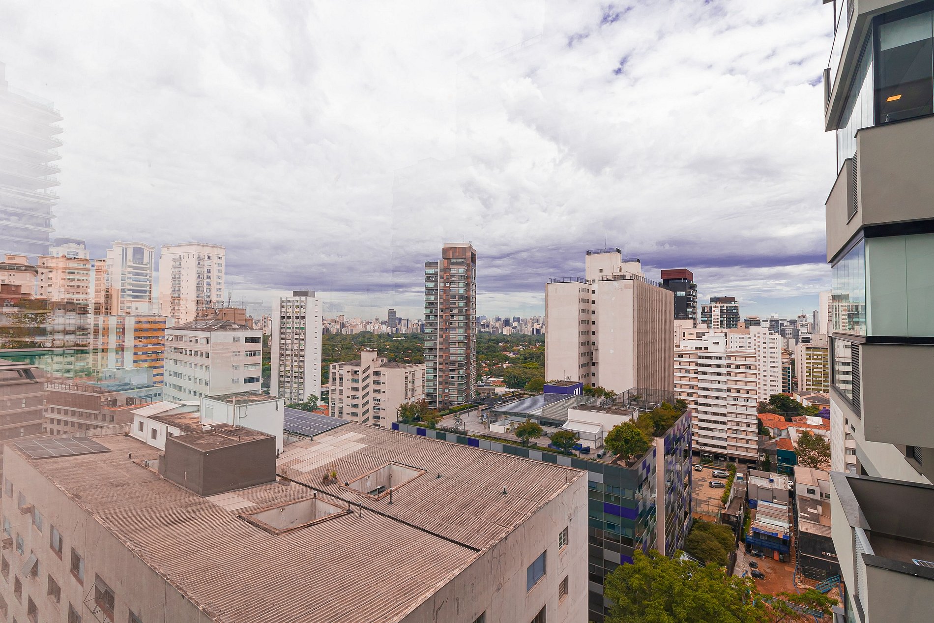 Apartamento industrial no coração de Pinheiros ao lado da Oscar Freire, bem iluminado com uma vista alta, garagem, possui móveis sob medida e uma das melhores localizações do bairro. O edifício é bem completo com academia, sauna, uma grande piscina com uma vista linda e espaço de lazer completo.