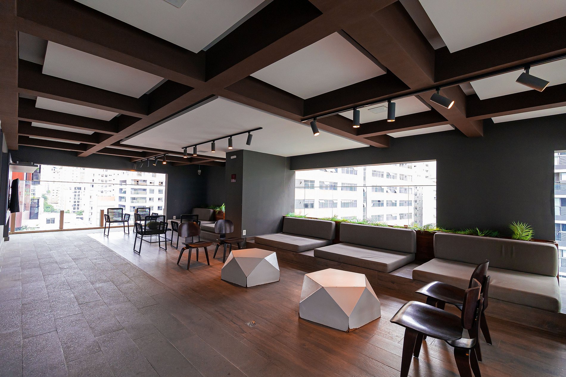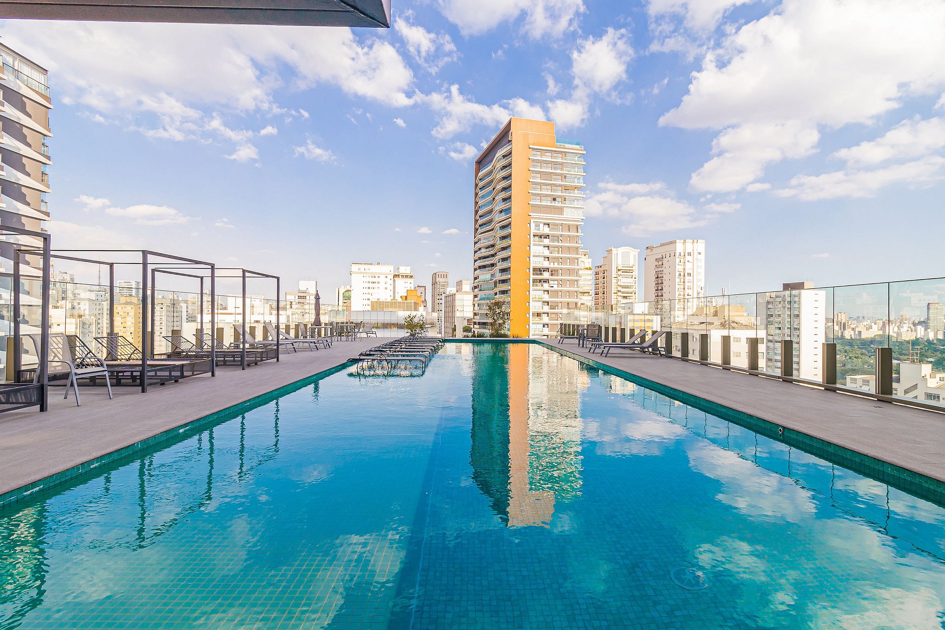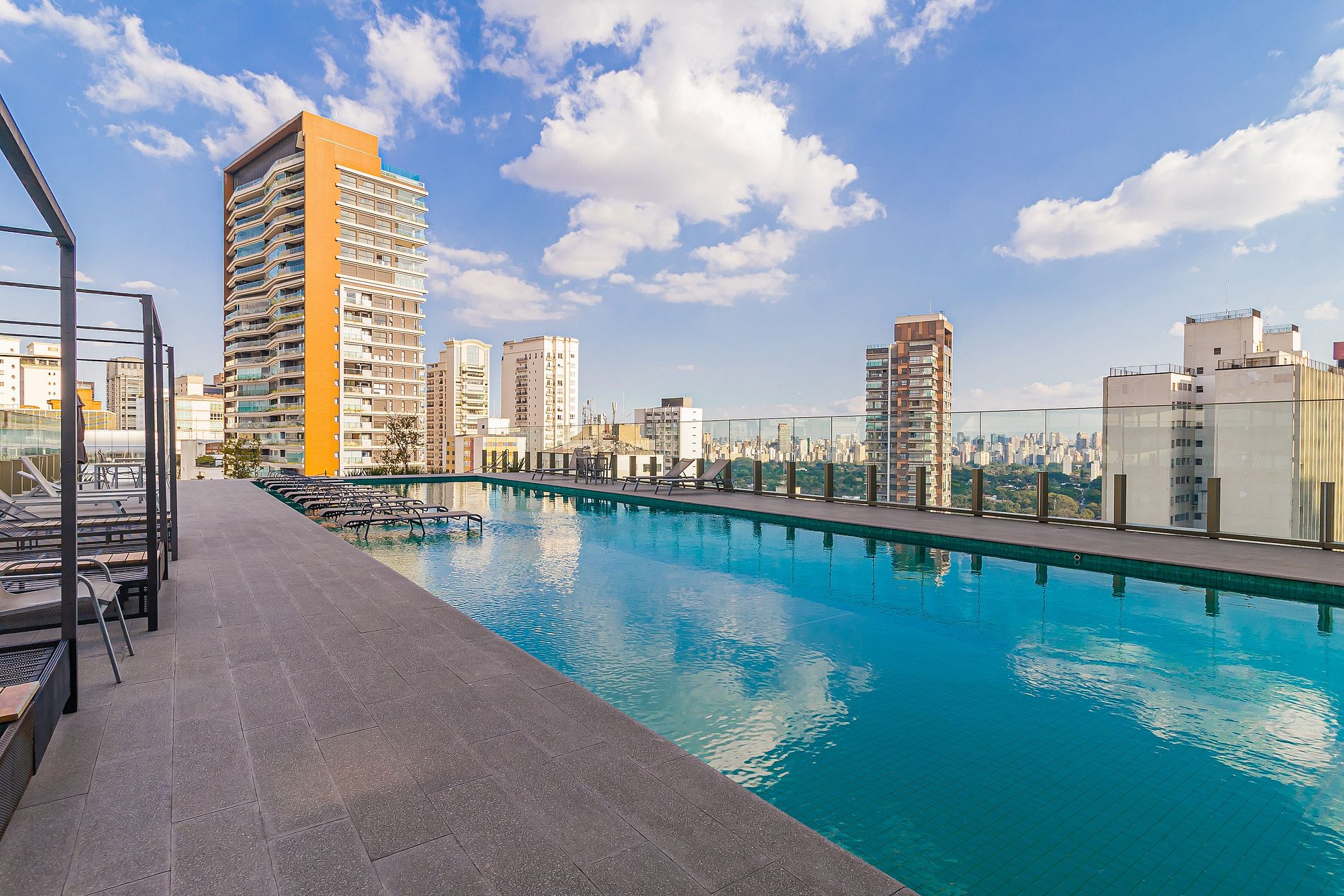 Studio industrial no coração de Pinheiros com área de lazer completa e piscina com vista