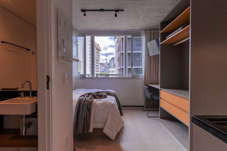 O estúdio na Frei Caneca é novo e está em um edifício moderno e completo que tudo que você vai precisar na sua estadia, a alguns minutos da Paulista e da Rua Augusta você terá todo um leque de opções de restaurantes, lazer e cultura bem próximos de você.