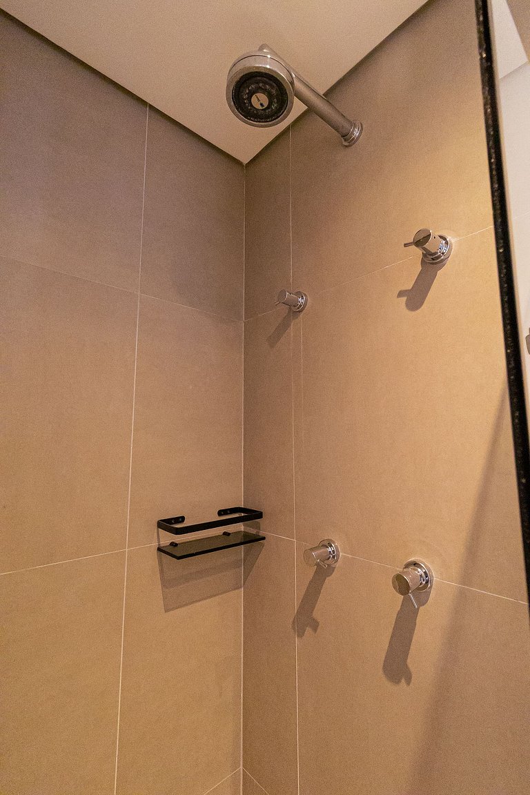 Possui também um espaço na cobertura com cadeiras para tomar sol e chuveiro, piscina, área com redes, co-working e espaço pet.