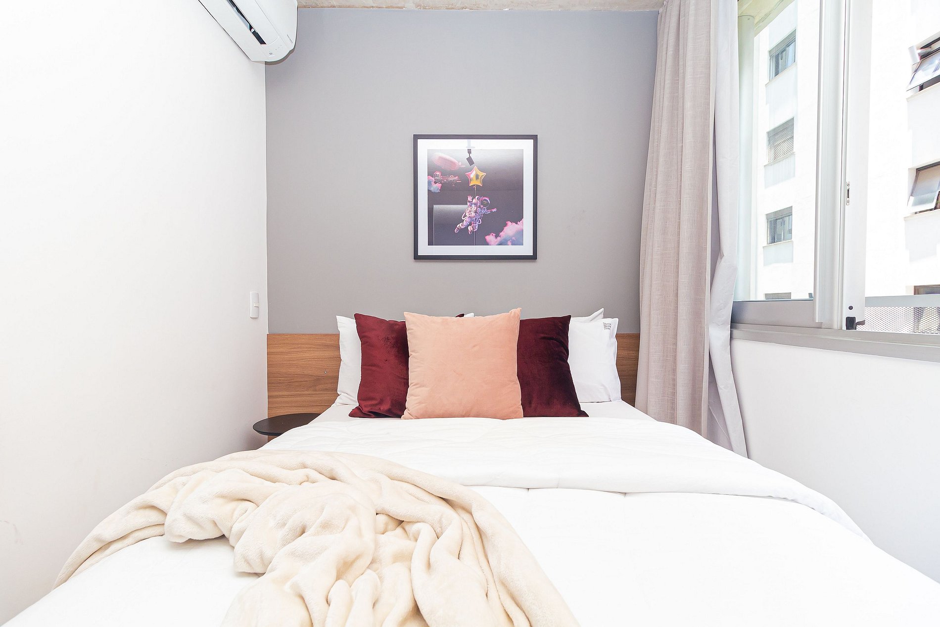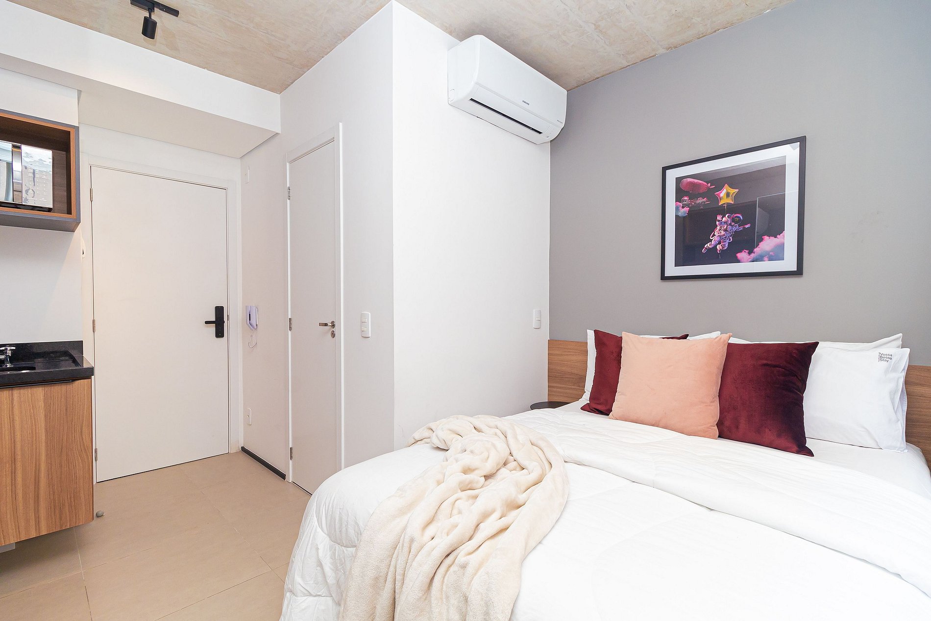 O apartamento é completo, possui wifi, portaria 24h, AC, piscina no terraço e área pet.