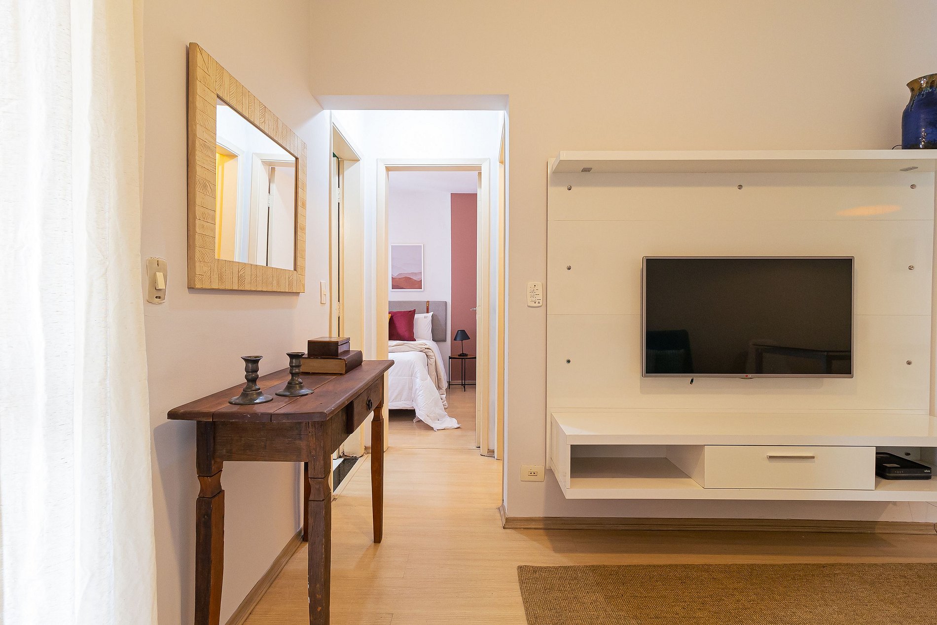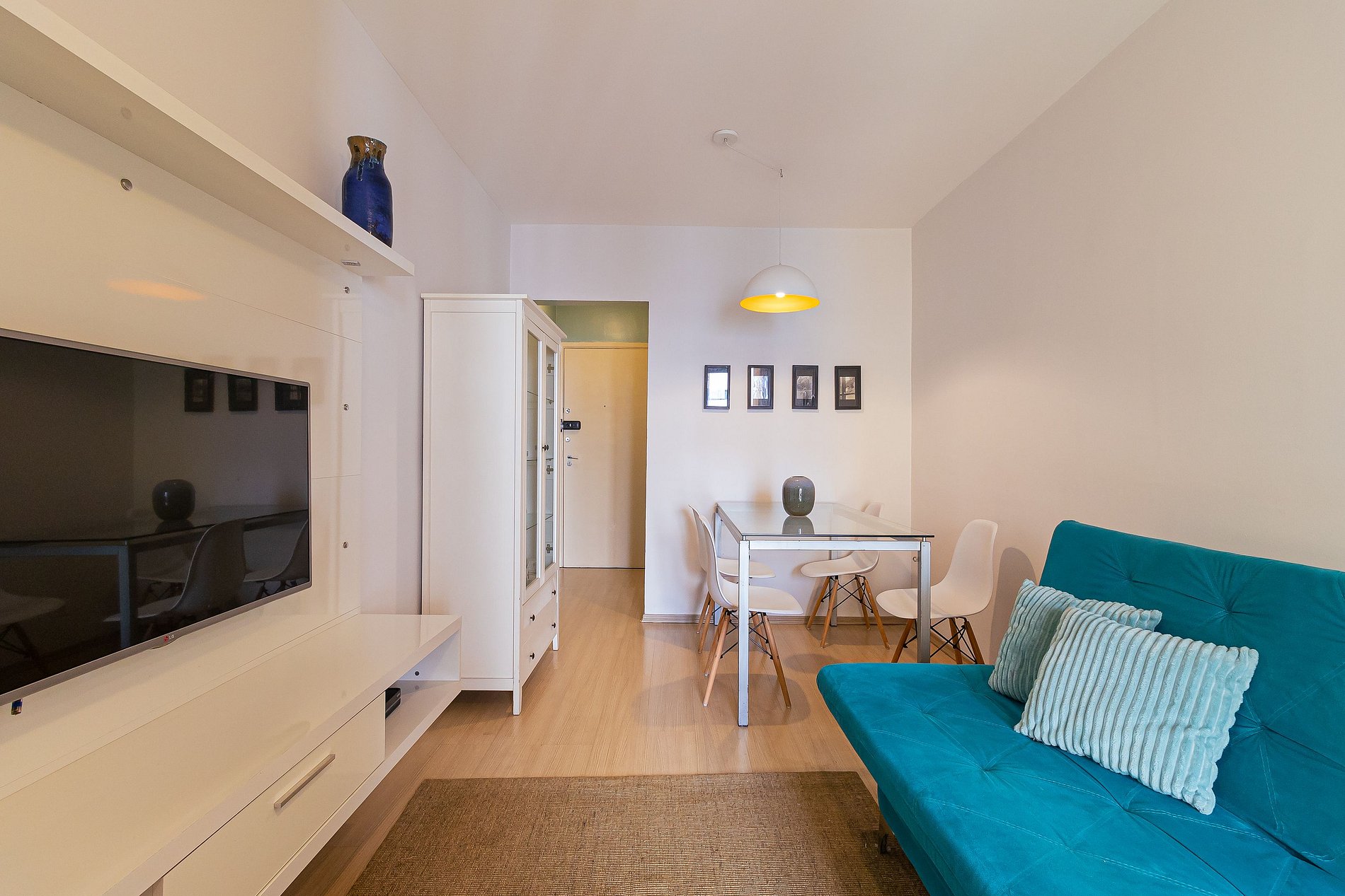 Essa acomodação é recém reformada, tudo nele é bem novo e equipado para receber até 4 pessoas e todos se sentirem em casa, um apartamento amplo com uma decoração minimalista, em branco, madeira clara e cada cômodo com uma cor contrastante que da um ar mais vivo ao ambiente com elegância e charme.