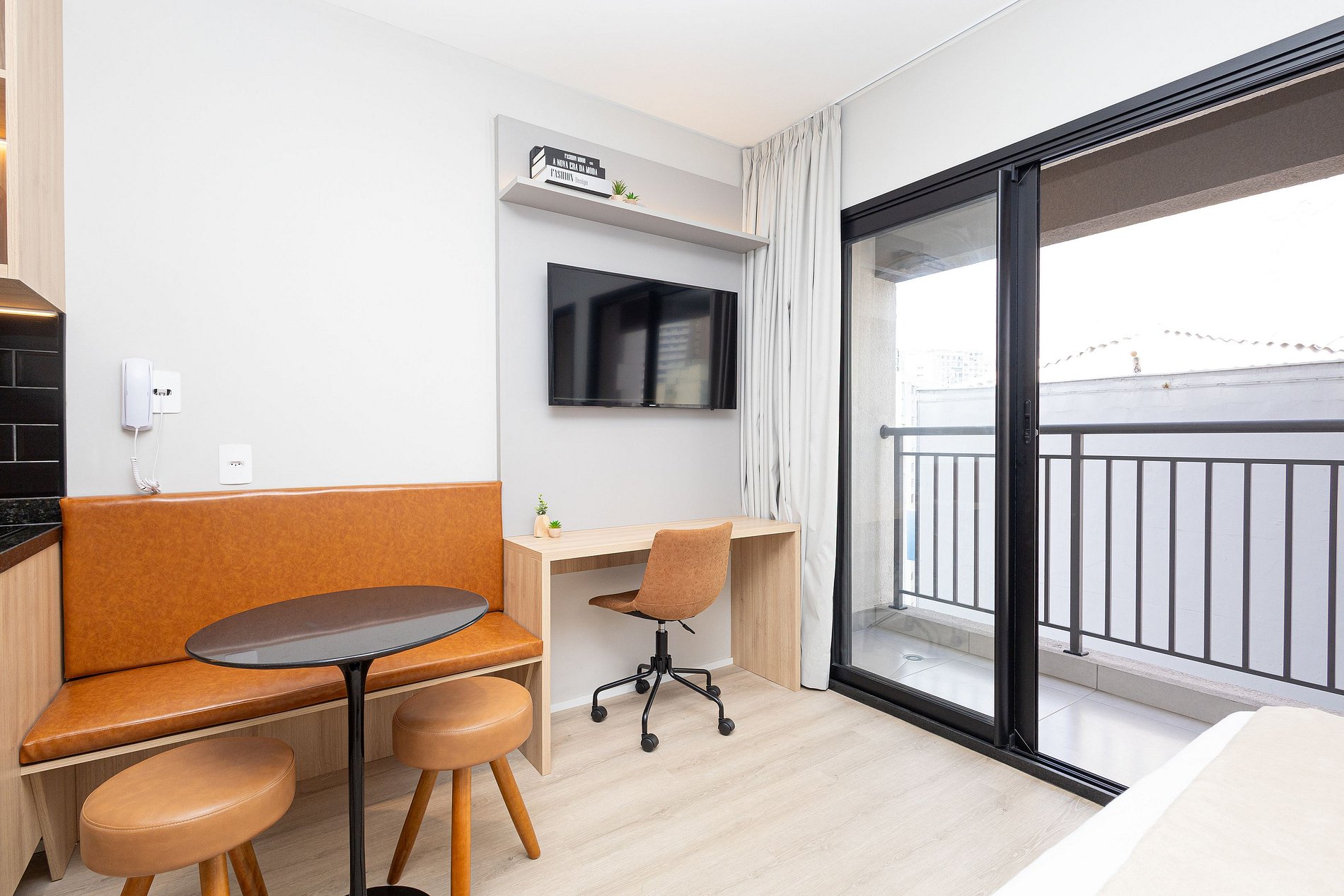 Varanda Aconchegante: Aproveite a vista urbana e o clima de São Paulo com uma varanda privativa, ideal para relaxar após um dia de passeios ou trabalho.