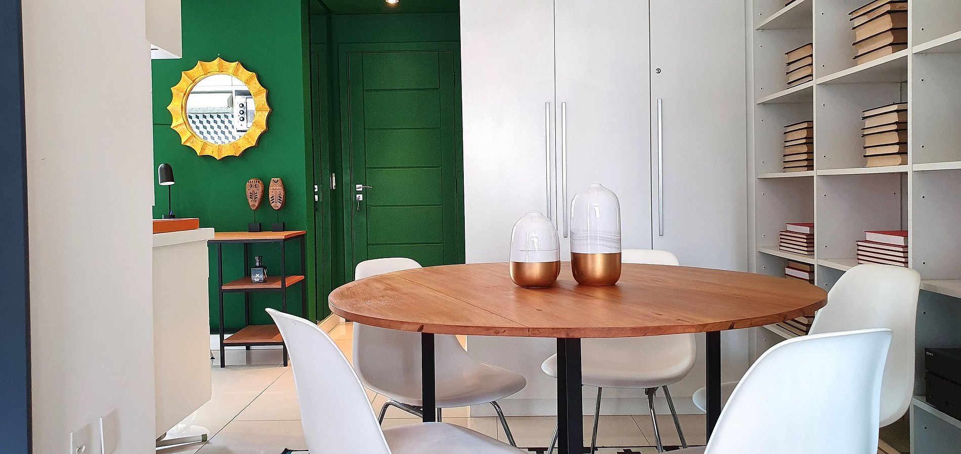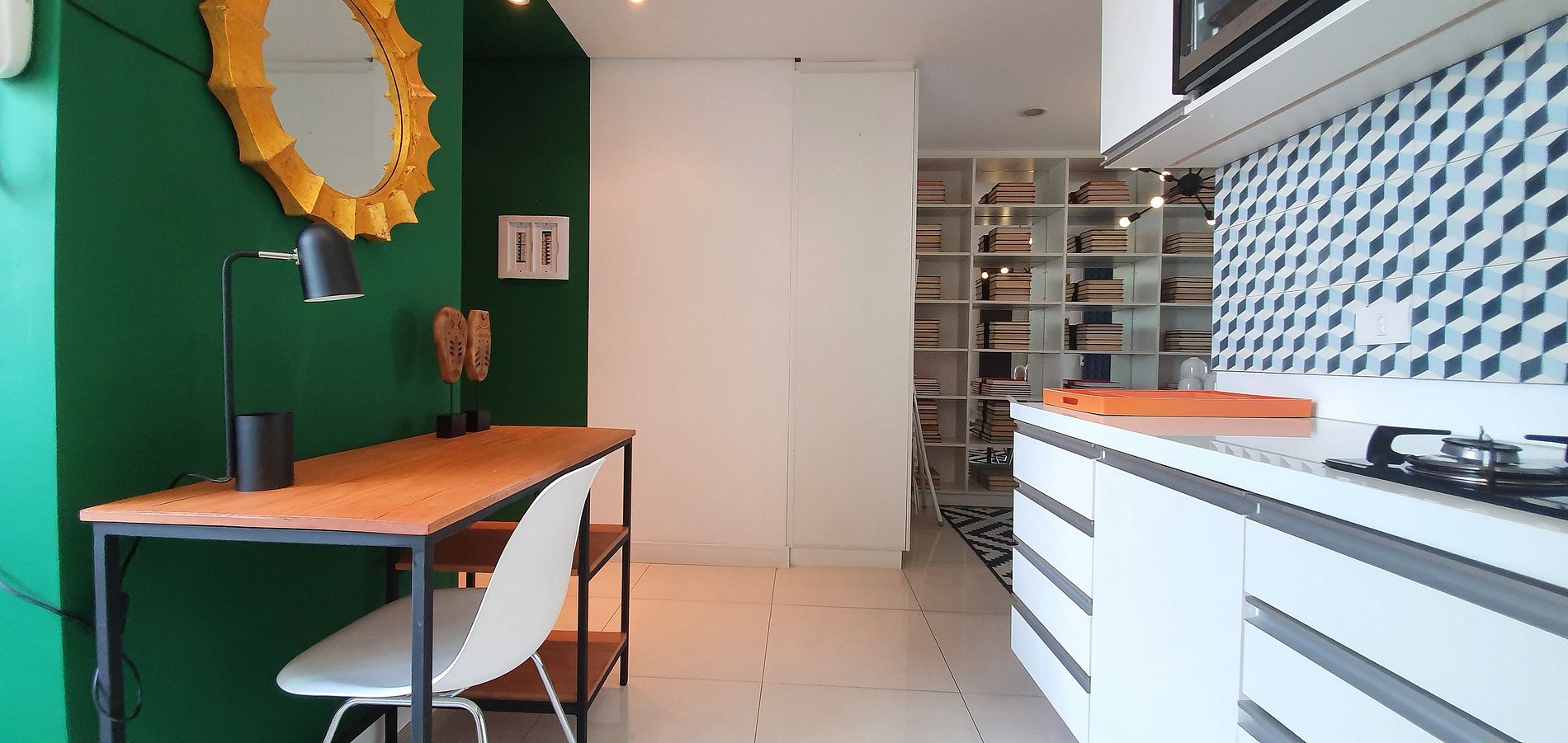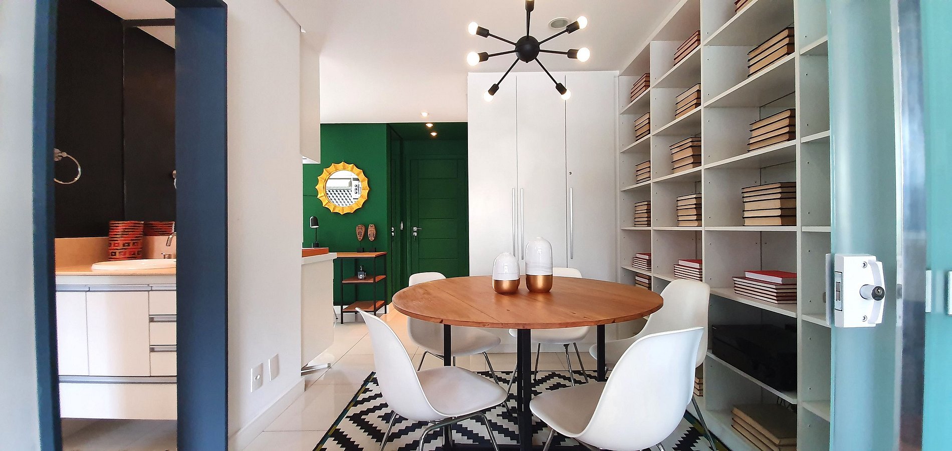 Todos os espaços desse apartamento são extremamente charmosos. Desde as cores vibrantes da sala de estar até a ampla cozinha trazem um toque especial de casa.