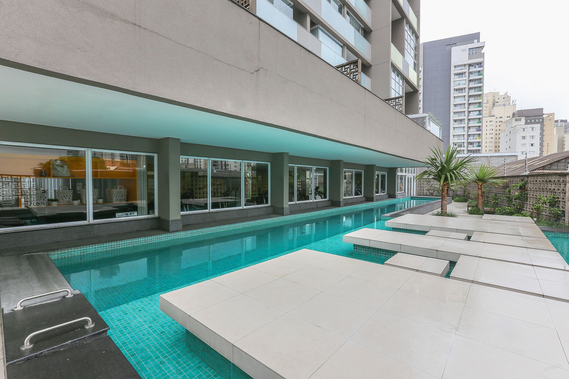Conta com espaço de coworking, lavanderia, academia, mini mercado, espaço Pet, piscina comprida com espreguiçadeiras ao sol para poder relaxar e aproveitar um lazer de qualidade antes de voltar para sua acomodação aconchegante, também possui garagem inclusa.