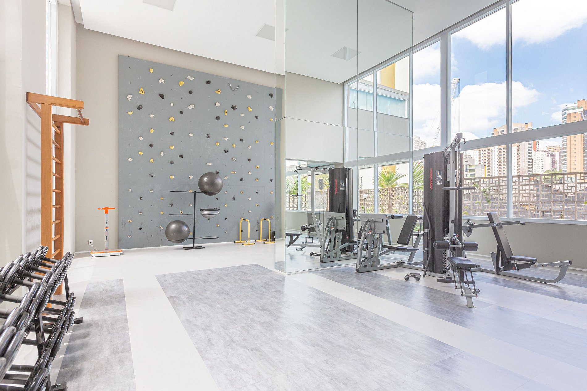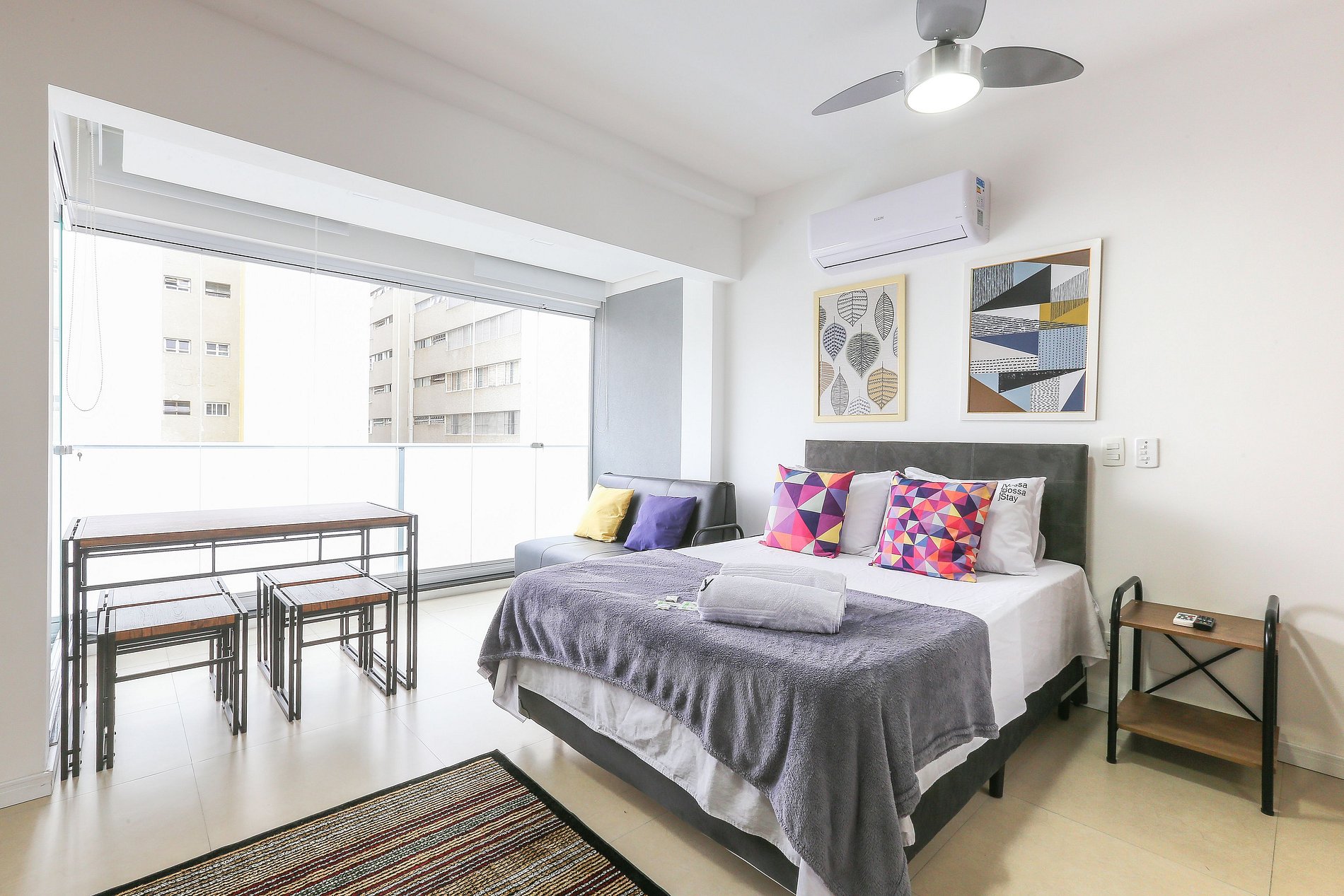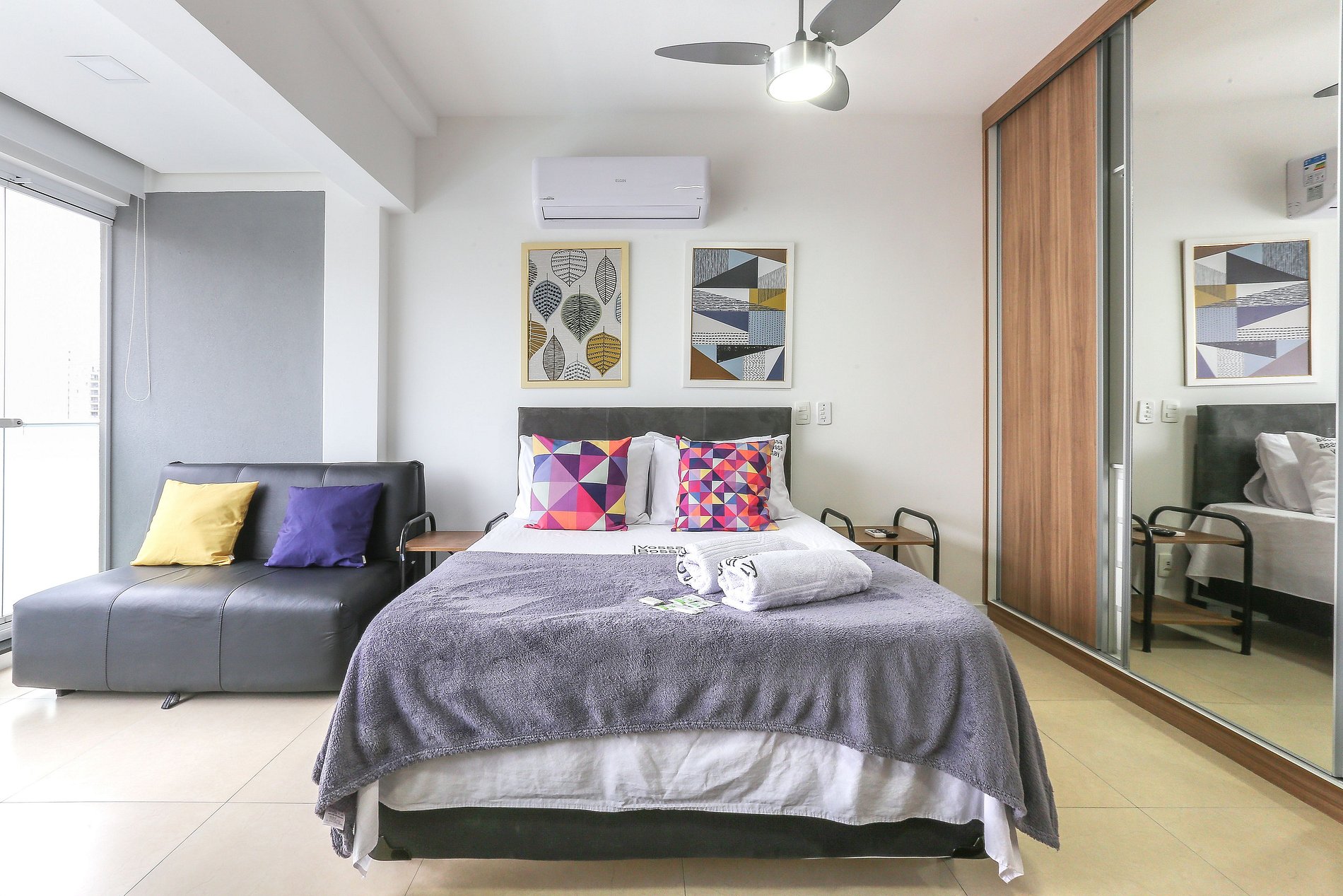 Acomodação completa para sua estadia, o espaço é moderno, bem aproveitado e decorado nas cores cinza e branco com móveis em madeira para você se hospedar com conforto e elegância na rua Turiassú ao lado do Allianz Parque, com geladeira, fogão por indução, microondas, utensílios de cozinha, ar-condicionado, cama queen-size, wi-fi e televisão.