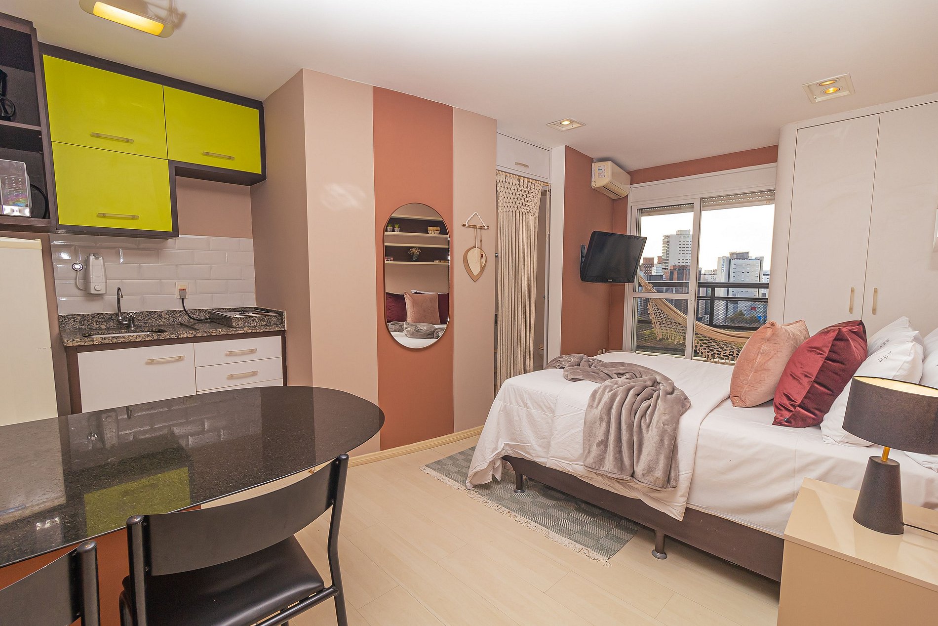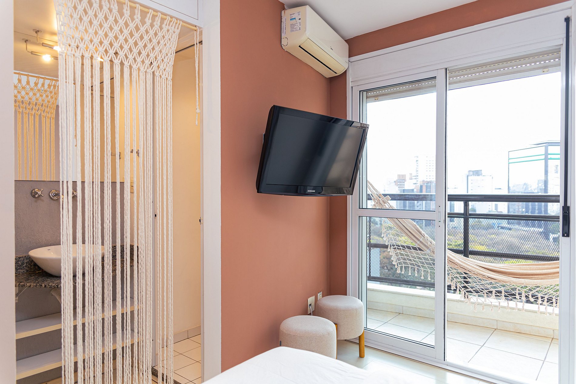 Além disso, ele fica em andar alto, sendo silencioso a noite com ótimo sinal de WiFi e TV tela plana.