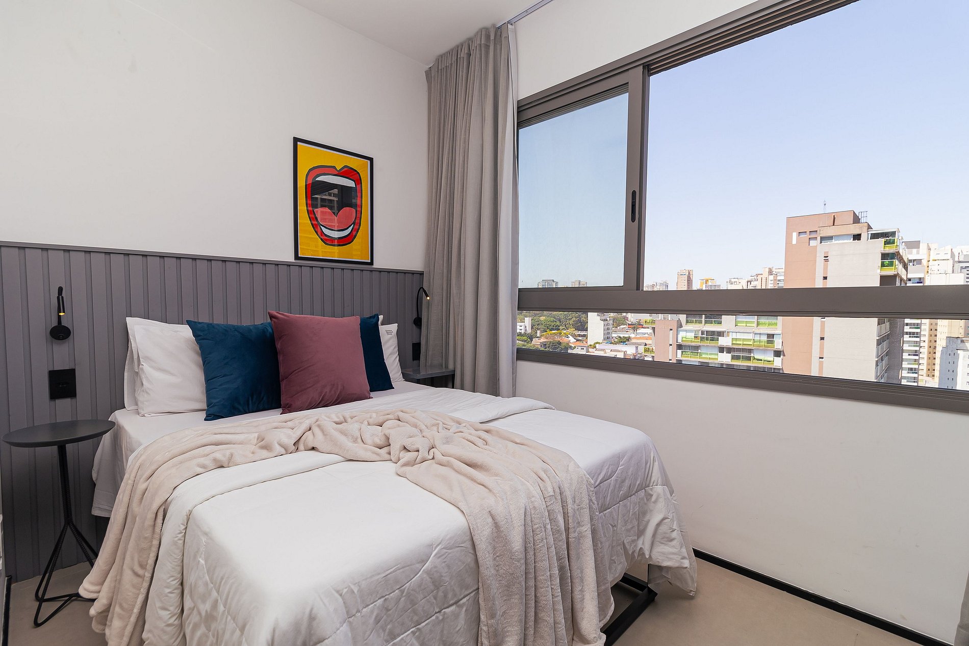 Com uma vista privilegiada, essa acomodação—como um camarote do estádio—tem tudo o que é necessário para uma estadia perfeita, seja para descanso, trabalho ou lazer. O apartamento segue um conceito minimalista e funcional, garantindo conforto e praticidade.