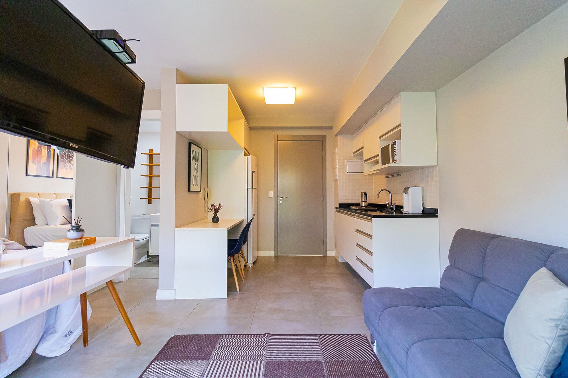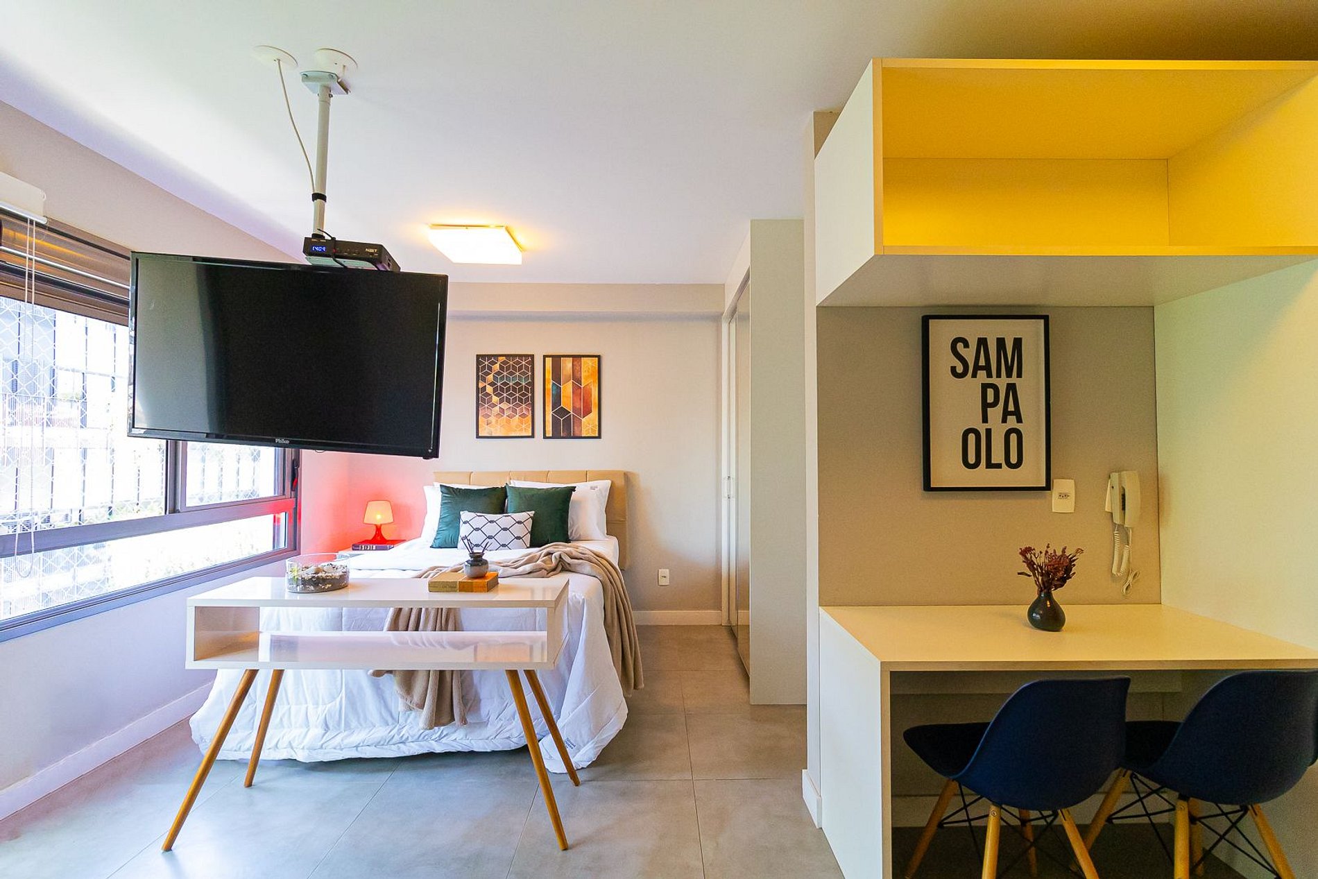 Localizado no coração da vizinhança mais vibrante, boemia, artística e arquitetônica de São Paulo, esse estúdio minimalista tem tudo que precisas para uma estadia perfeita e aconchegante.O studio possui varanda, cozinha completa com utensílios básicos para culinária do dia a dia, ar condicionado, wi-fi, piscina, academia, garagem e portaria 24 horas.