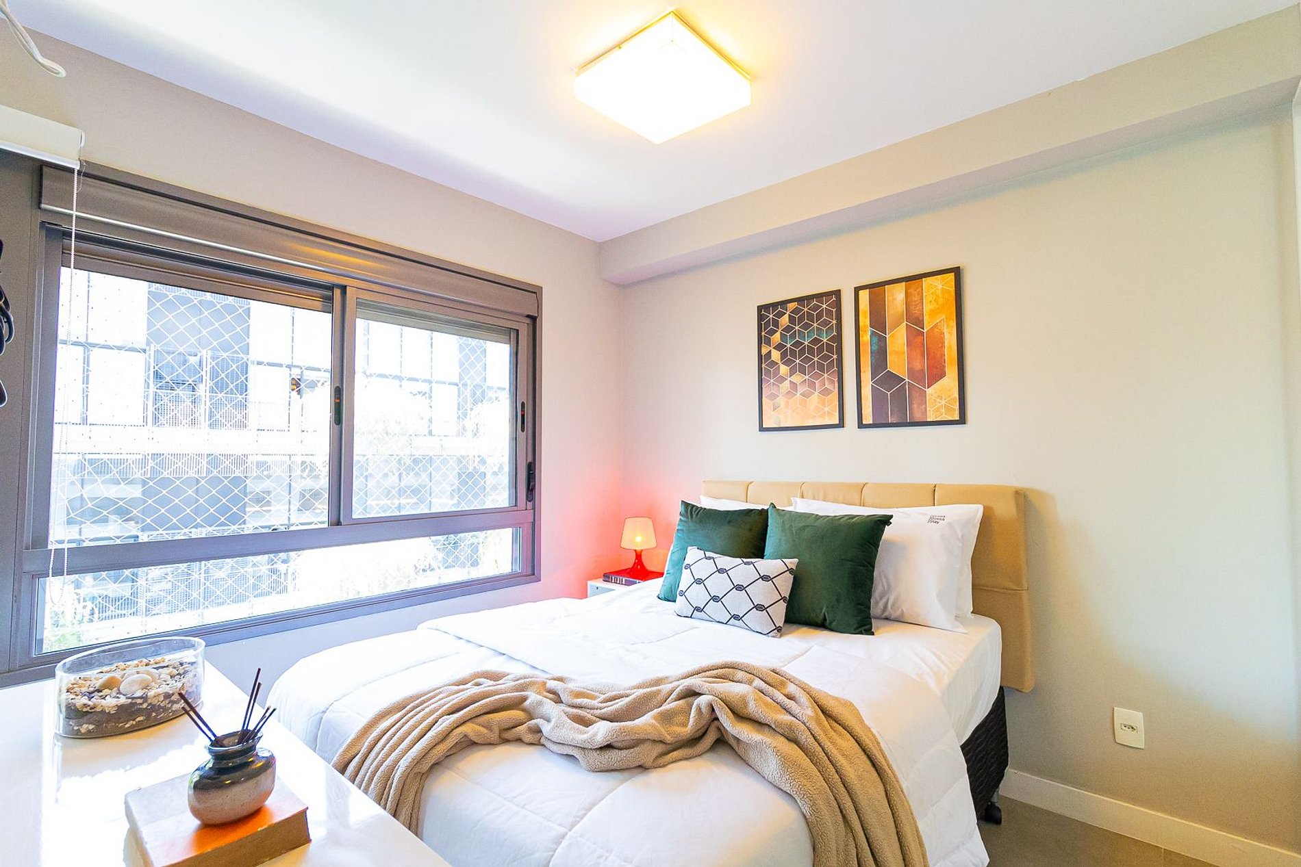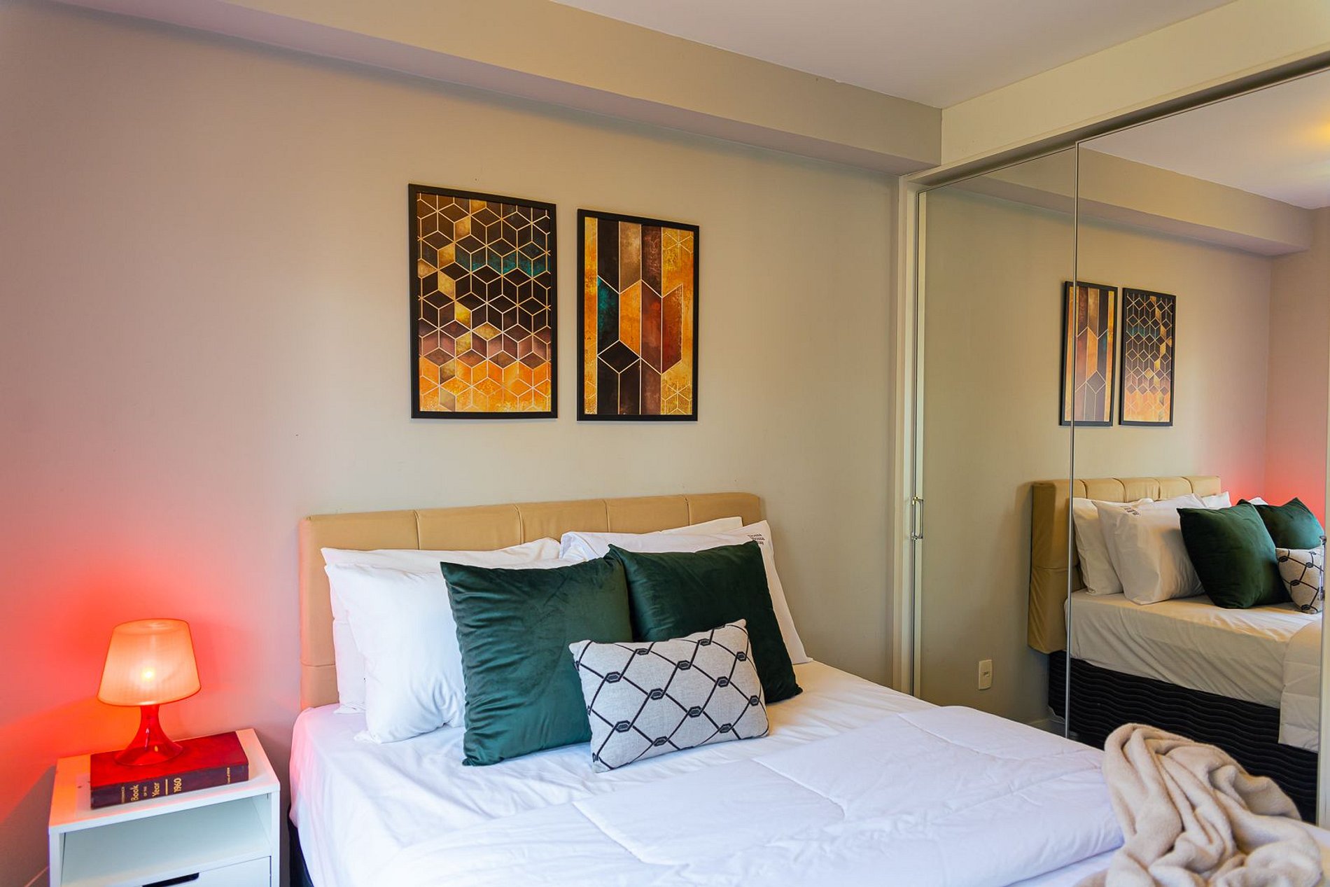 O apartamento possui luzes quentes, armário espelhado ao lado da cama e abajur para leitura, banheiro reformado, uma varanda, ar-condicionado e wi-fi, tudo para sua estadia ser a mais completa e confortável possível