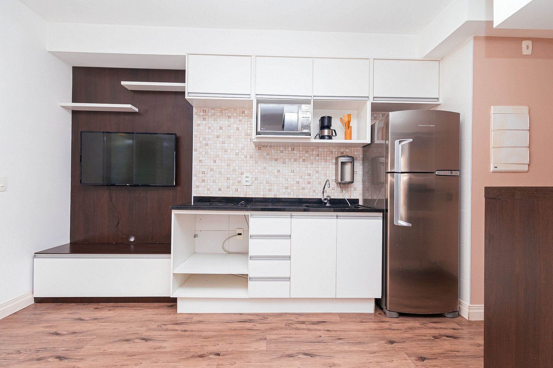 O estúdio integrado conta com quarto, banheiro, cozinha completa e uma varanda ampla e aconchegante, com vários toques especiais que fazem total diferença ao ambiente.
